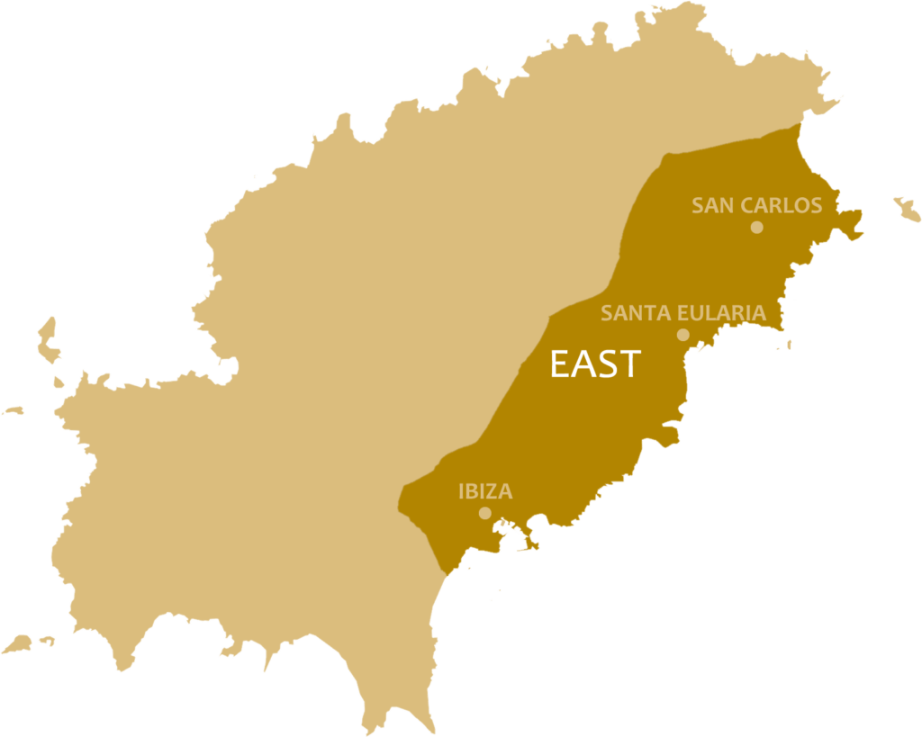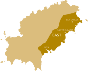 Life in the east of Ibiza is set in a relaxing mood with an easy-going vibe. The surrounding countryside are a string of lovely (and lively) family-friendly beaches and gorgeous coves extending along the coast.