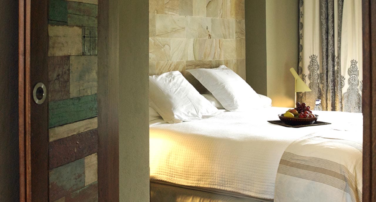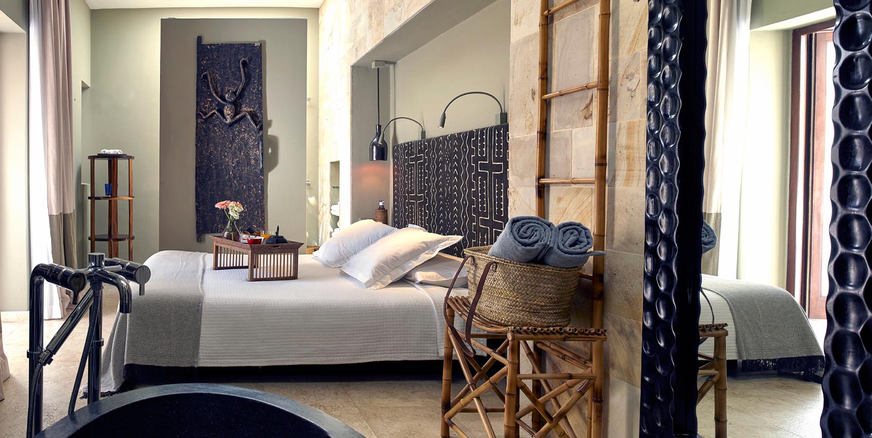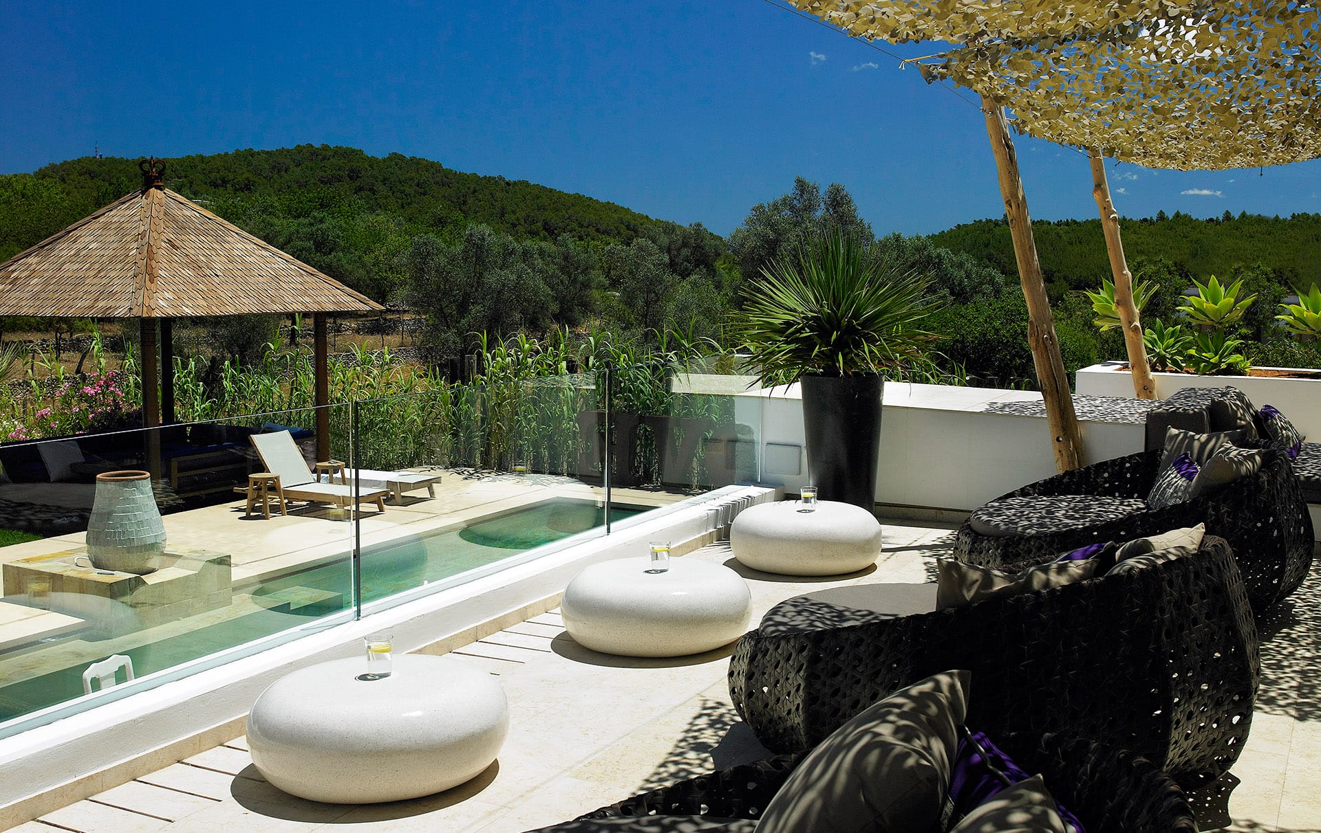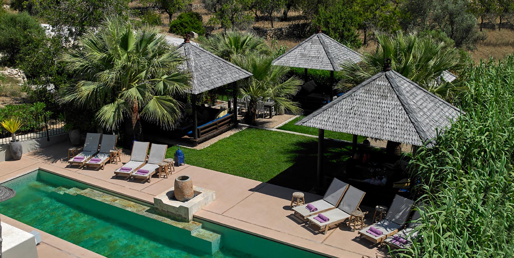 Set within a lush rolling green landscape, yet minutes from some of the island’s most pristine beaches, this exclusive boutique hotel in Ibiza is located in San Juan, a lovely village in the north of the island. Only five exquisite suites, restaurant and spa, all set within a stunning outdoor space; perfect for people looking for good food, a great design and blissful surroundings. There are 2 restaurants in the property, one is in the hotel and the other is just few steps from it, in both, all dishes use the freshest, highest quality ingredients and herbs the island naturally produces.
