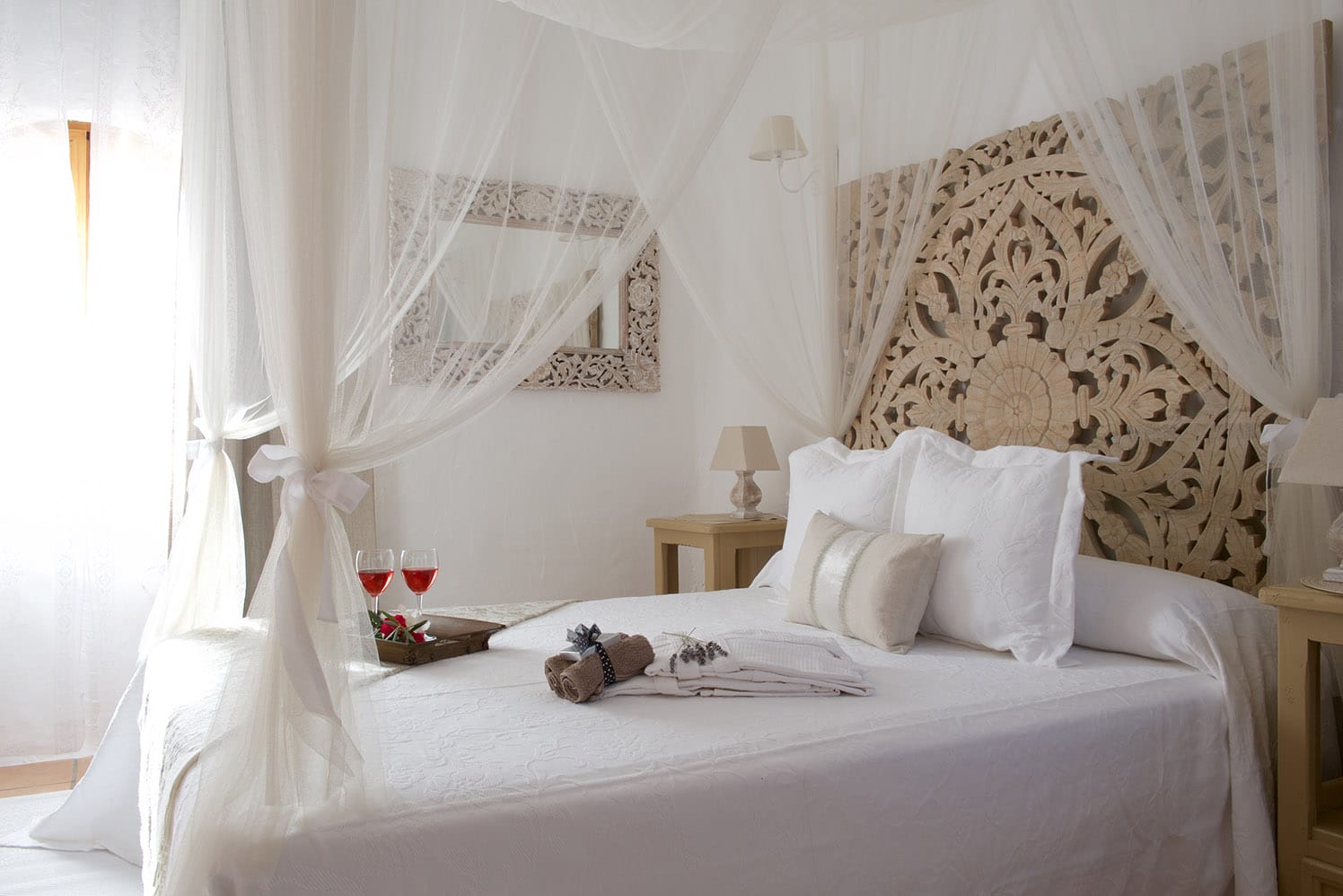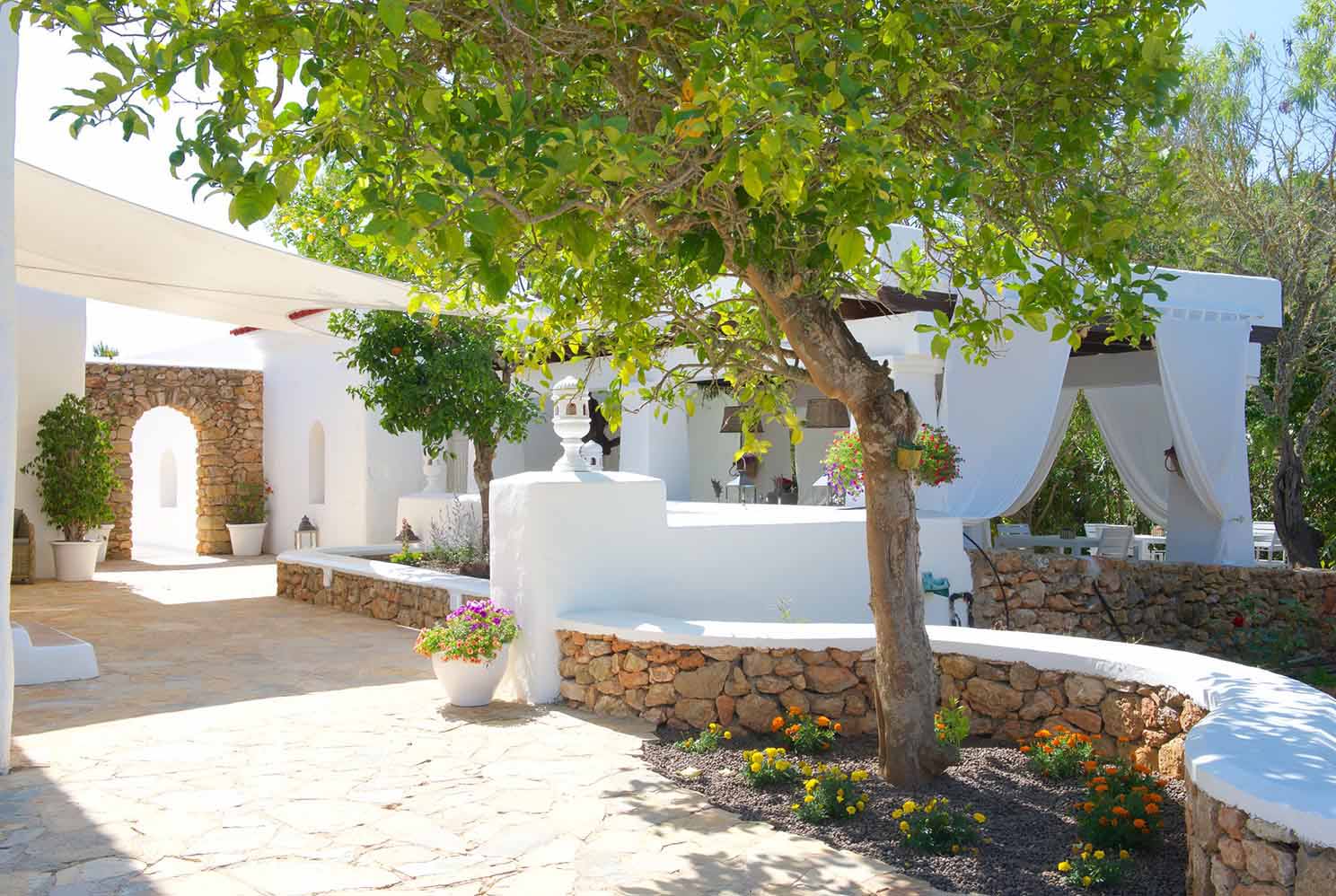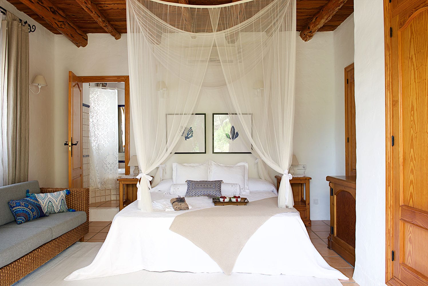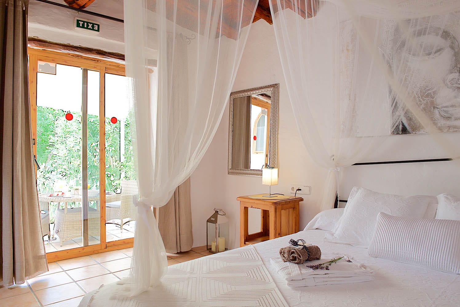 This beautiful boutique hotel, former XVIII century traditional finca, holds a wonderful location nestled in the Natural beauty in the east side of the island. While guests will enjoy a completely tranquil escape, bars and restaurants are available in the village of Santa Eulalia, just ten minutes away, while Ibiza city itself is just a fifteen-minute car journey away. Outside, guests have plenty of room to explore with 25.000 meters of private gardens, pool and a pond. Massage service and beauty treatments availablel on request. This boutique hotel in Ibiza can make the perfect location for your wedding.