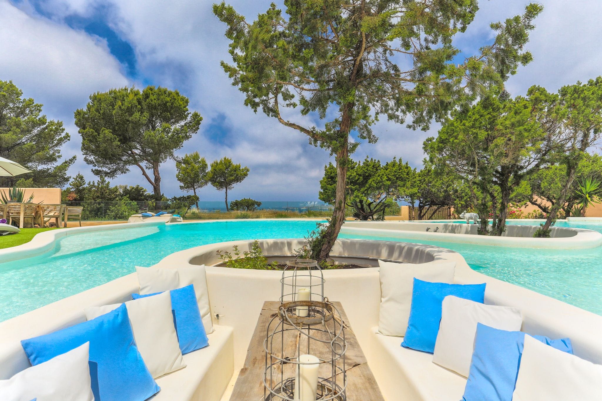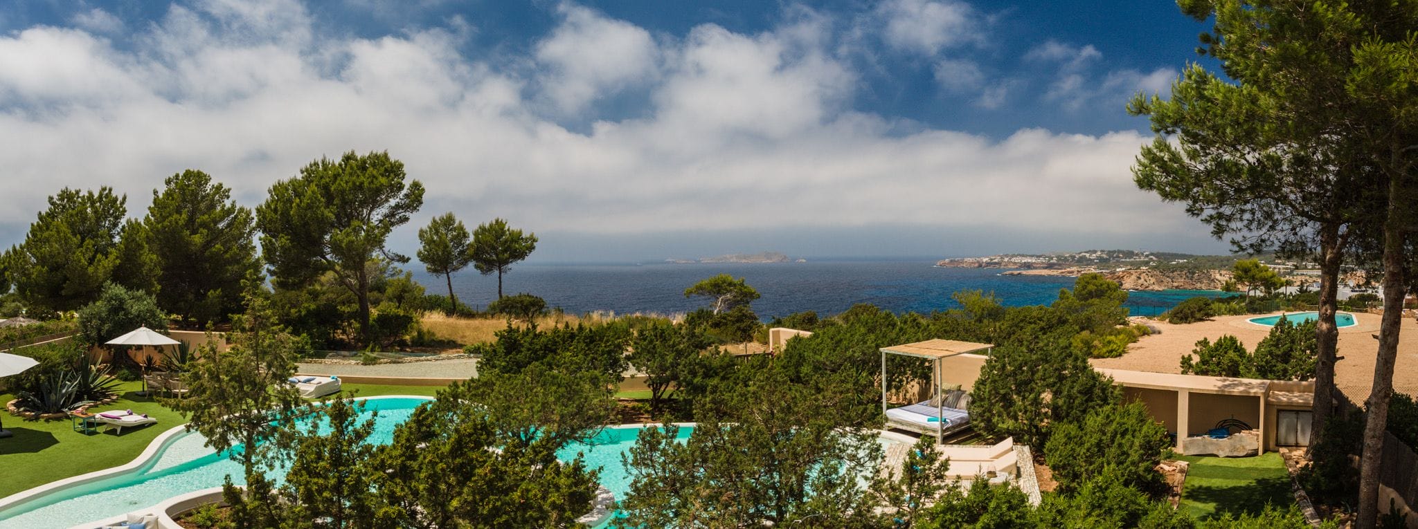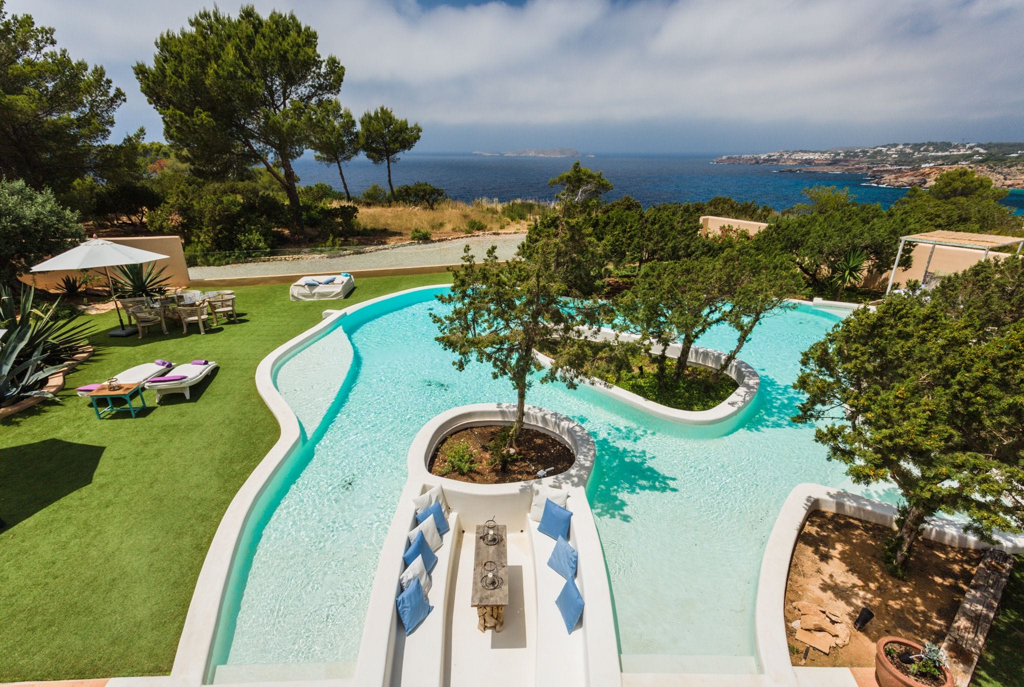 The great attraction of this house is its large infinity pool with islands of junipers, pine trees native to this island, which allows you to enjoy an extraordinary experience. From this pool you can enjoy the sunset and the views of the Island of s’Esparta. The pool is surrounded by relaxation areas, chillouts and a garden. A unique villa in Ibiza.