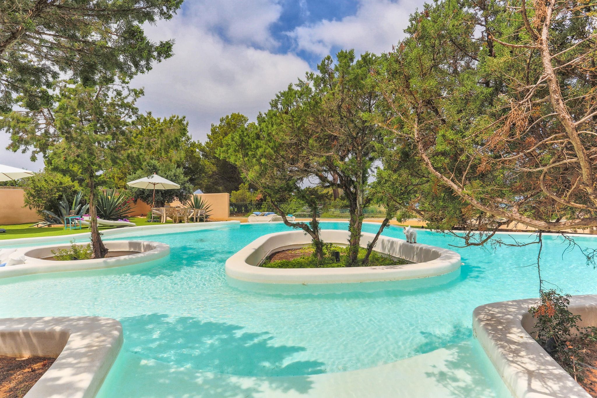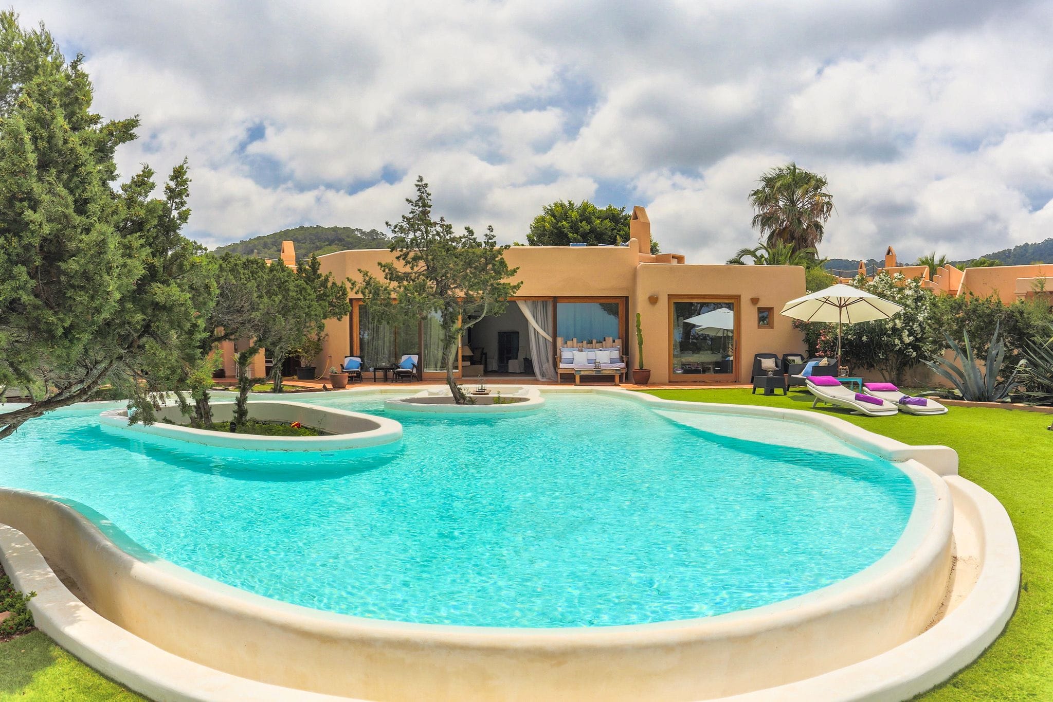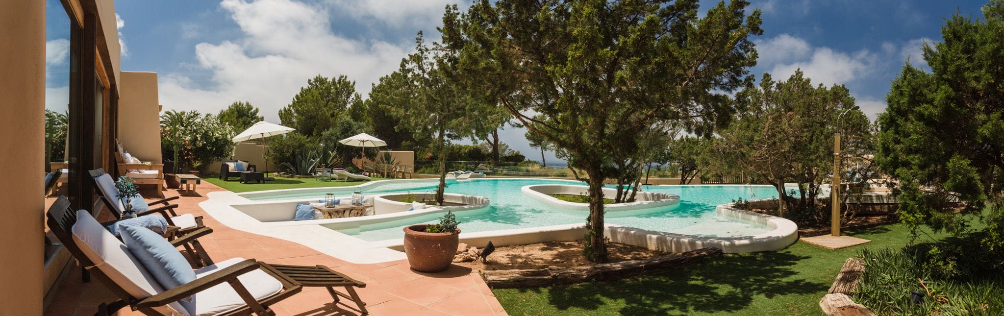 The great attraction of this house is its large infinity pool with islands of junipers, pine trees native to this island, which allows you to enjoy an extraordinary experience. From this pool you can enjoy the sunset and the views of the Island of s’Esparta. The pool is surrounded by relaxation areas, chillouts and a garden. A unique villa in Ibiza.
