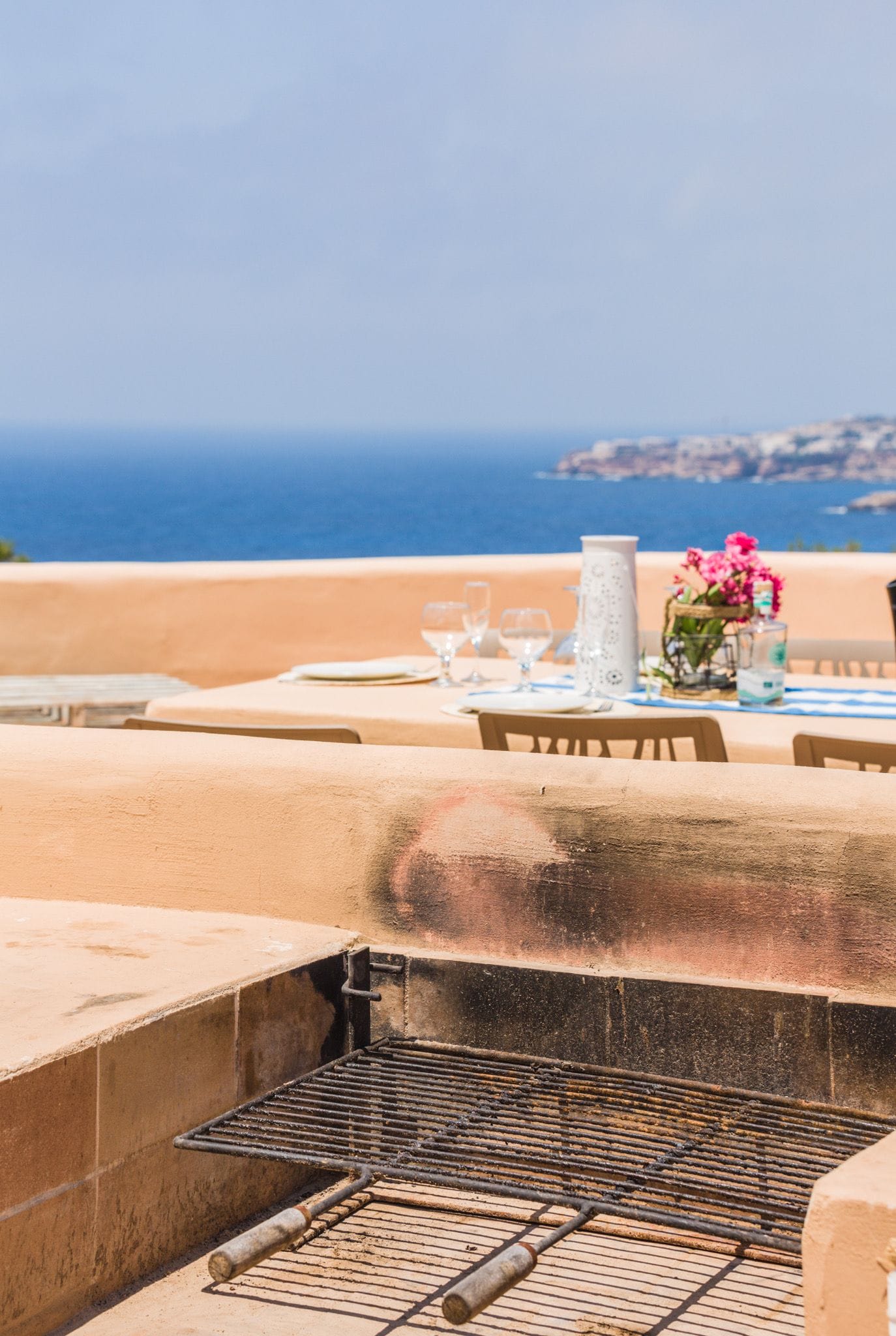 In its upper part a large terrace of 120 m2 with a second barbecue and sink for washing, barbecue, dining room, two large sofas, chill out and fantastic views of the sea and the sunset. Also up here there is a second outside dining room. This terrace allows you to enjoy this paradise, having absolute privacy by having two perfectly differentiated outdoor areas with separate dining rooms and barbecues.