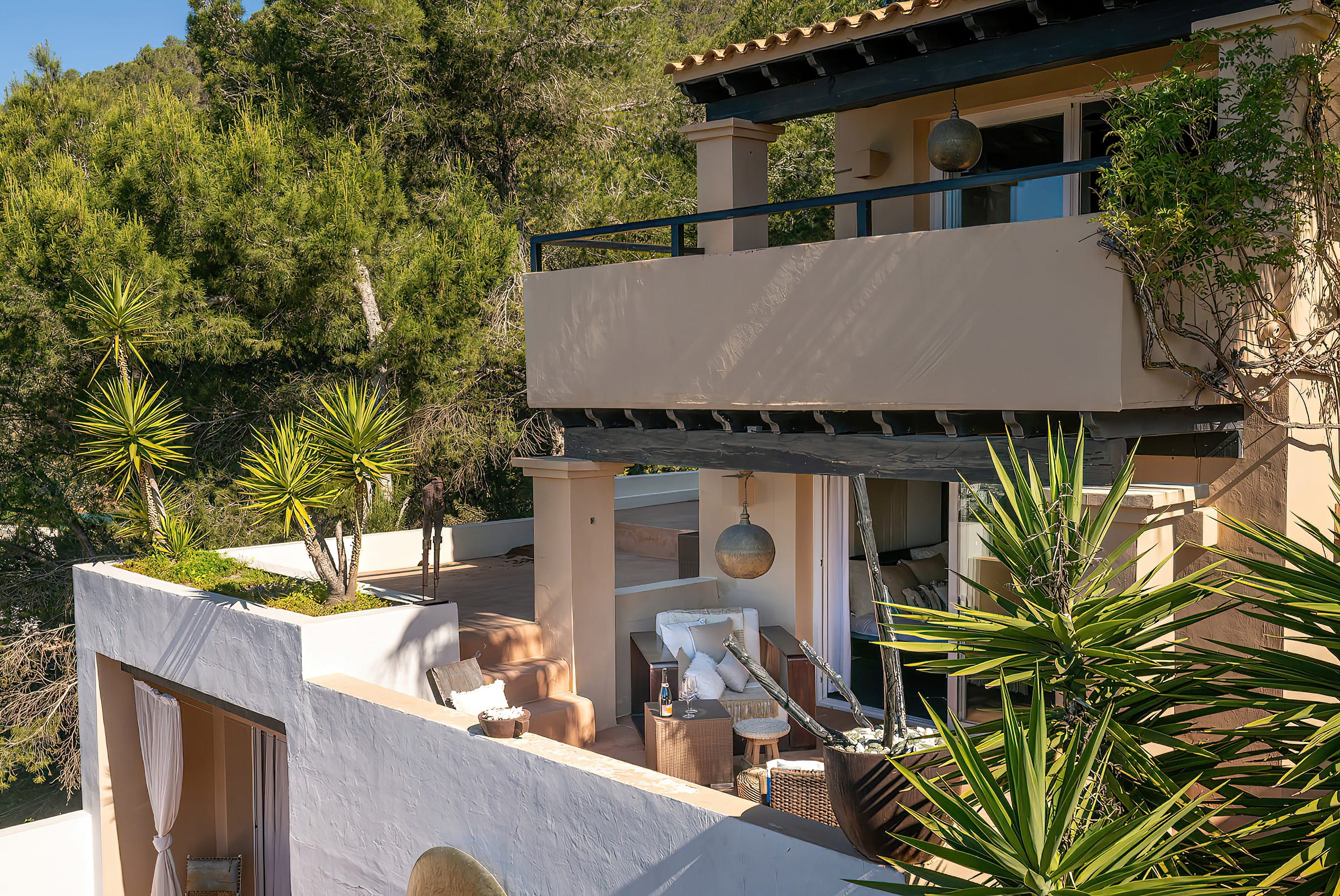 This property in Ibiza enjoys a remarkable setting. Within minutes of Ibiza town, HardRock and Ushuaia parties, and Salinas and Es Cavallet beaches, the hotel is situated on a hilltop in a prominent position.