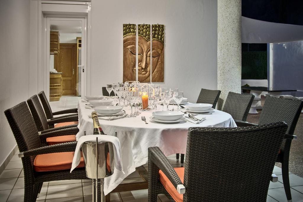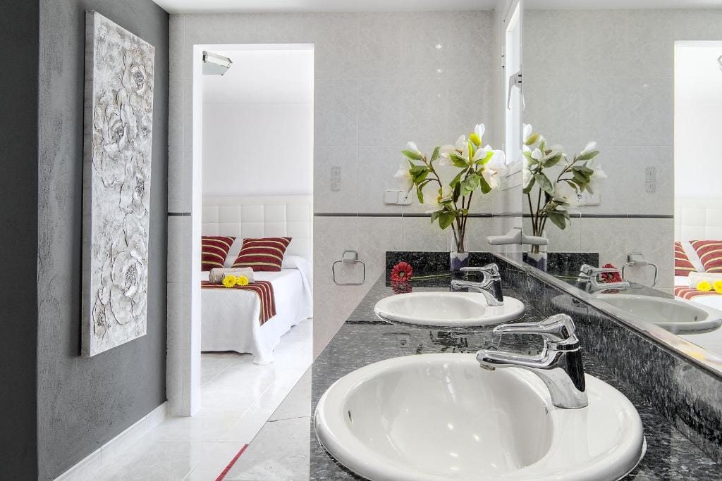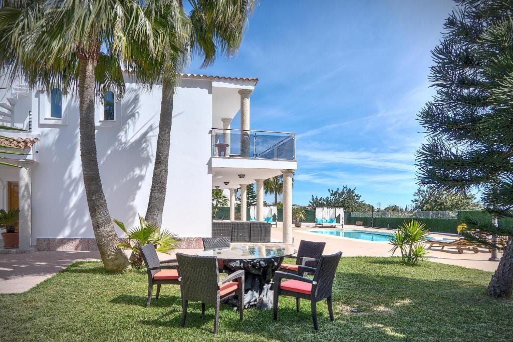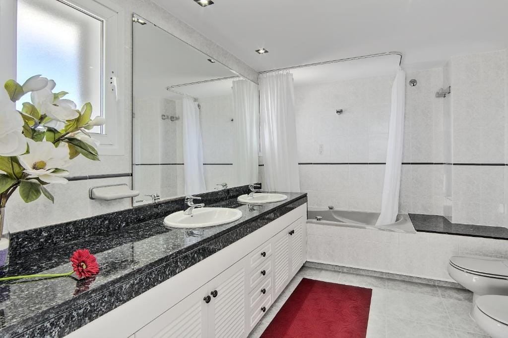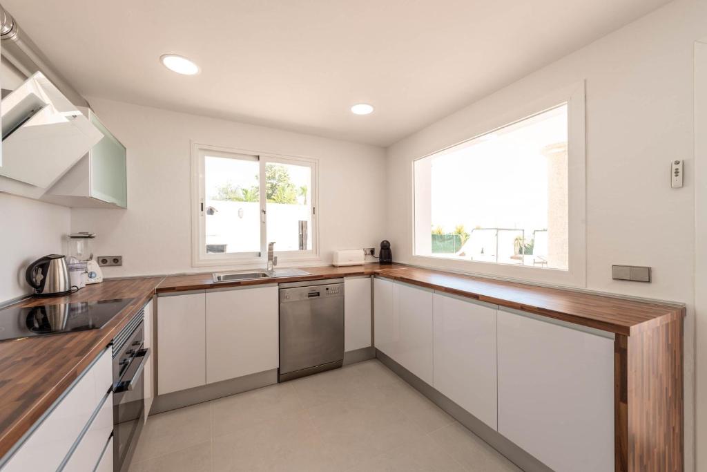This two-story villa features five suites, two of which are ensuite, as well as two additional bathrooms. All bedrooms offer TV. In addition to a spacious indoor and outdoor area, the fully equipped kitchen includes all necessary appliances, such as a dishwasher, in addition to a washing machine and clothes dryer.