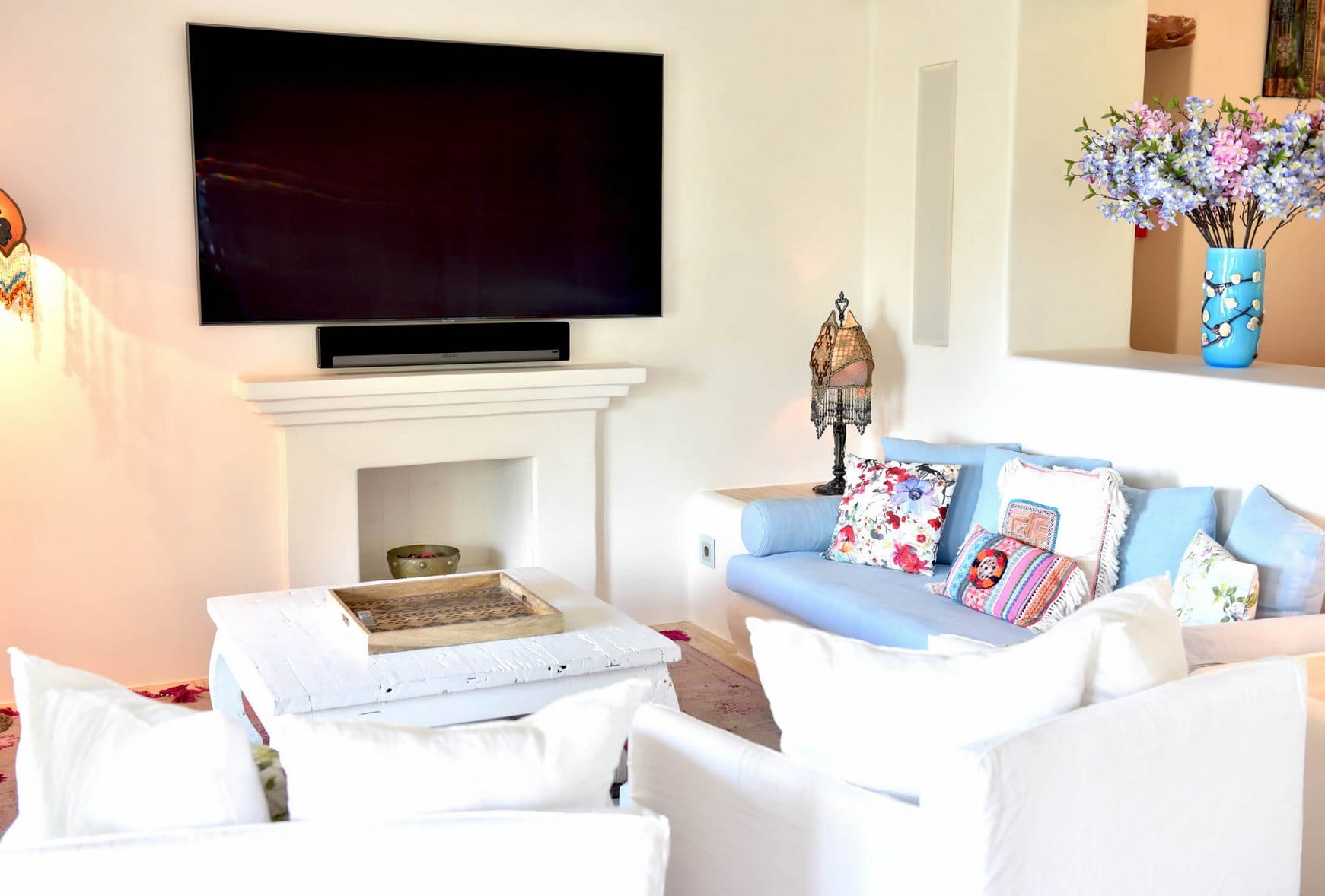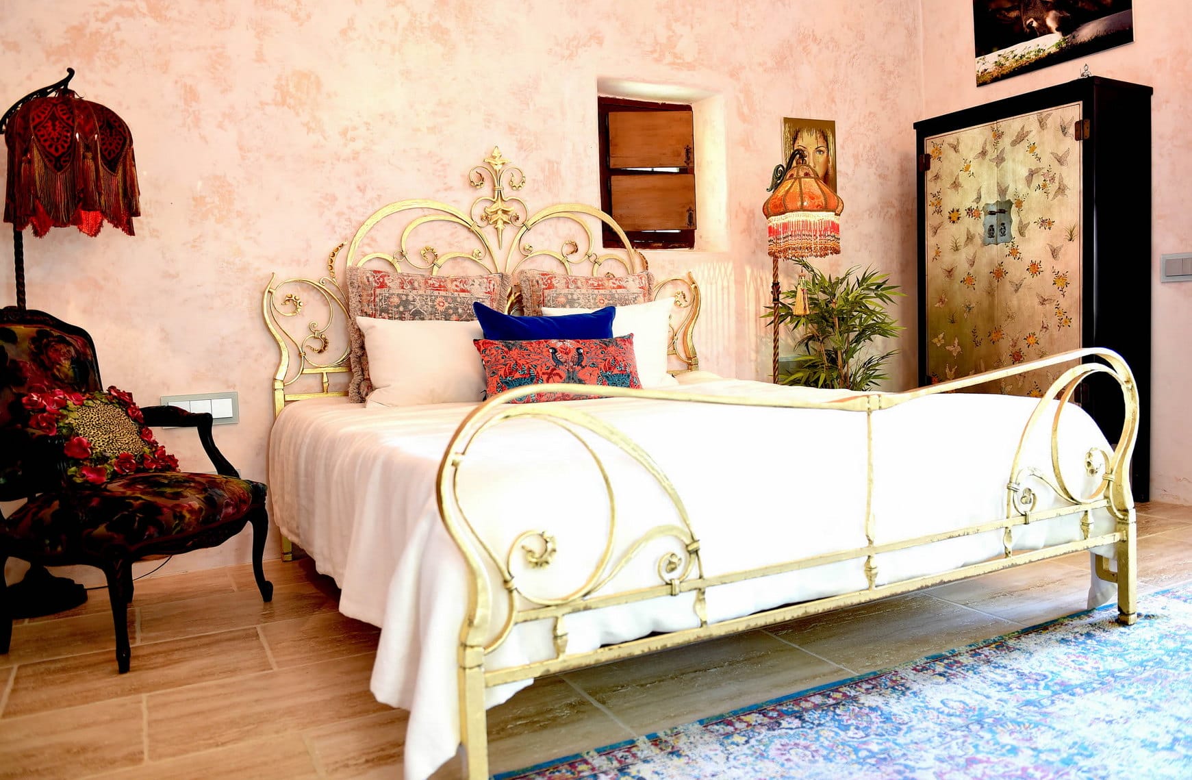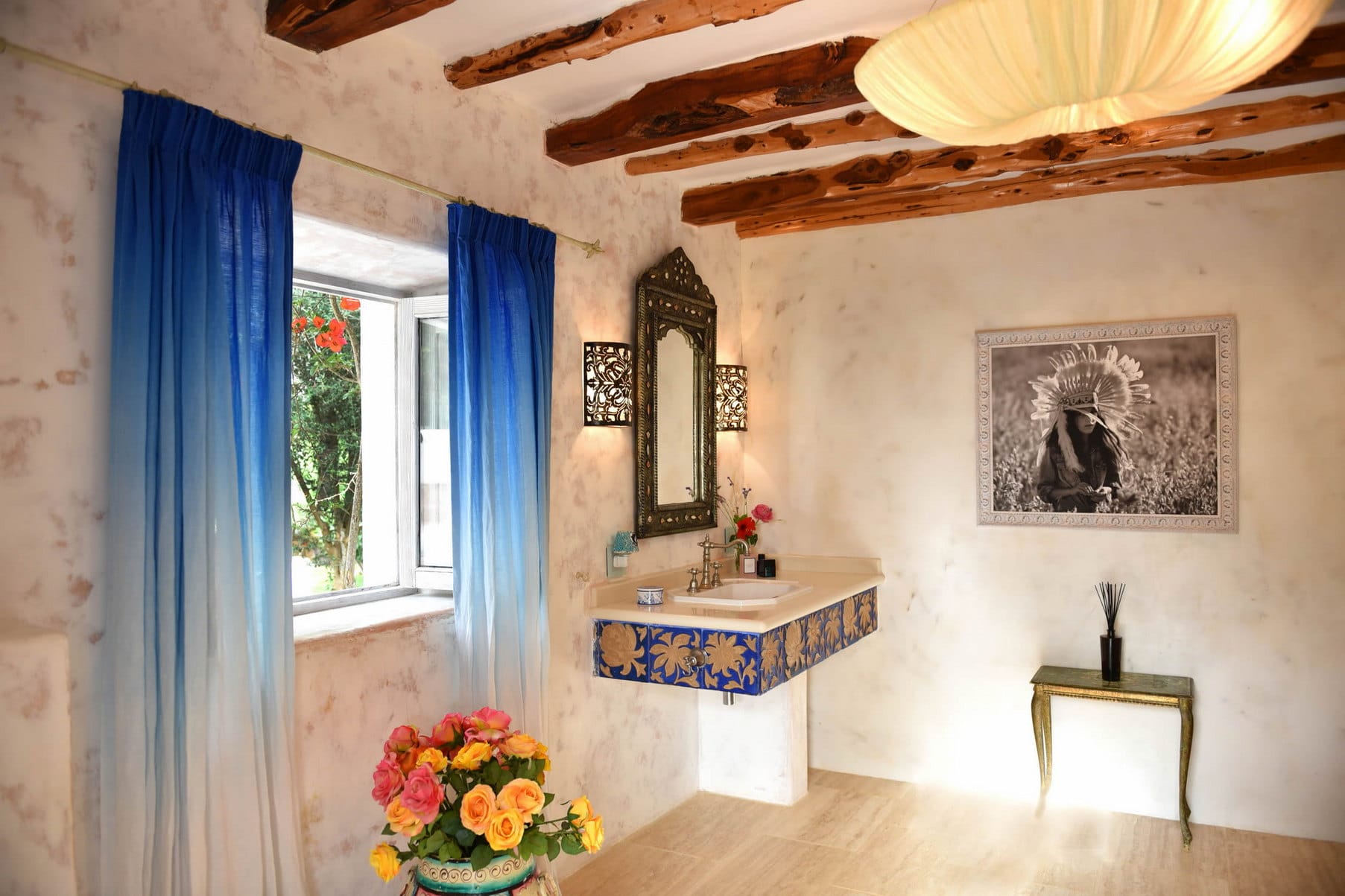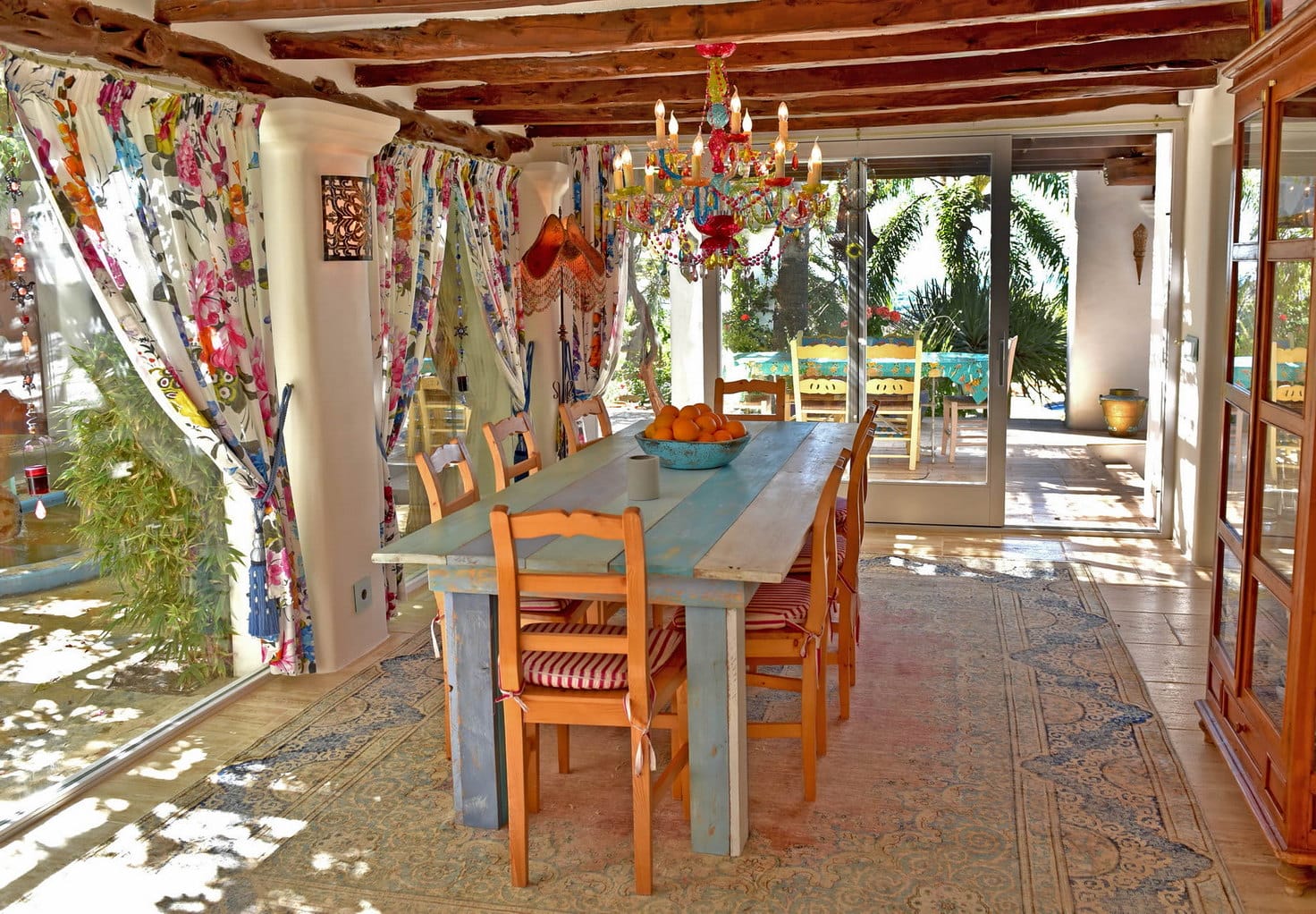 An idyllic combination of ancient Ibiza artistic 70’s charm with modern renovations all of the very highest standard, the Boho chic style is the essence of this one-of-a-kind house. The property comprises 4 separate units, with a total of six bedrooms which are connected to the main house, each consisting of luxury suites with their own en-suite bathrooms.
