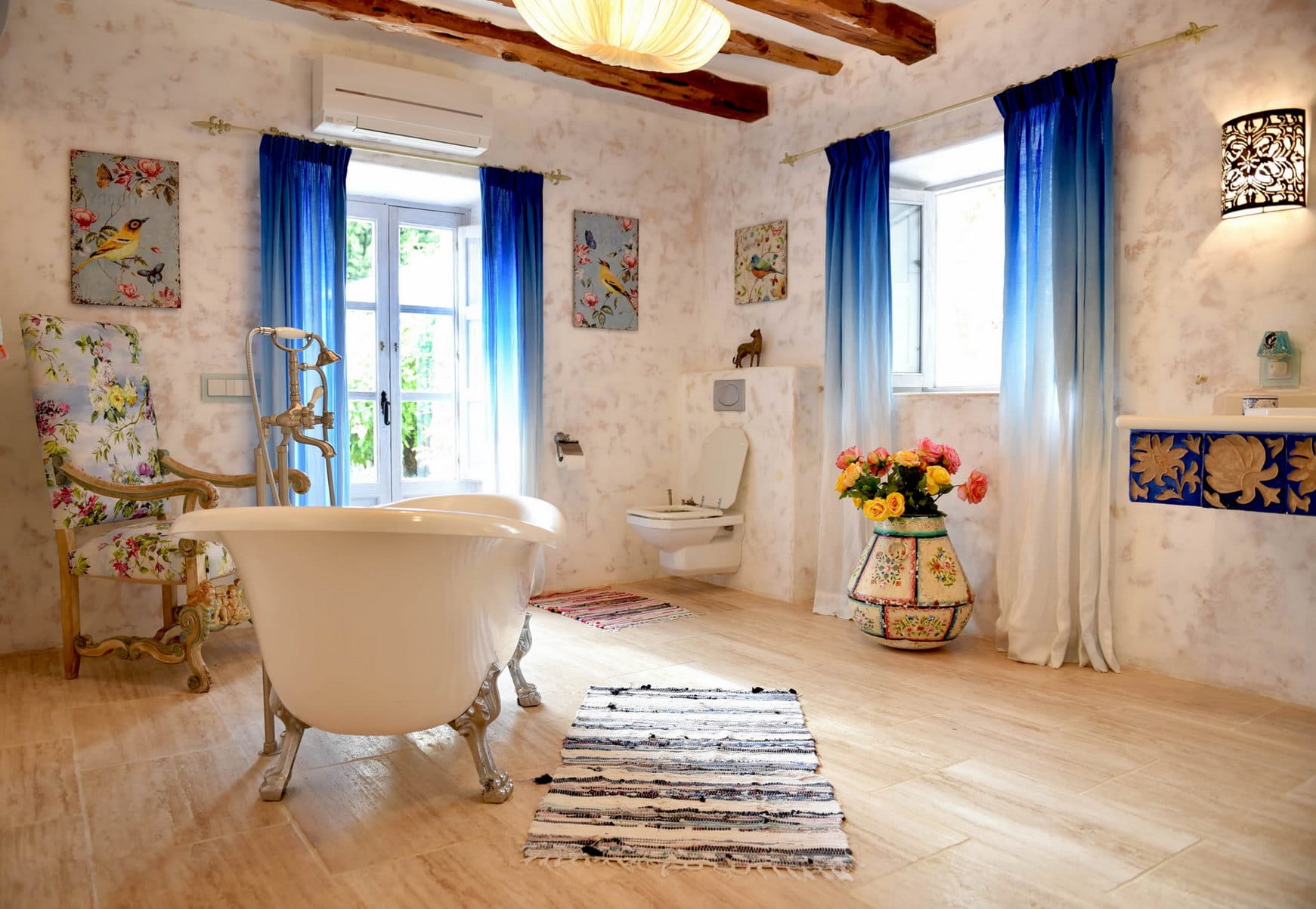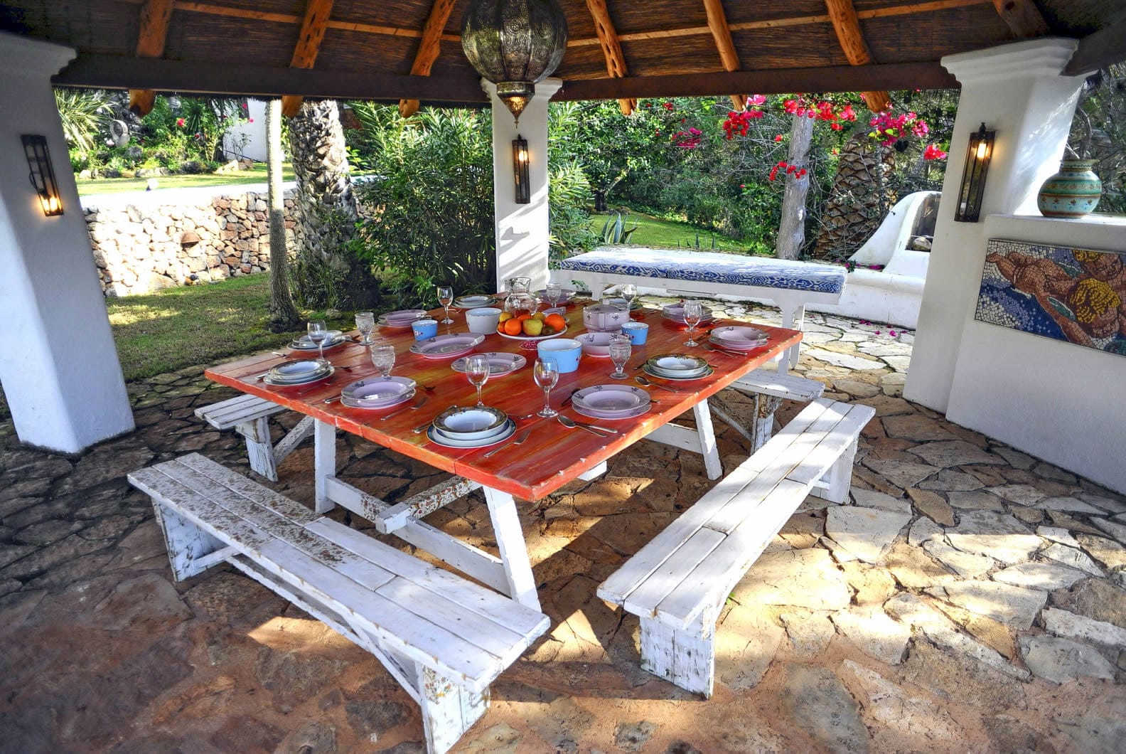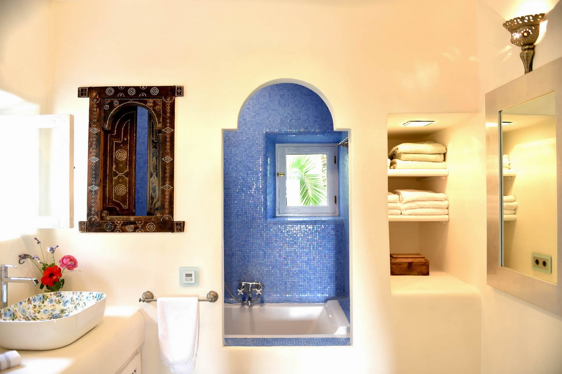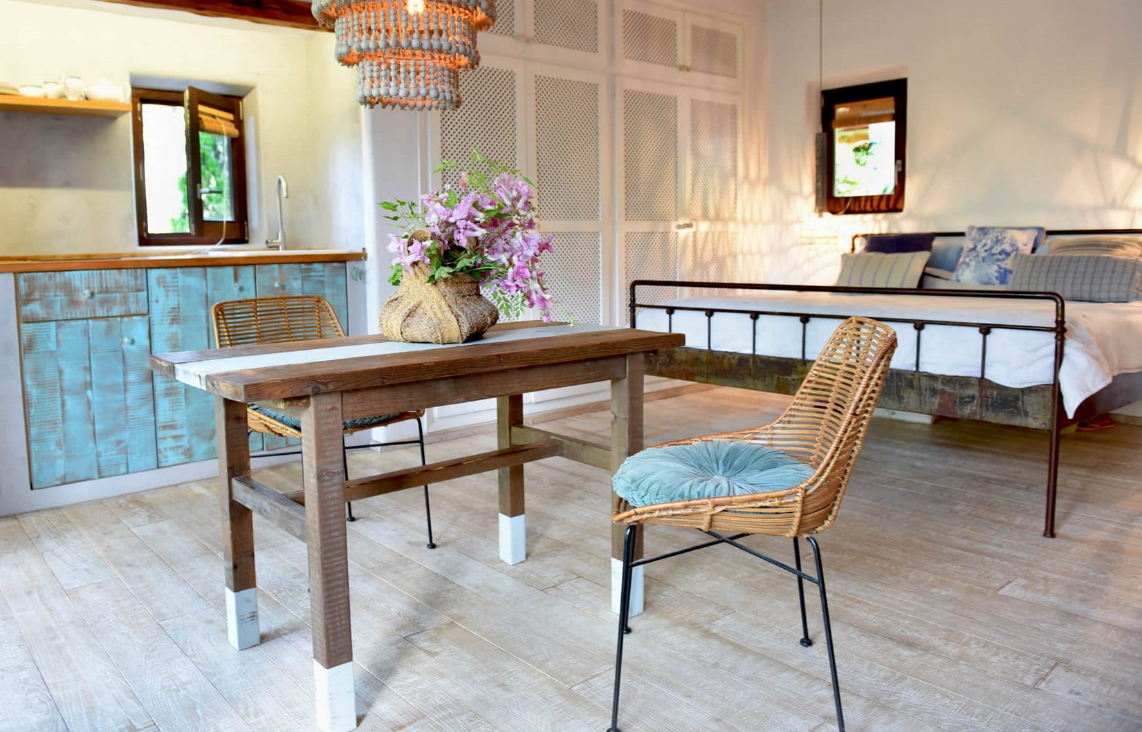An idyllic combination of ancient Ibiza artistic 70’s charm with modern renovations all of the very highest standard, the Boho chic style is the essence of this one-of-a-kind house. The property comprises 4 separate units, with a total of six bedrooms which are connected to the main house, each consisting of luxury suites with their own en-suite bathrooms.