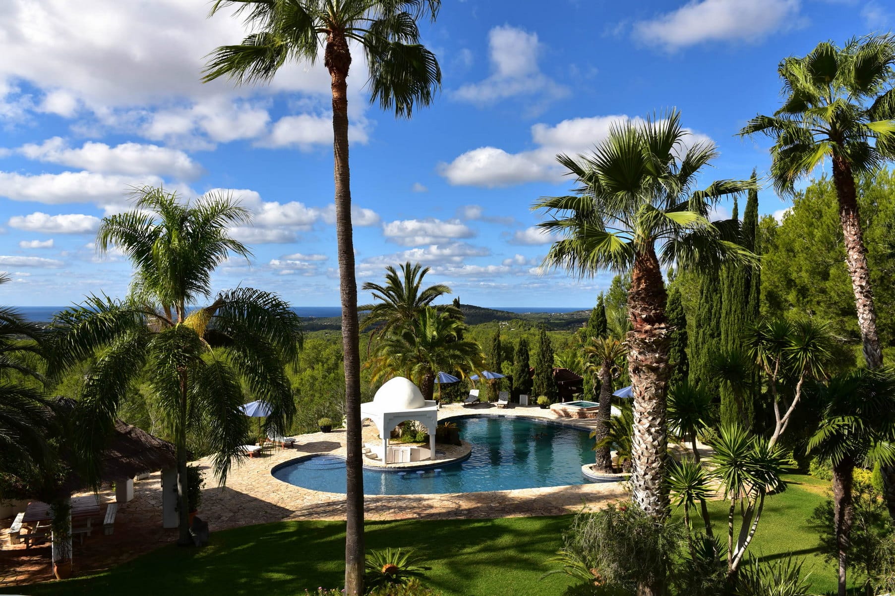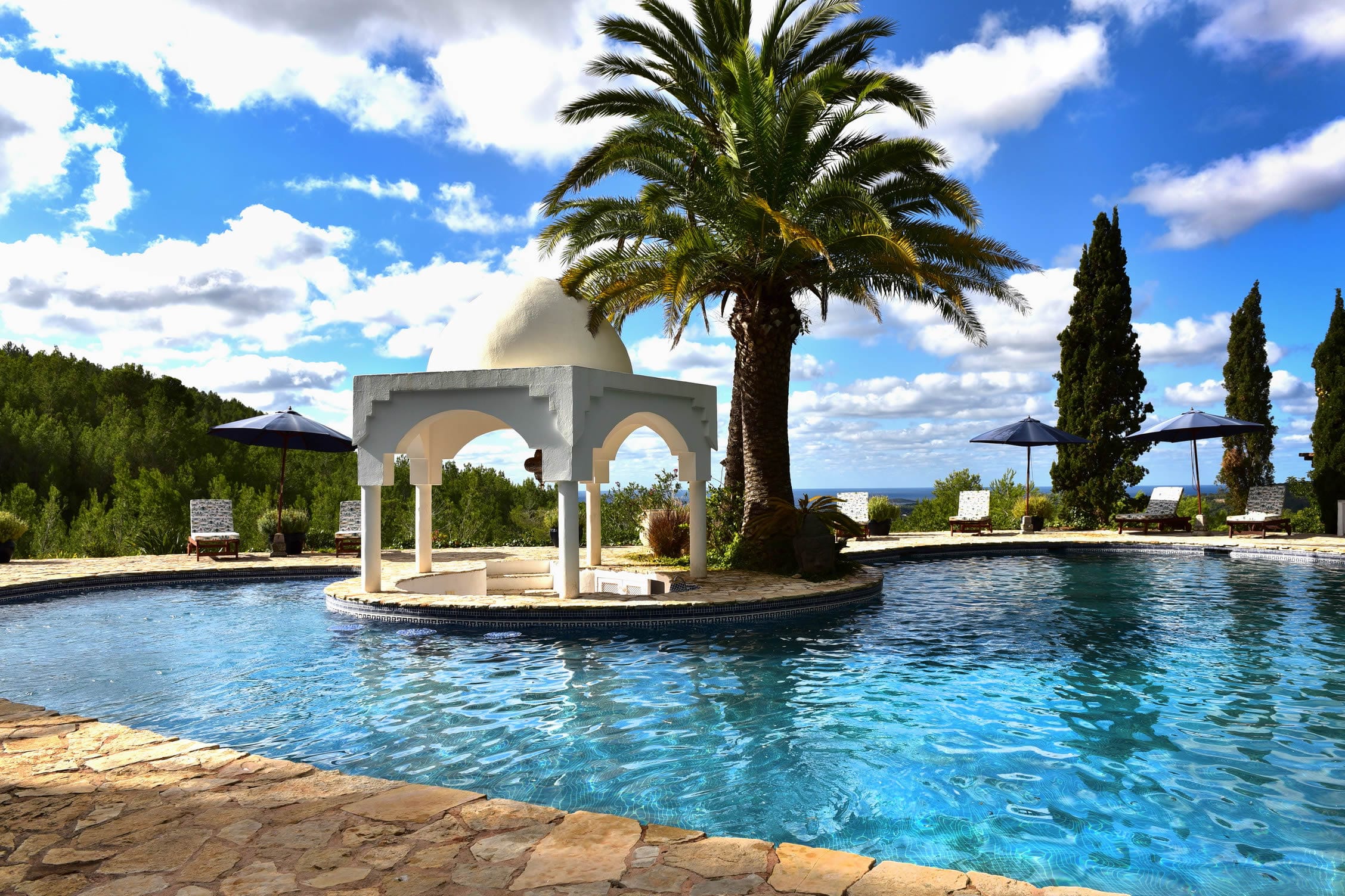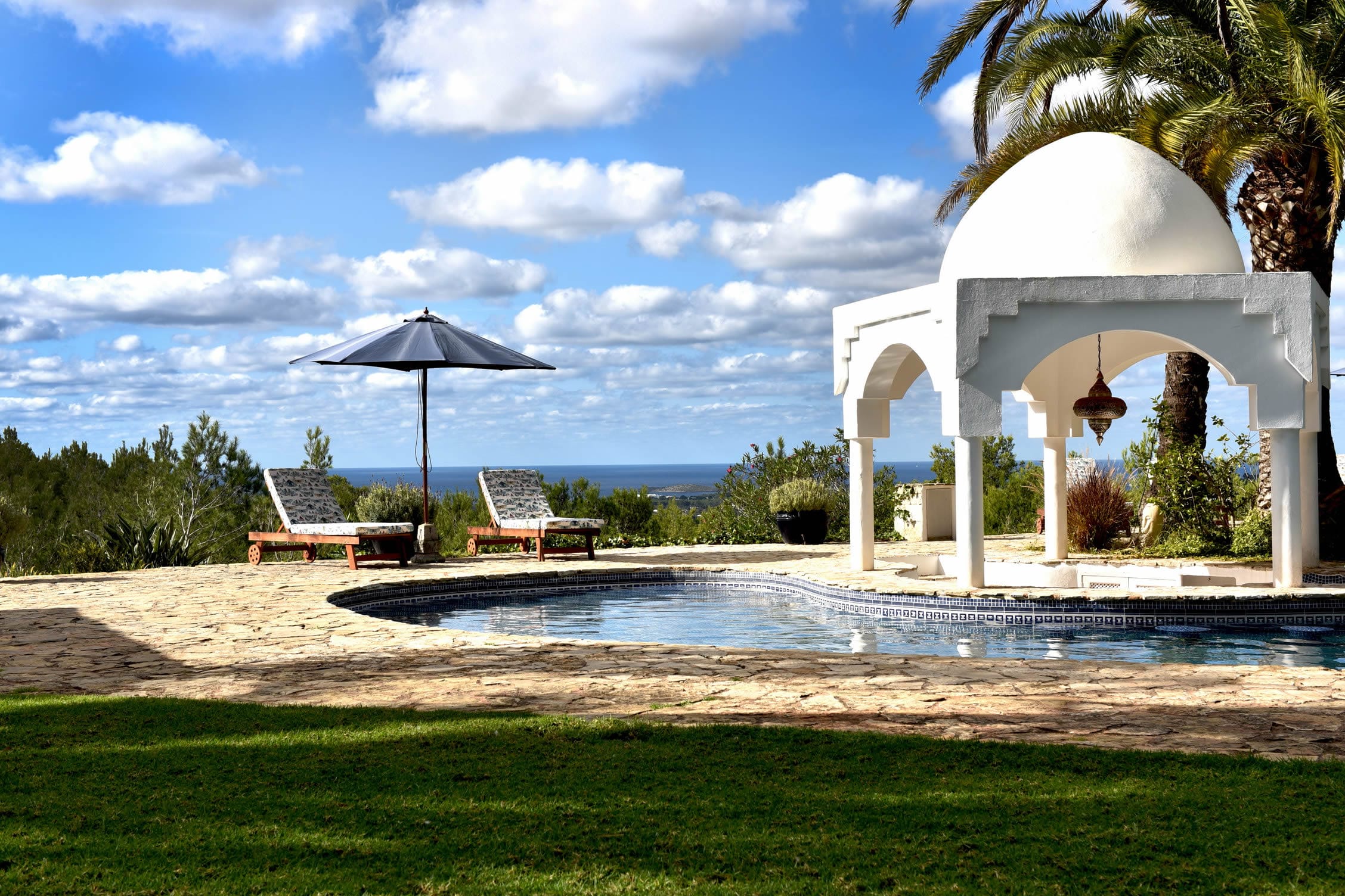 Enchanting villa in Ibiza with panoramic sea views and beautiful outdoor spaces. This luxury home is located on top of a mountain in the north of the island. Surrounded by a beautiful natural landscape, this home is ideally situated between San Carlos and Santa Eulalia.