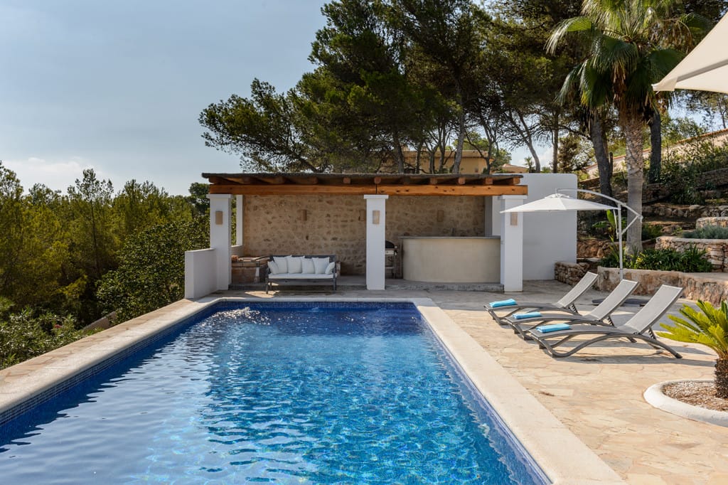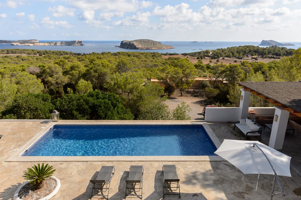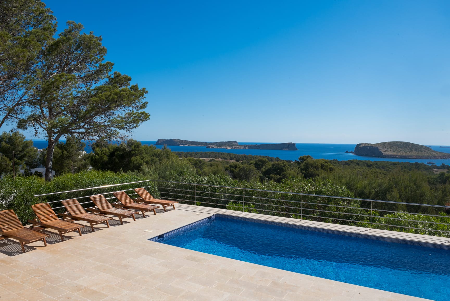 Beautiful villa in Ibiza with sea views from every corner of the house, located in a quiet area, 2.5 km by car and 1 km walk from Cala Bassa and 1,8 km from Cala Conta.