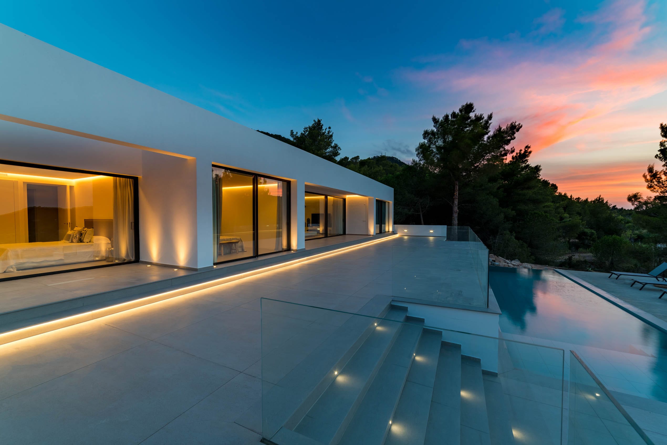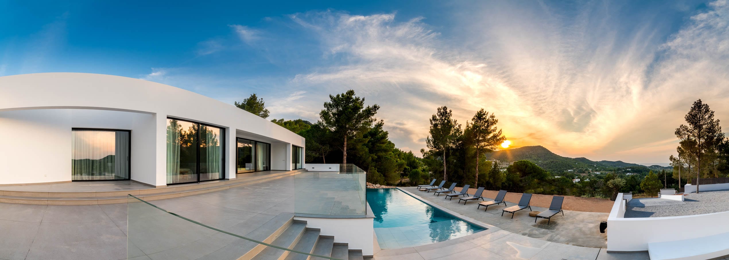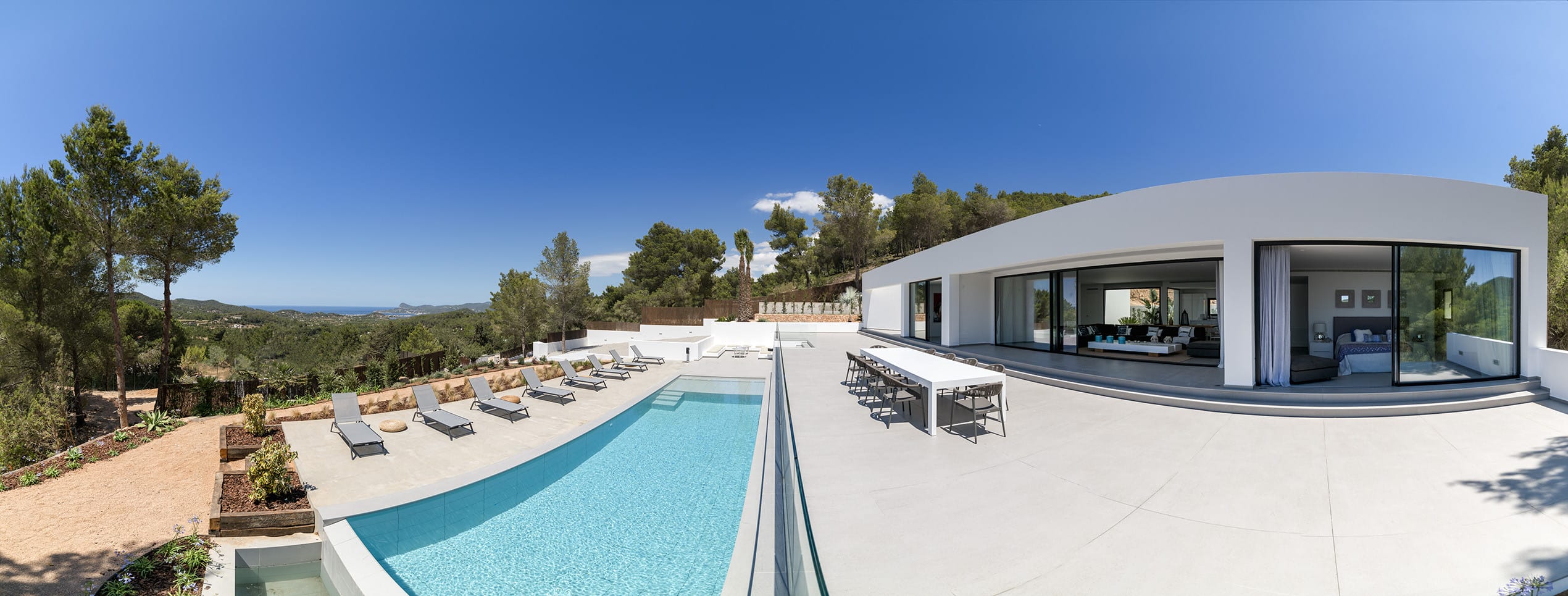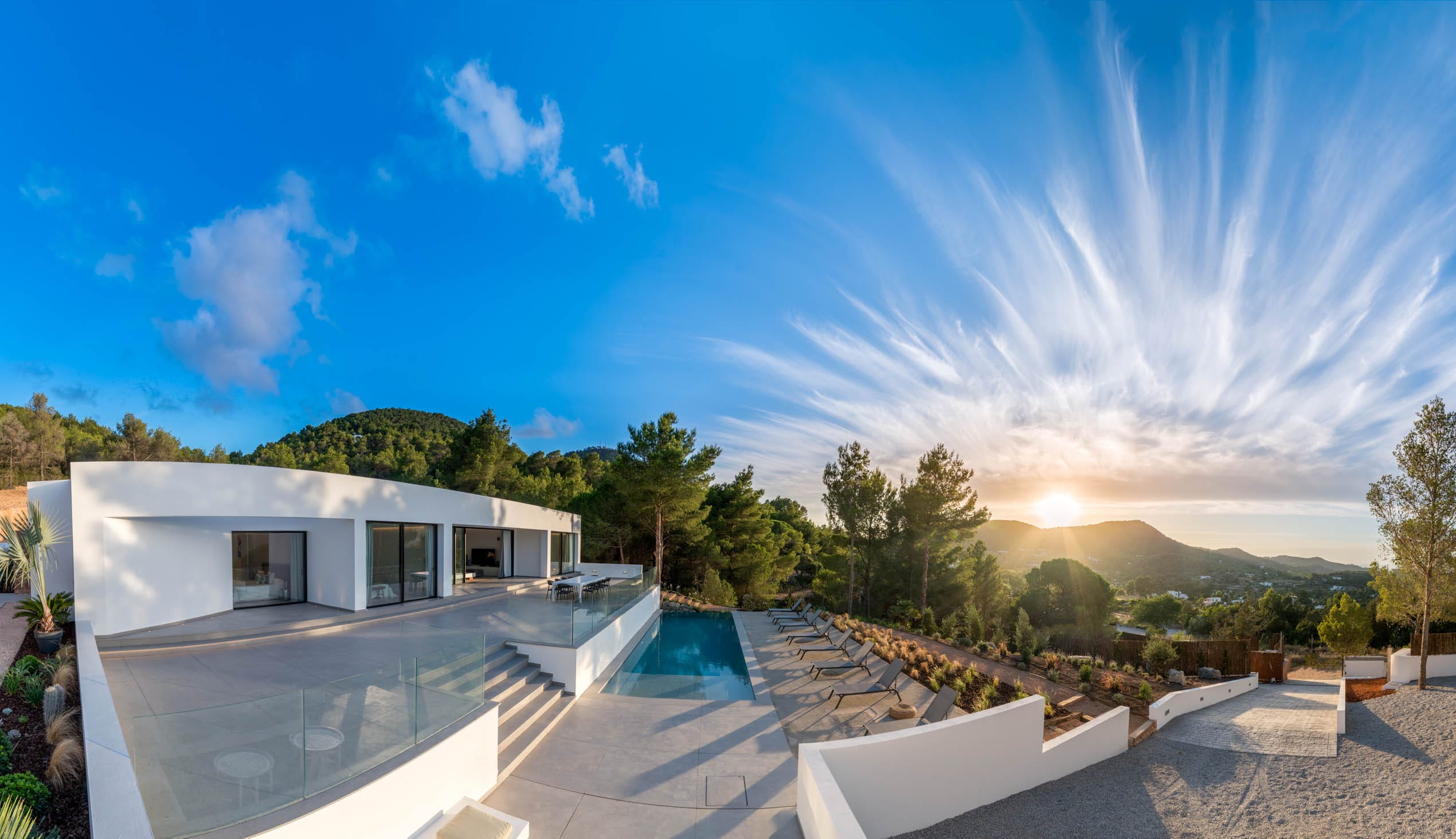 This is a five bedroom villa of 550m2 nestled in the heart of the mountains of Ibiza. The overall atmosphere conveys calm sophistication with a sense of timeless natural beauty and offers the perfect place to catch breath-taking sea views.