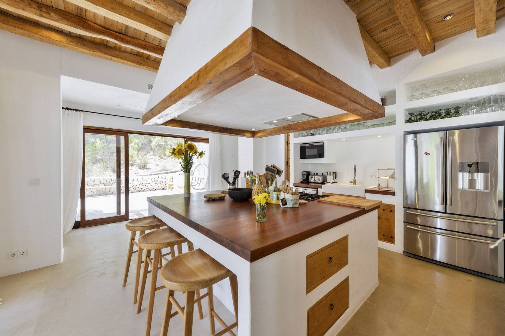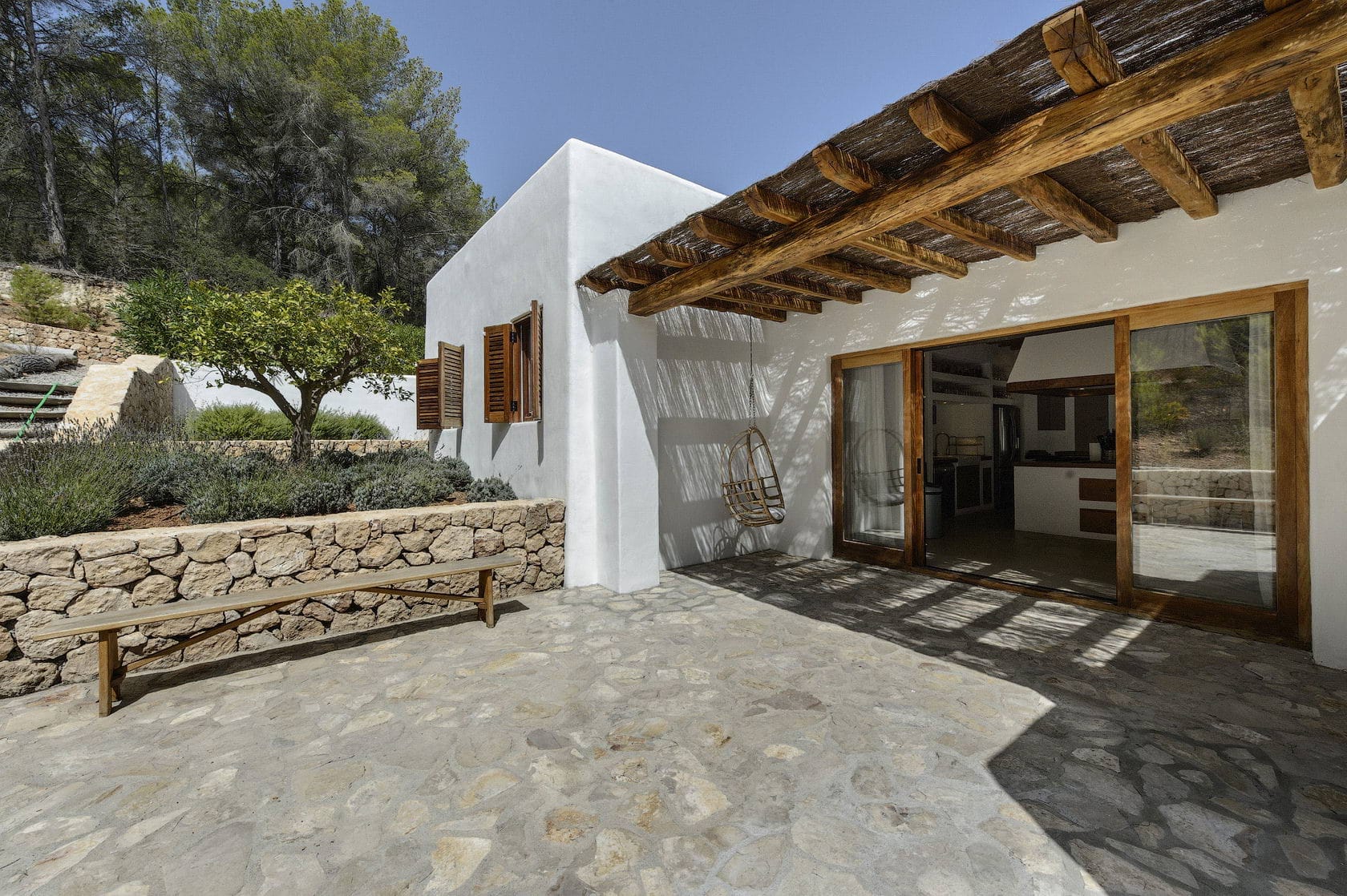 This home is situated in the centre of the island between San Rafael and Santa Gertrudis in the countryside, not far from Ibiza’s most popular destinations.