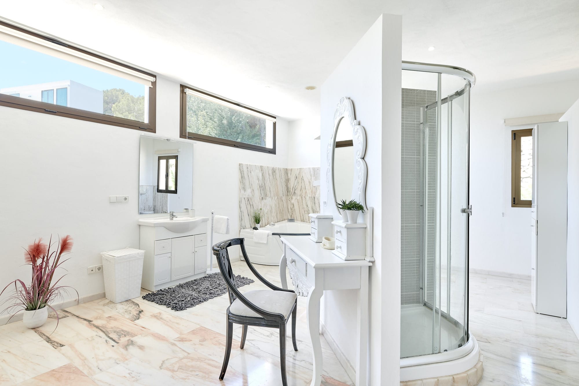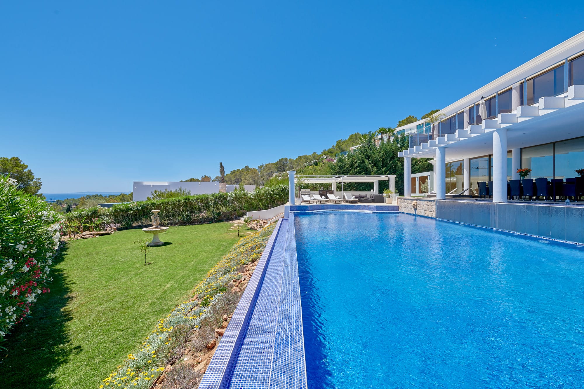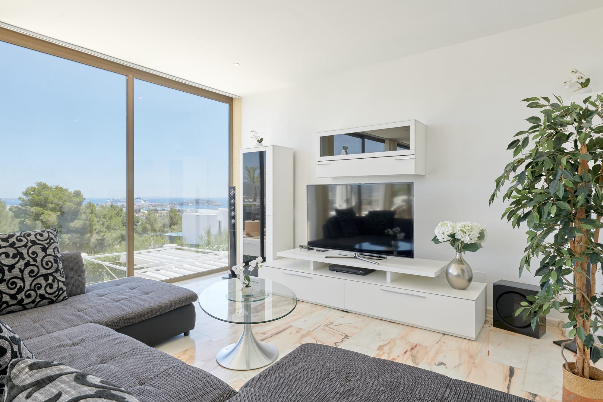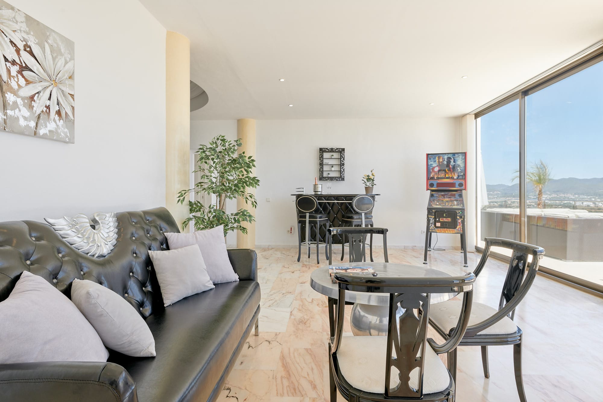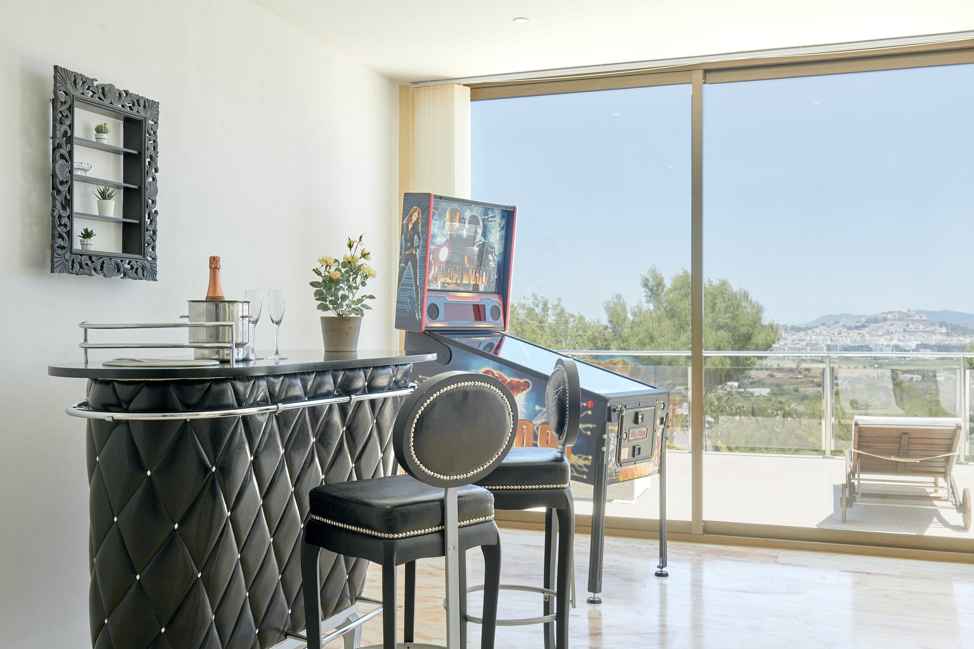 You can enjoy a stunning view over the old town of Ibiza and Formentera from the two main bedrooms (65 and 50 m2) -on the top floor – which have bar, bathroom and jacuzzi, or from the infinity pool.