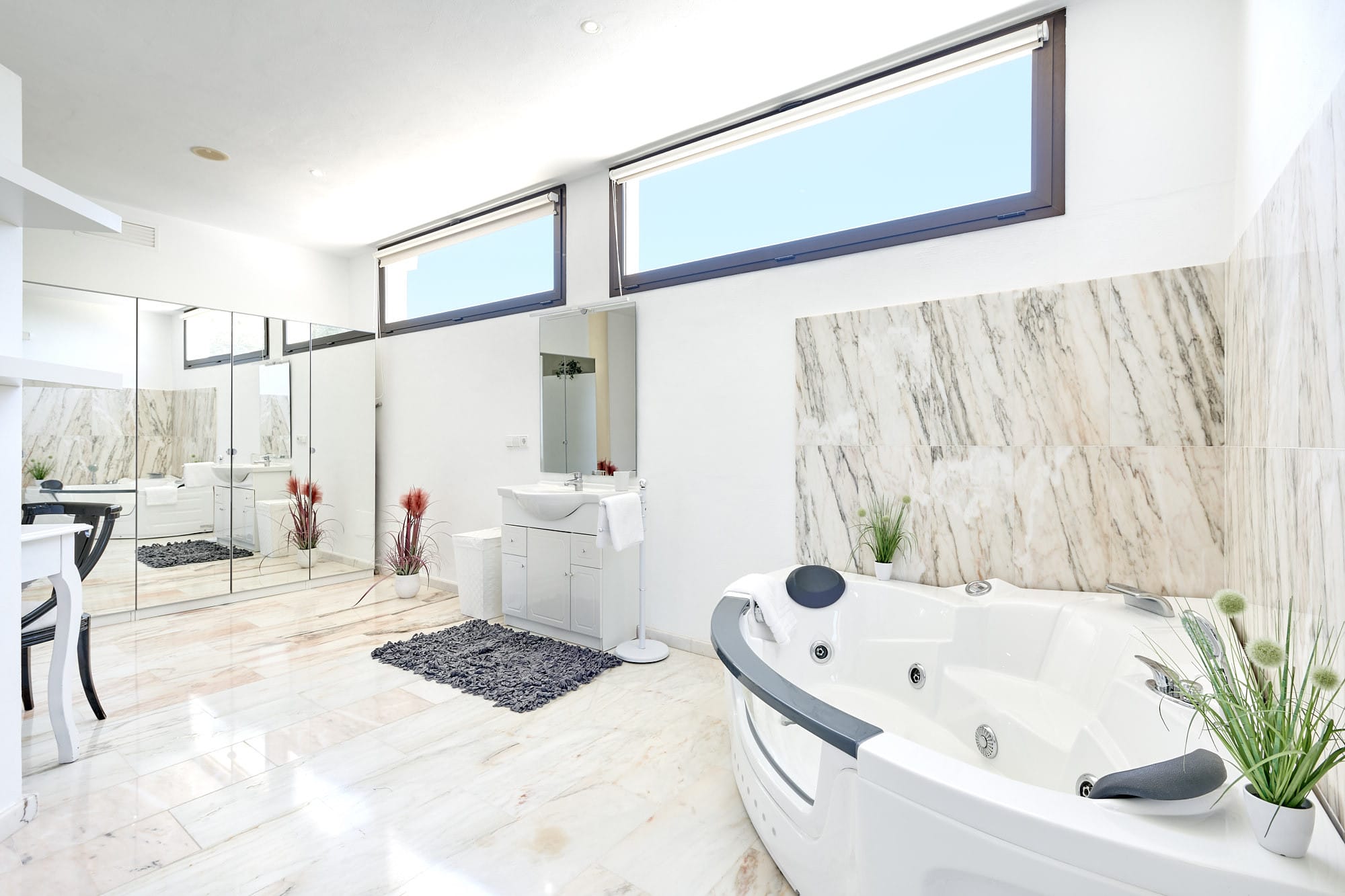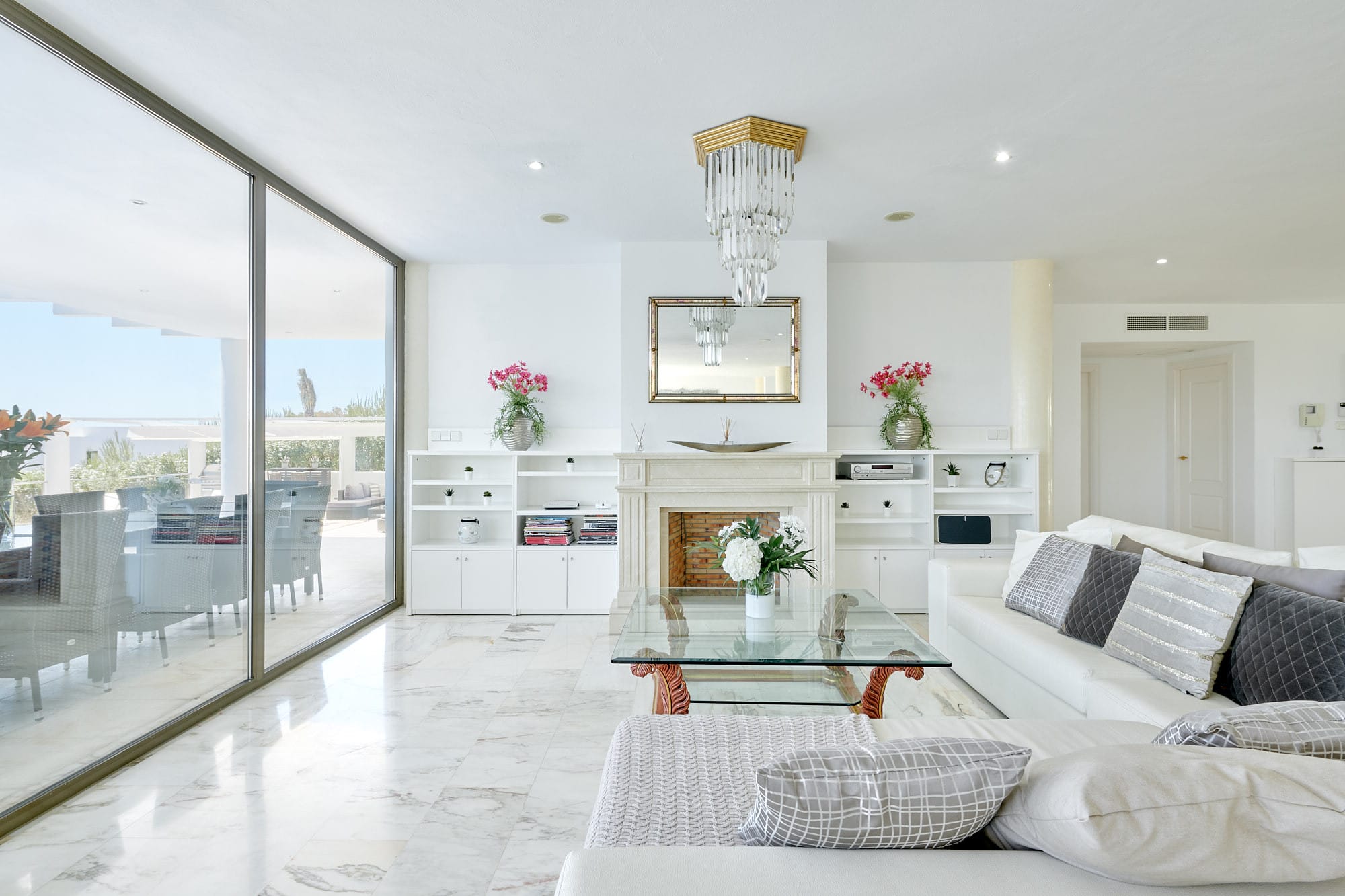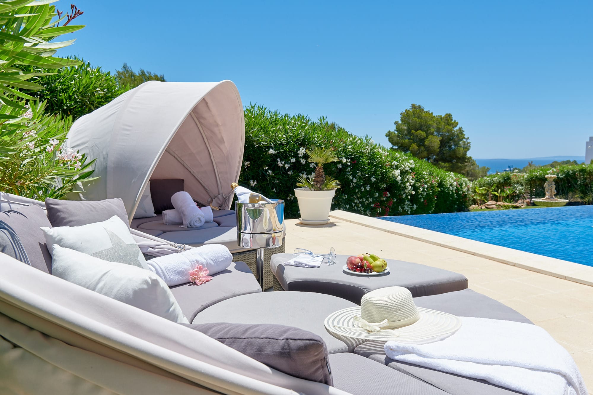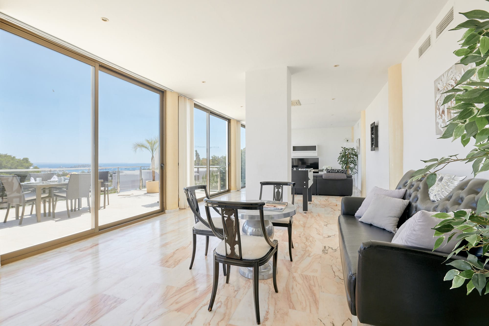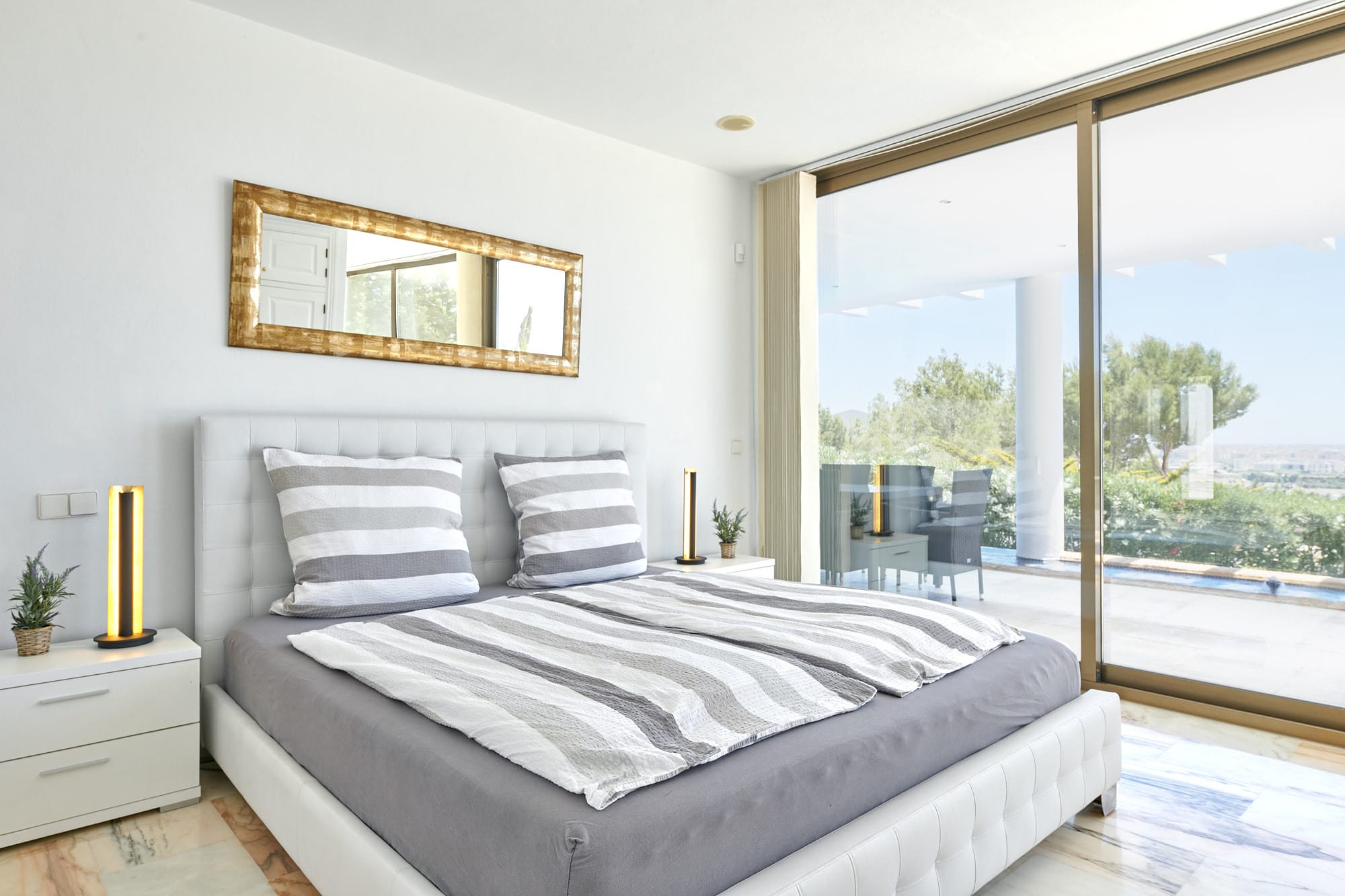 You can enjoy a stunning view over the old town of Ibiza and Formentera from the two main bedrooms (65 and 50 m2) -on the top floor – which have bar, bathroom and jacuzzi, or from the infinity pool.