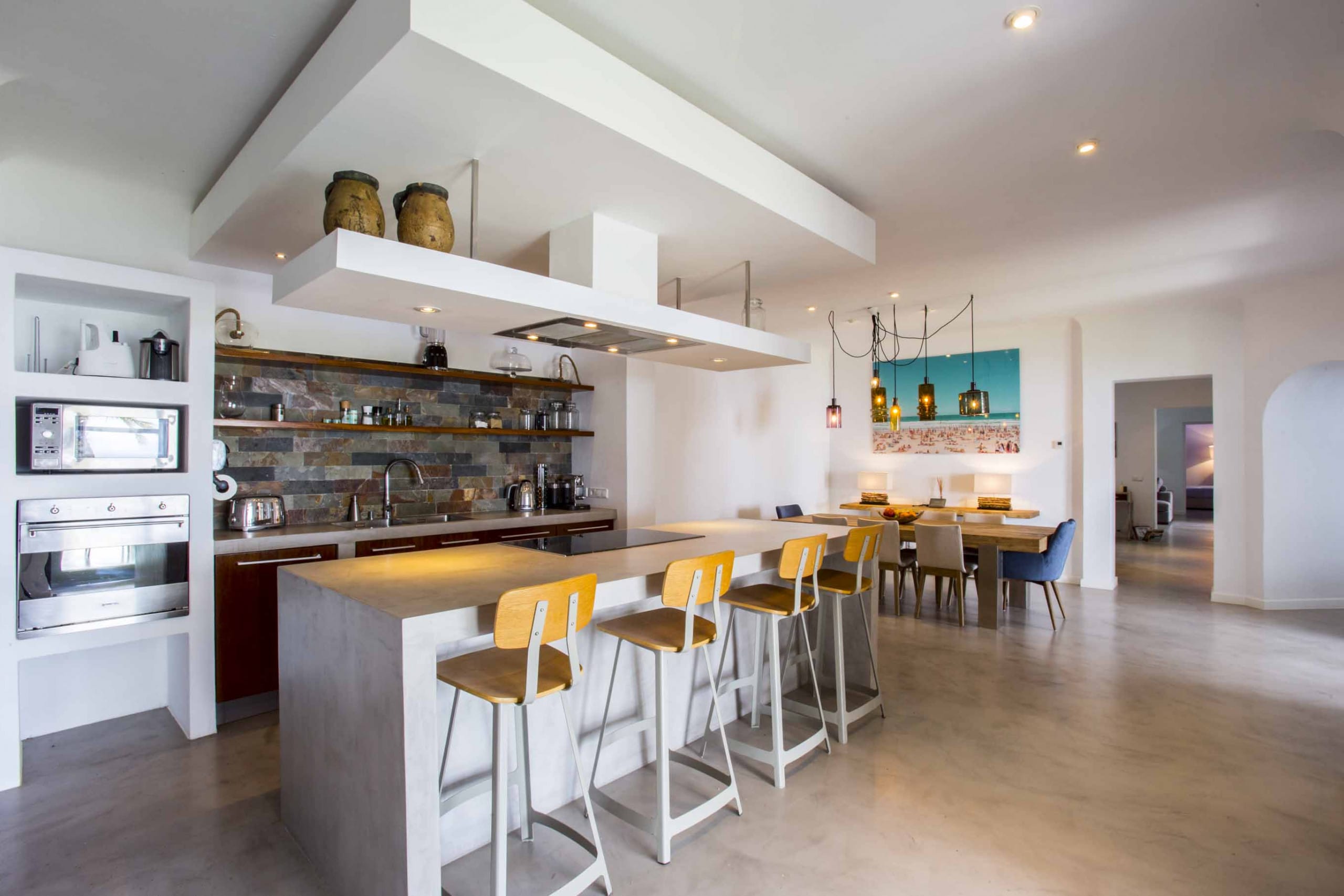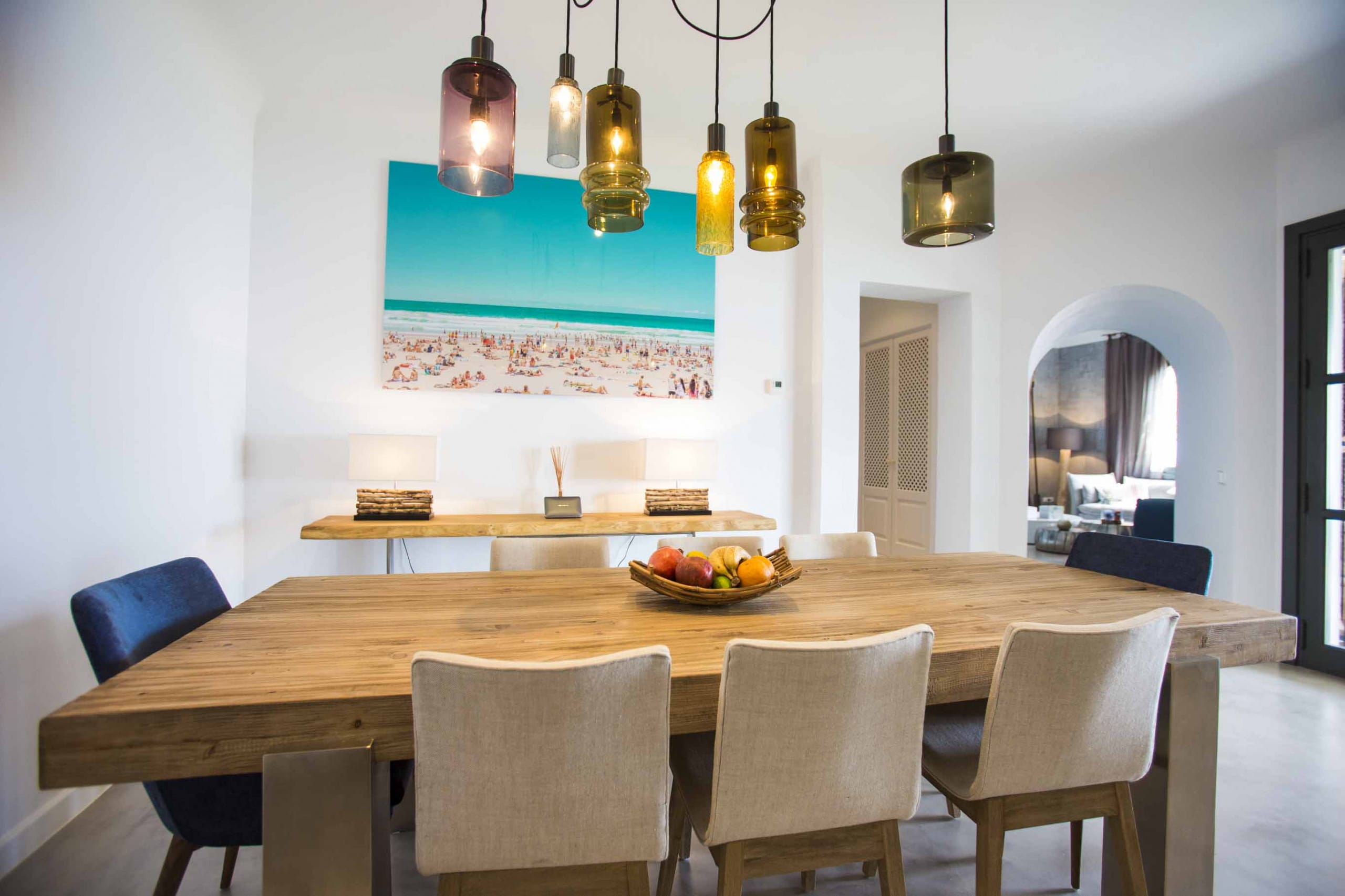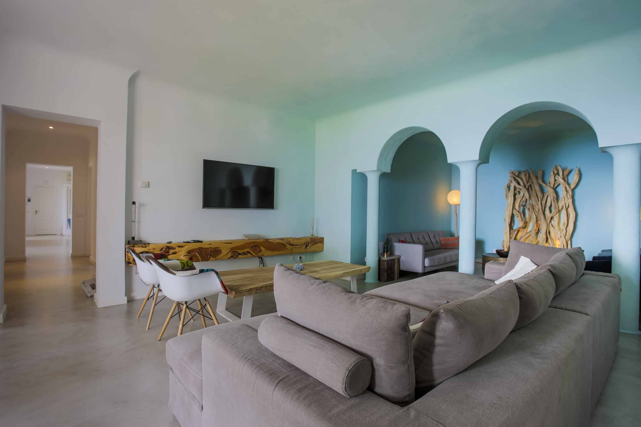 The most exclusive private urbanization in Ibiza composed of 15 amazing and independent villas. This fully renovated stylish villa with sea views of 600 sqm of indoor living space with 2 living rooms and a full equipped kitchen and a capacity for 12 pax that offers a limitless view of blue ocean and sky, melting into each other. Only 1 minute away from Ses Boques Beach in which our clients have priority access. Only 15 min from Ibiza Town and five min from San Josep and Cala Jondal beach.