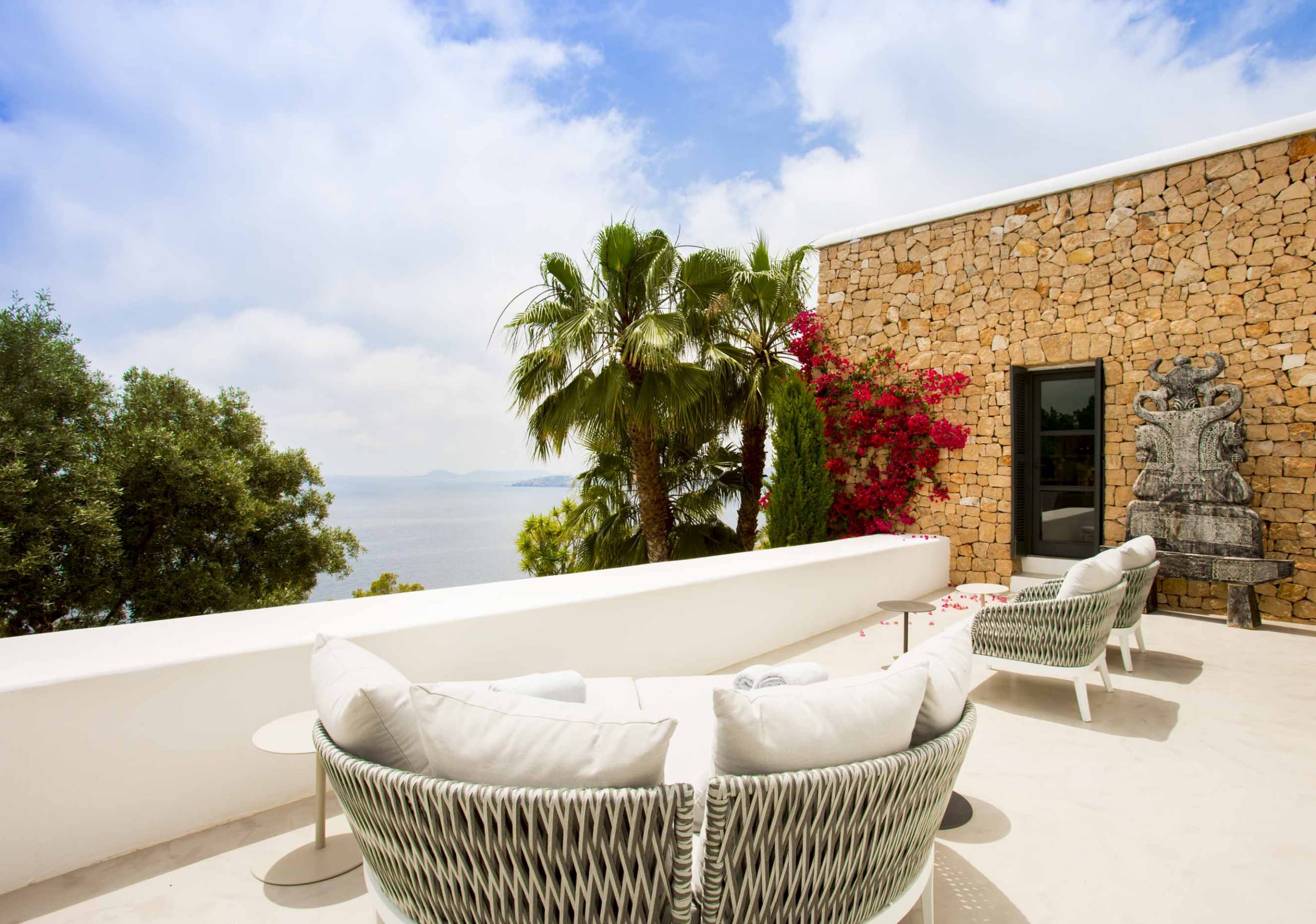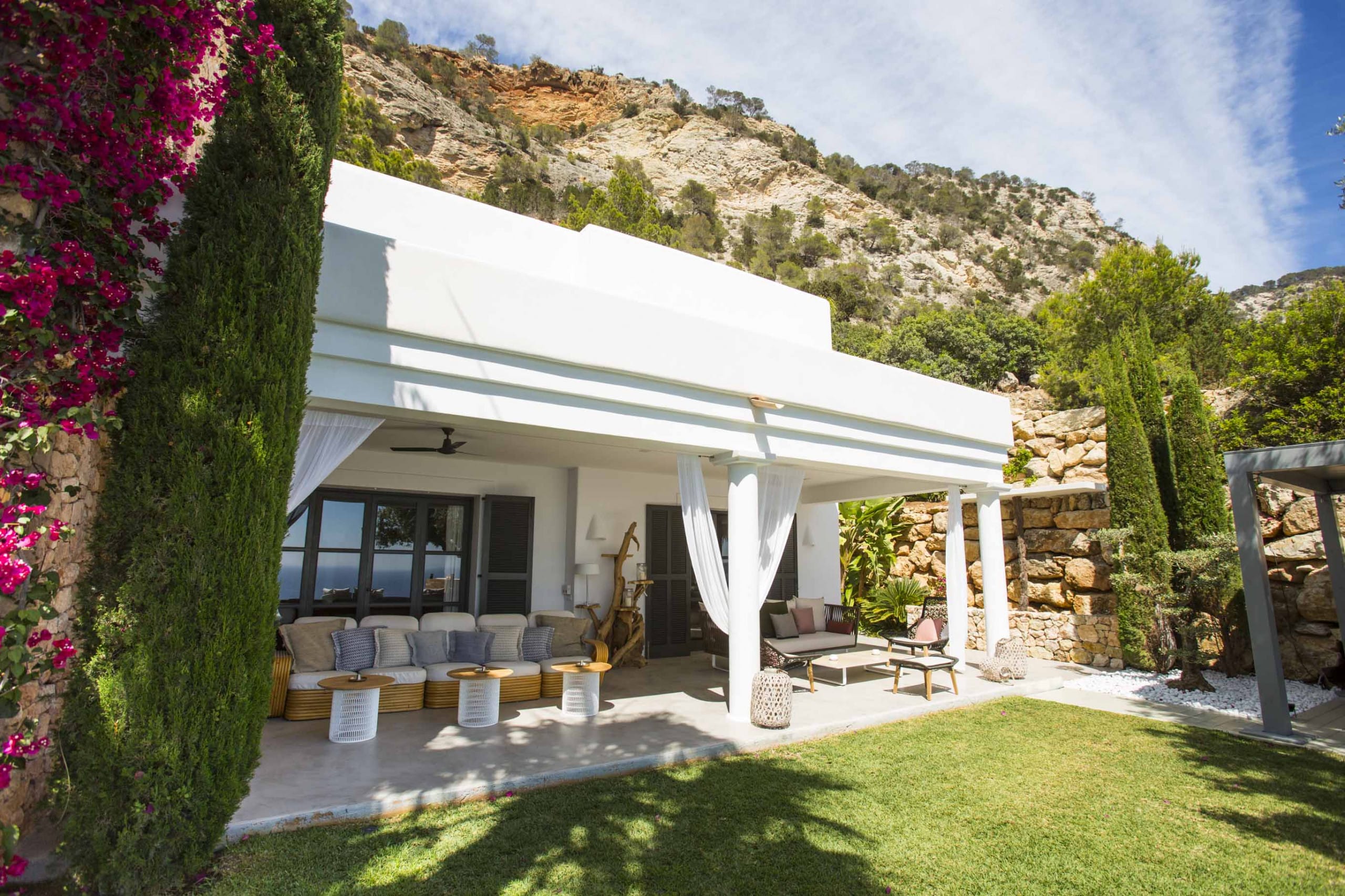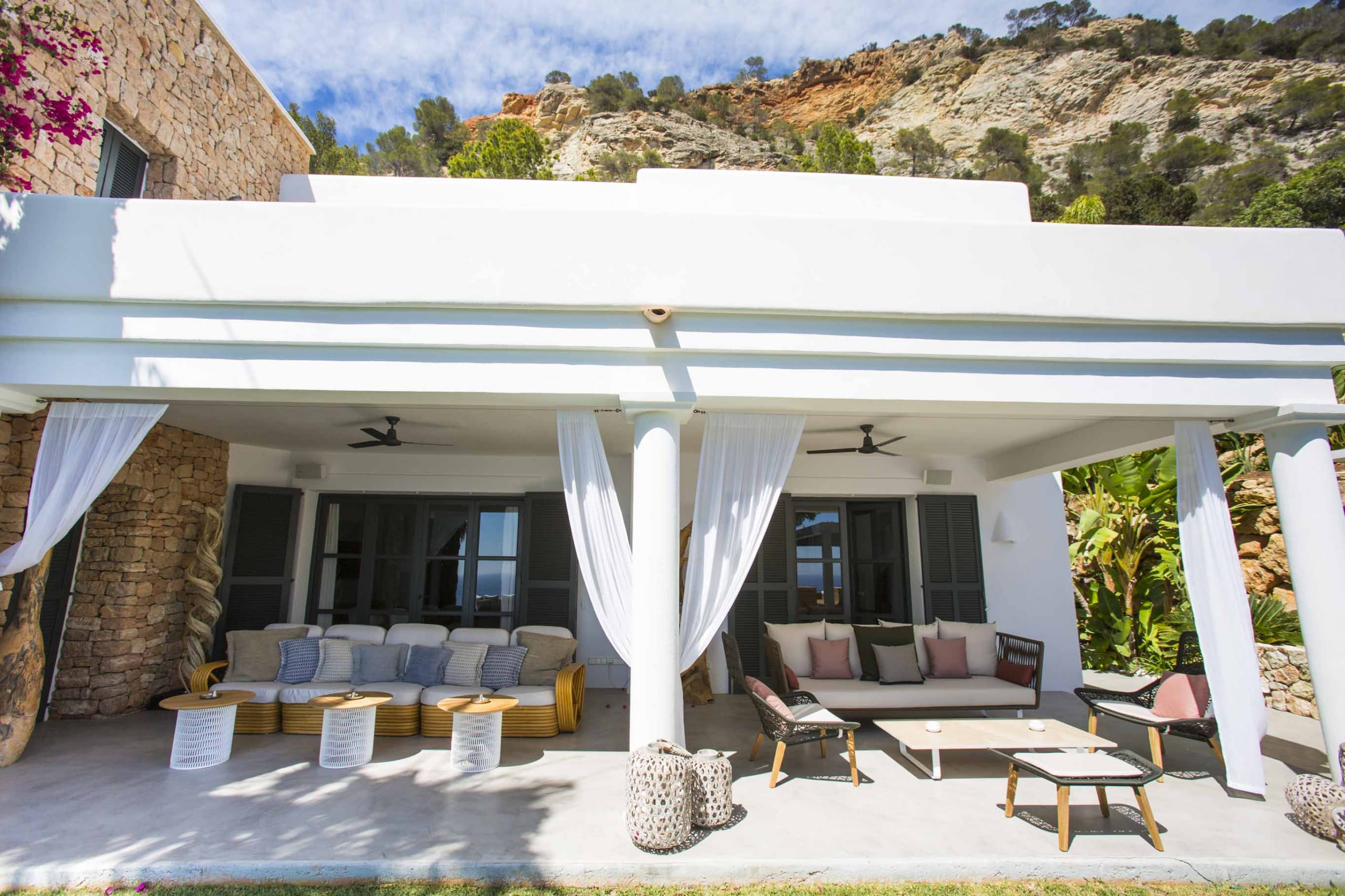 Enjoy the tranquillity and the exclusivity staying on top of a cliff facing the calm waters of Es Cubells Natural Park.