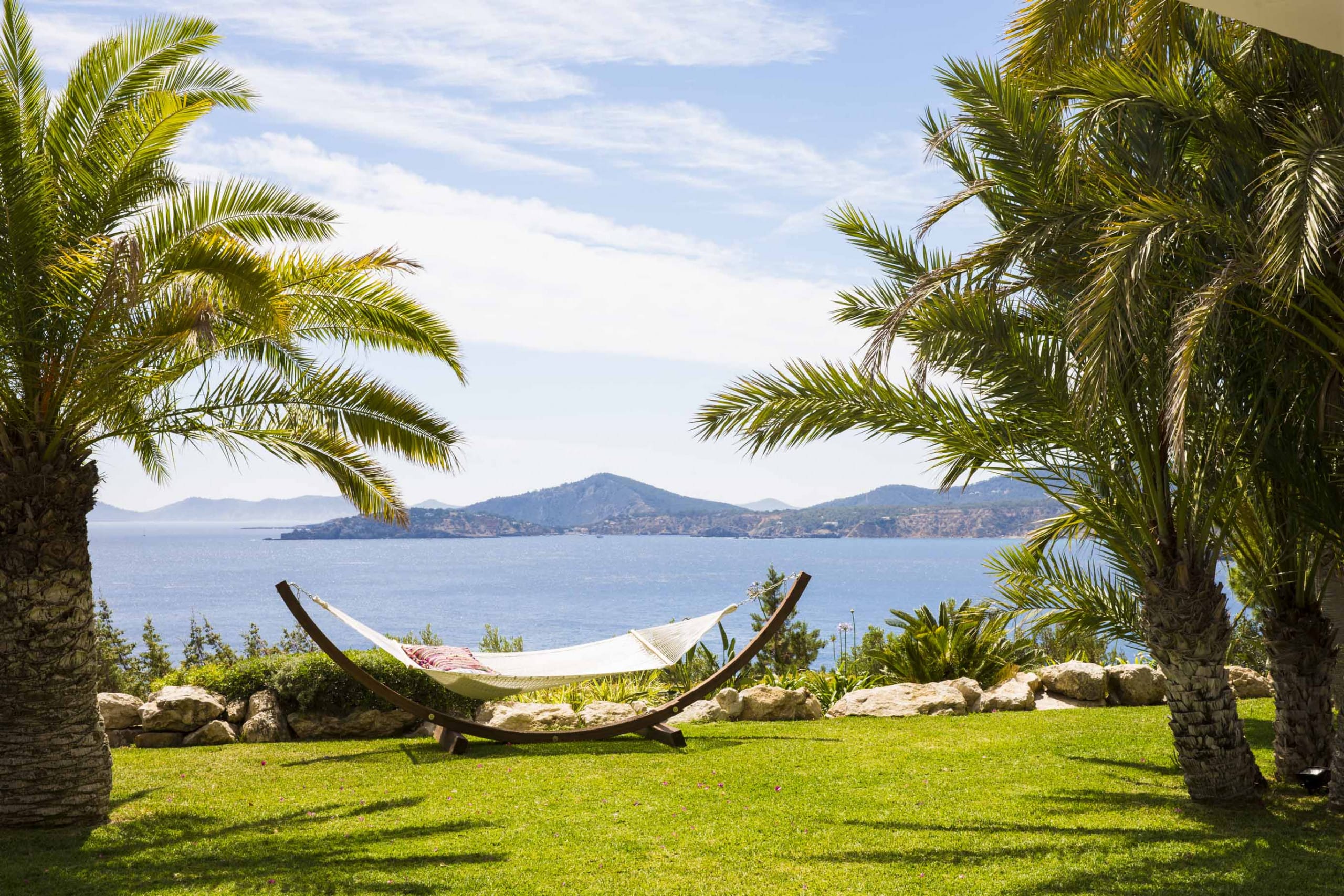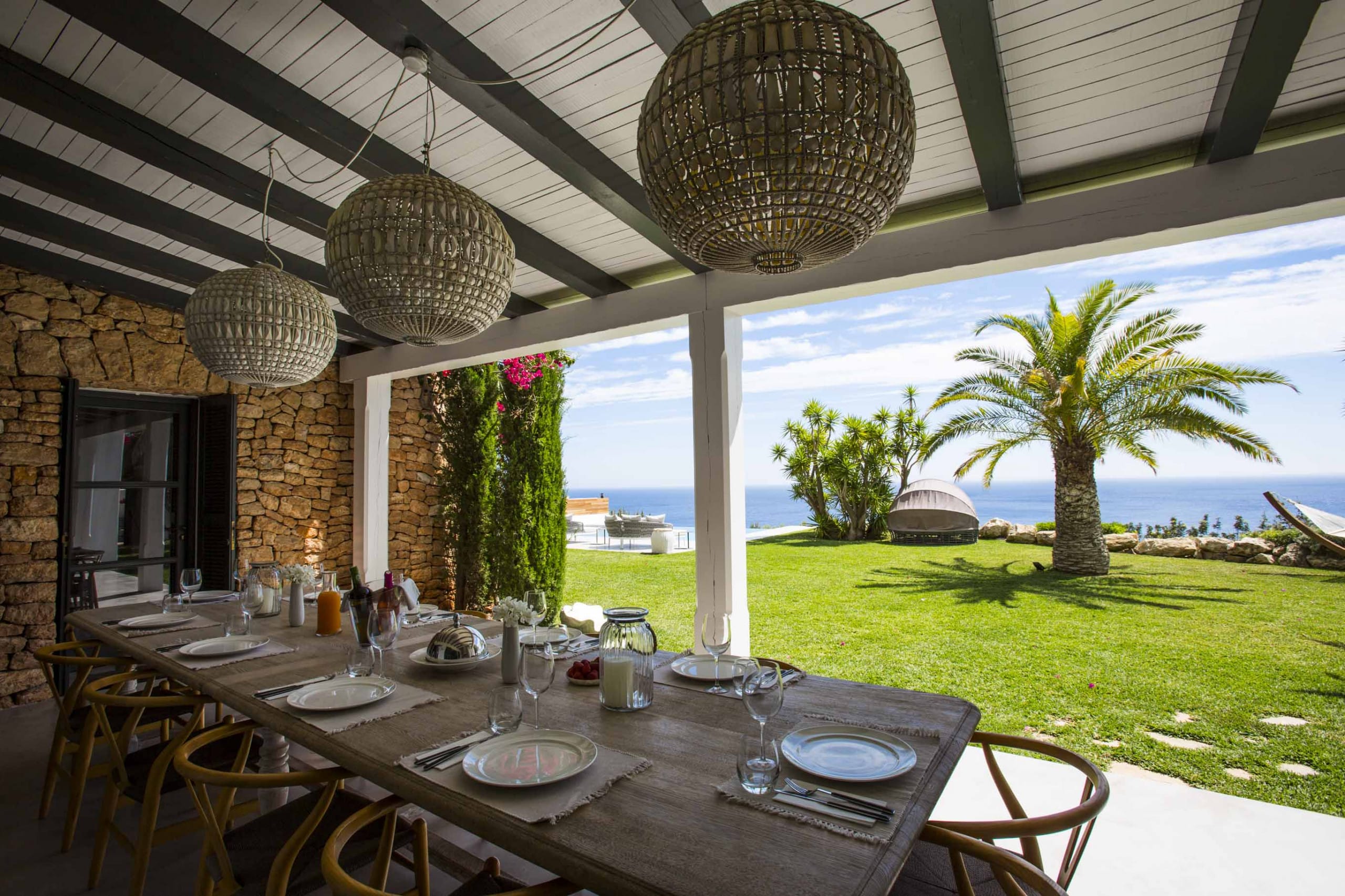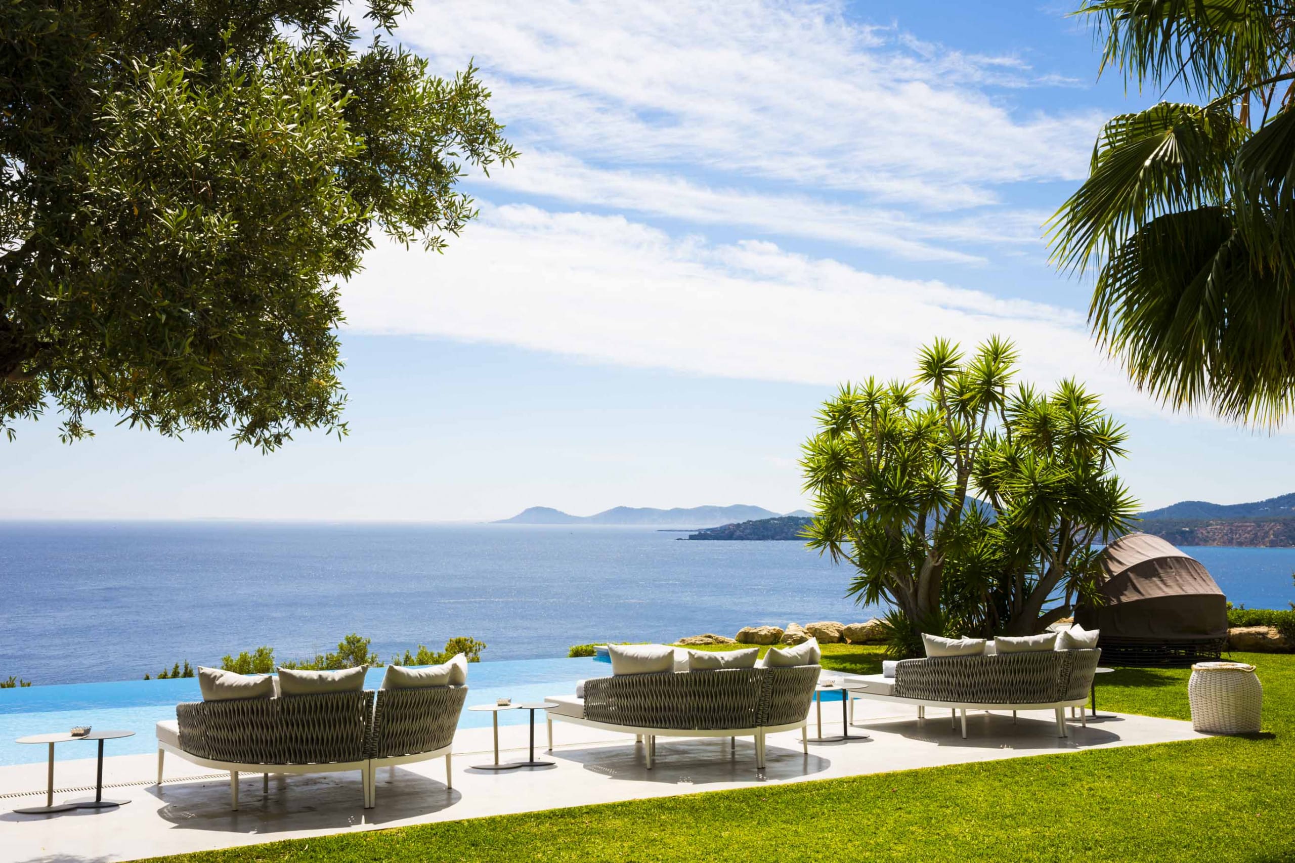 Enjoy the tranquillity and the exclusivity staying on top of a cliff facing the calm waters of Es Cubells Natural Park.