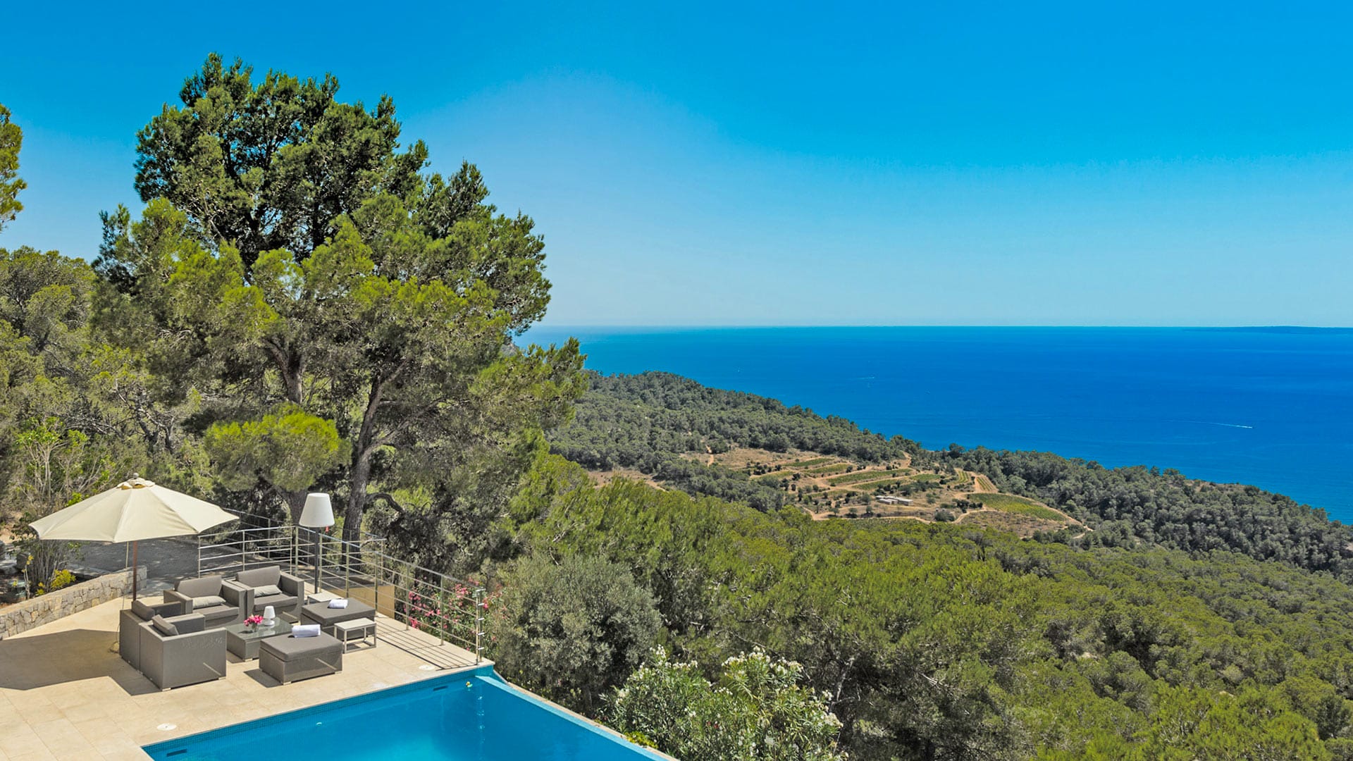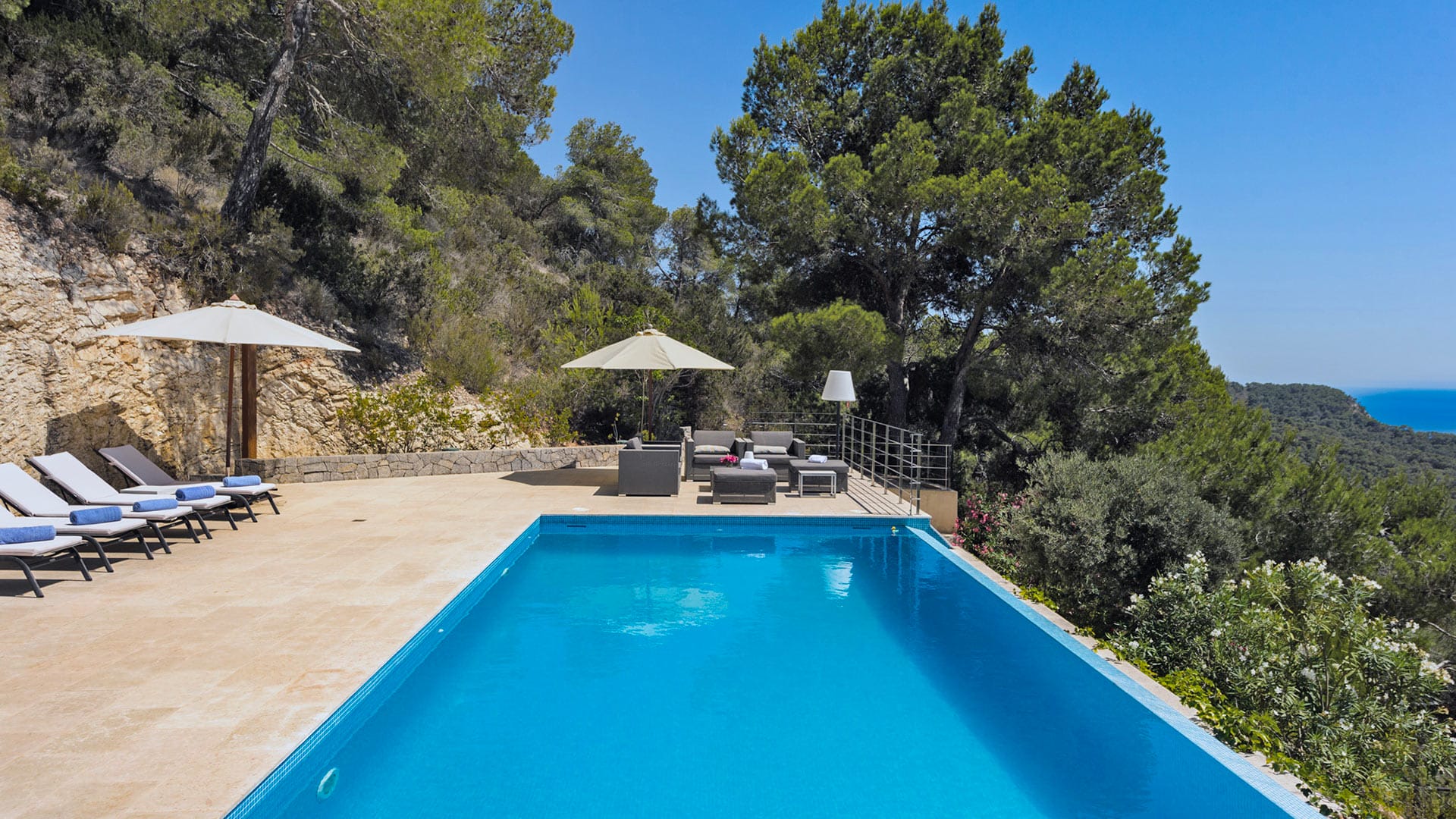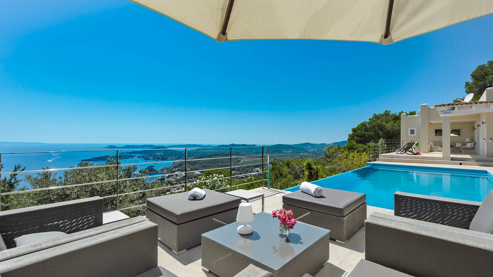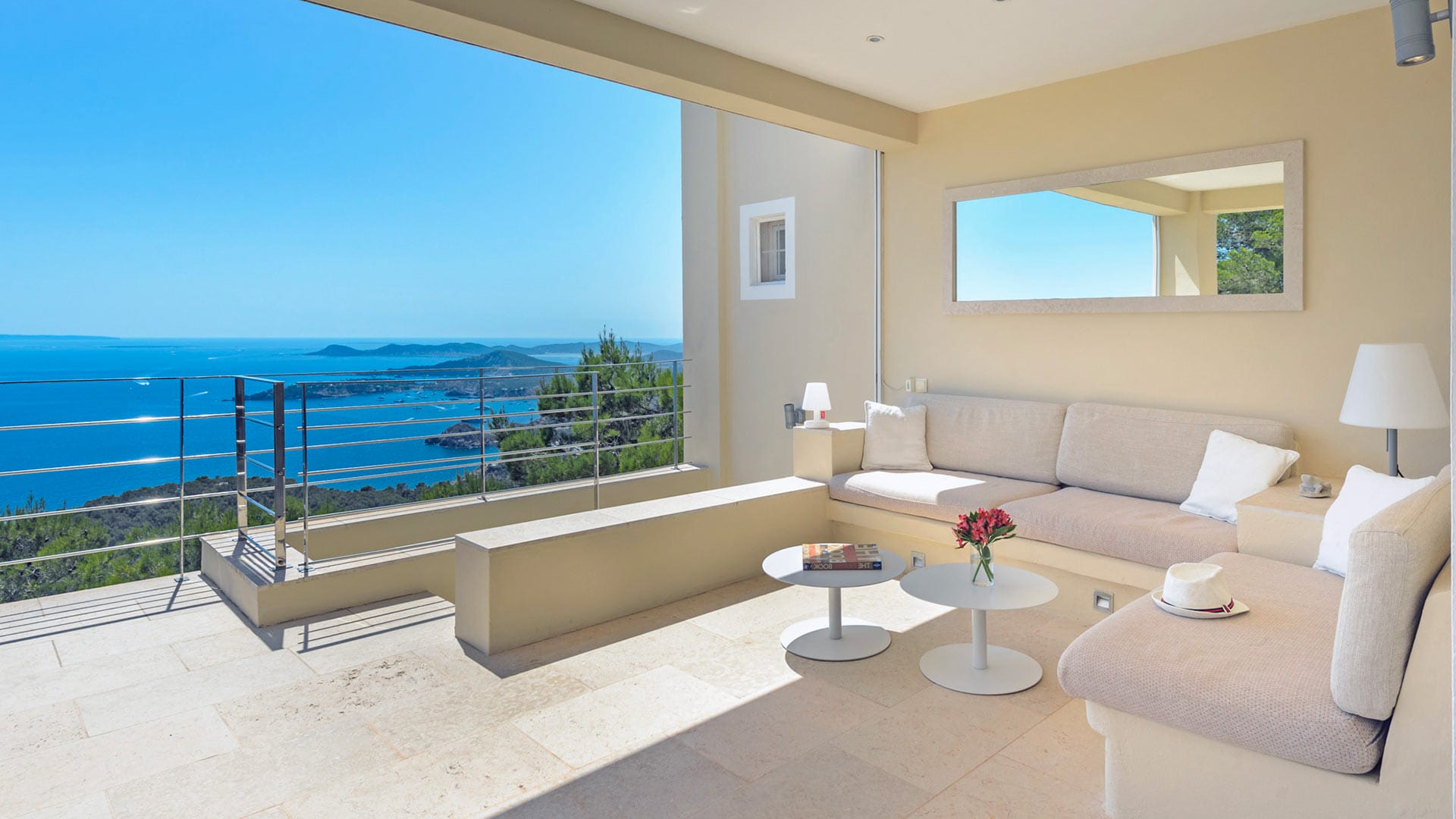 Can Omar is an opulent four-bedroom mansion set in the hills of Es Cubells in Ibiza’s south. The home boasts genuinely breathtaking sea views and has been tastefully renovated to the highest standards. The villa is in a prime location, providing quick access to the south’s famous sunset beaches, including Cala Tarida and Cala Conte, which are home to a variety of bustling bars and restaurants.