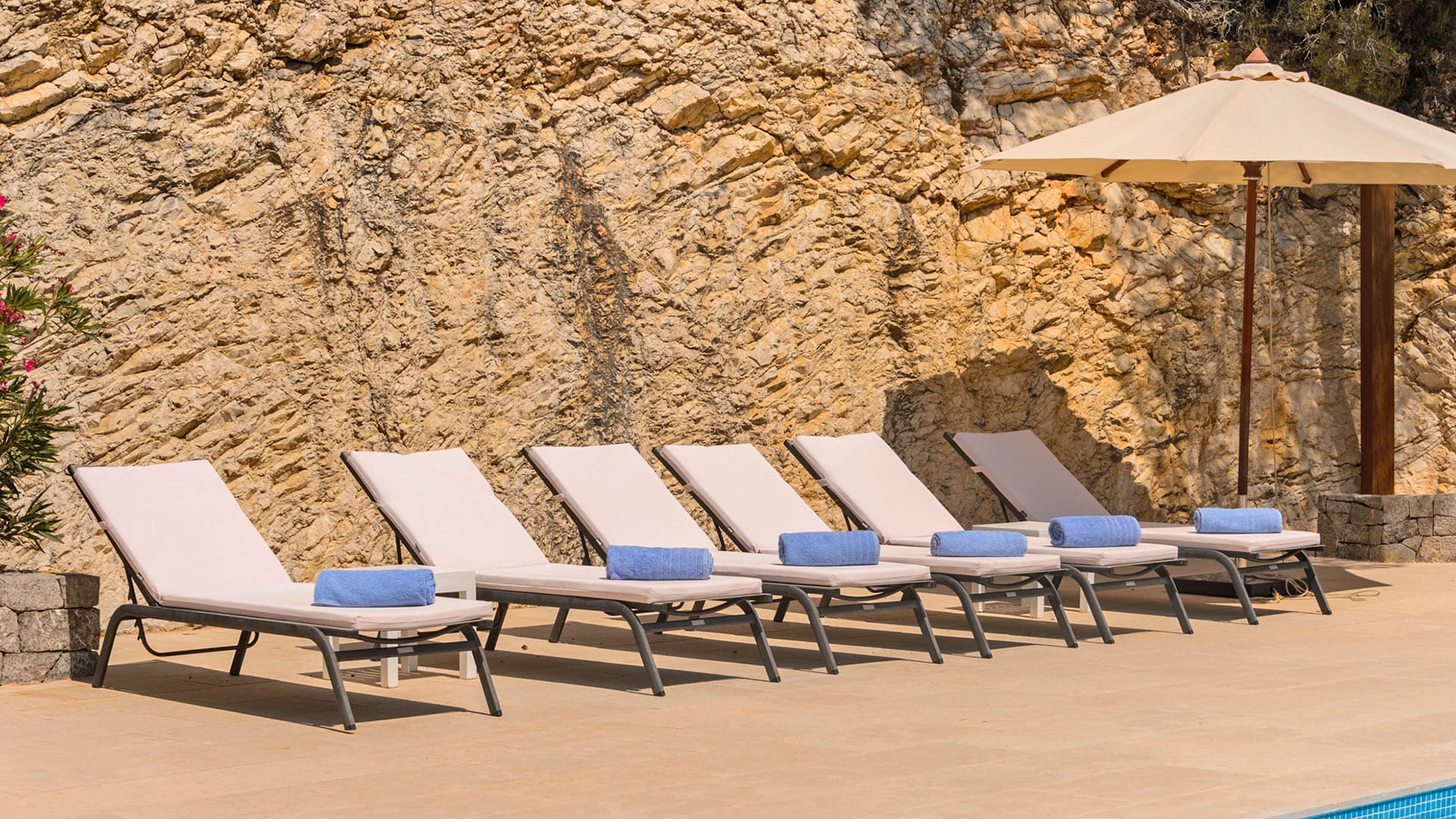 Can Omar’s surroundings are similarly wonderful and beckon to be appreciated; lounge by the pool and soak up the sun, or seek shelter in the covered dining area in the center of the lovely terrace, which is encircled by chill-out corners, beds, sofas, and sitting places overlooking the sea and Es Cubells harbor.