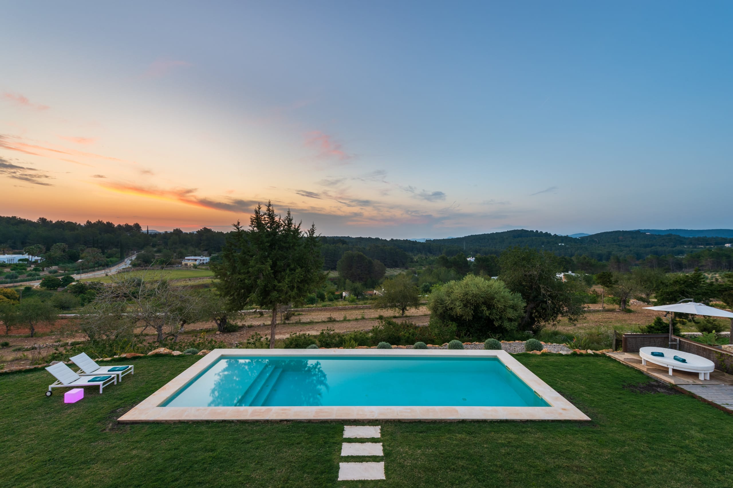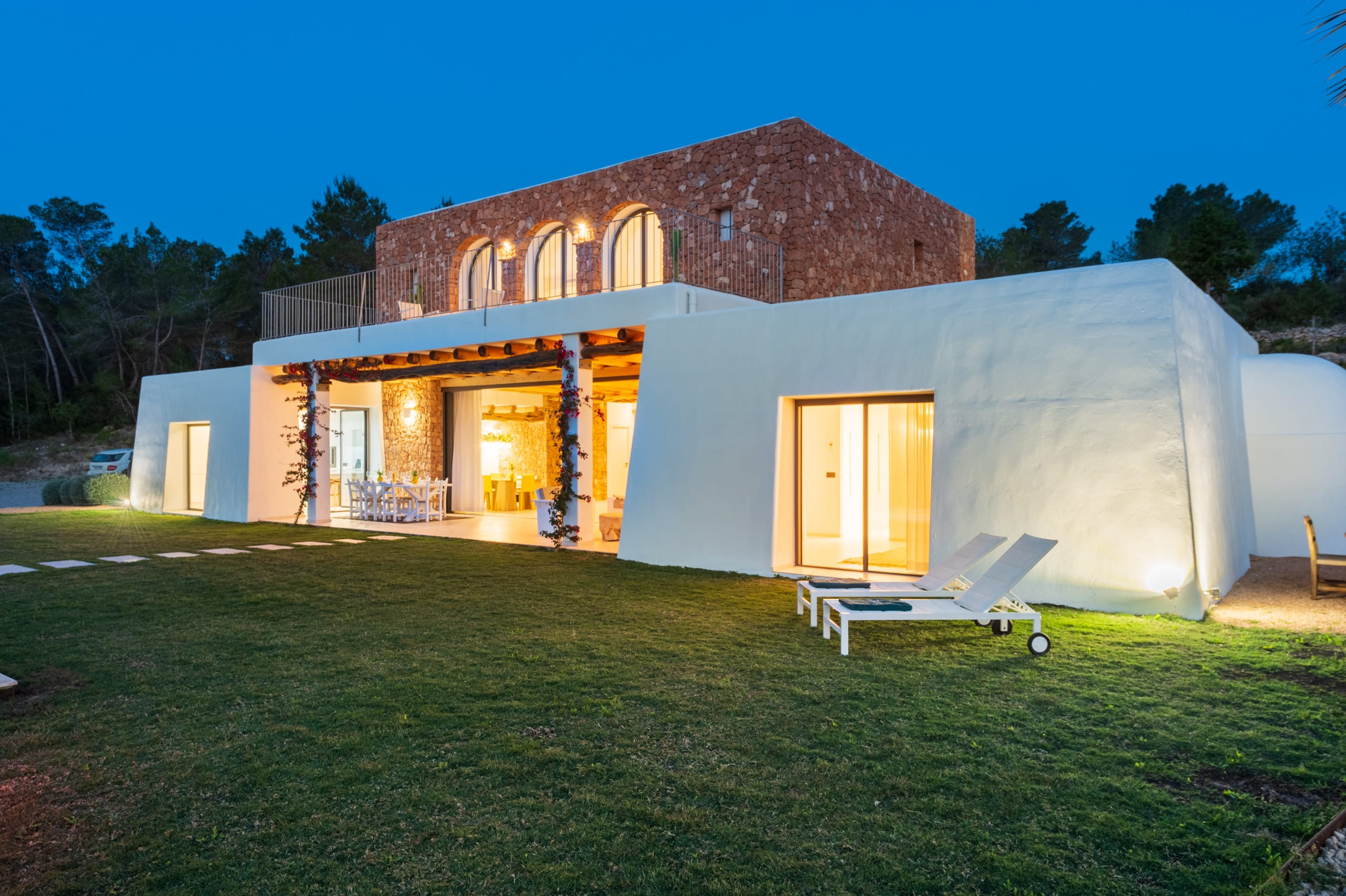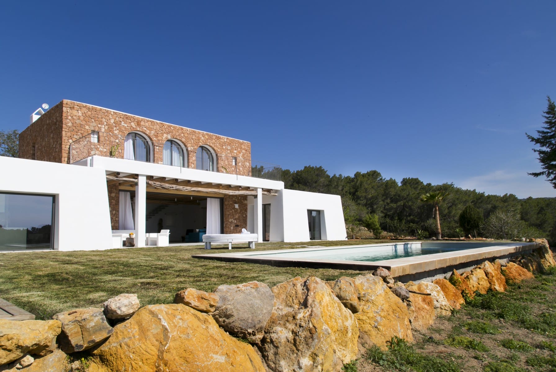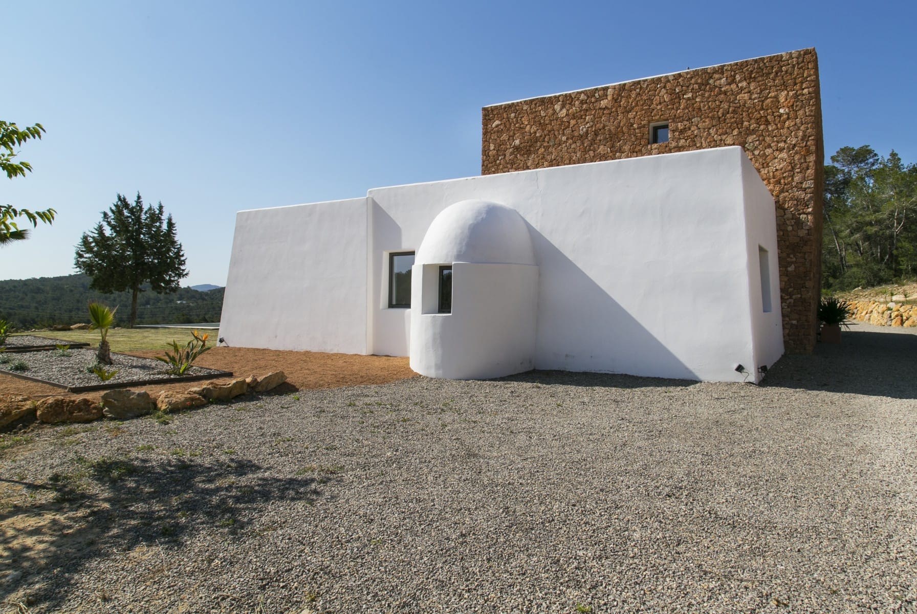 House of traditional architecture, recently built respecting the traditions of the typical Ibiza Finca. Rustic aesthetic outside but completely modern on the inside. Land of 39,000 m2 with country views. Excellent sunset.
