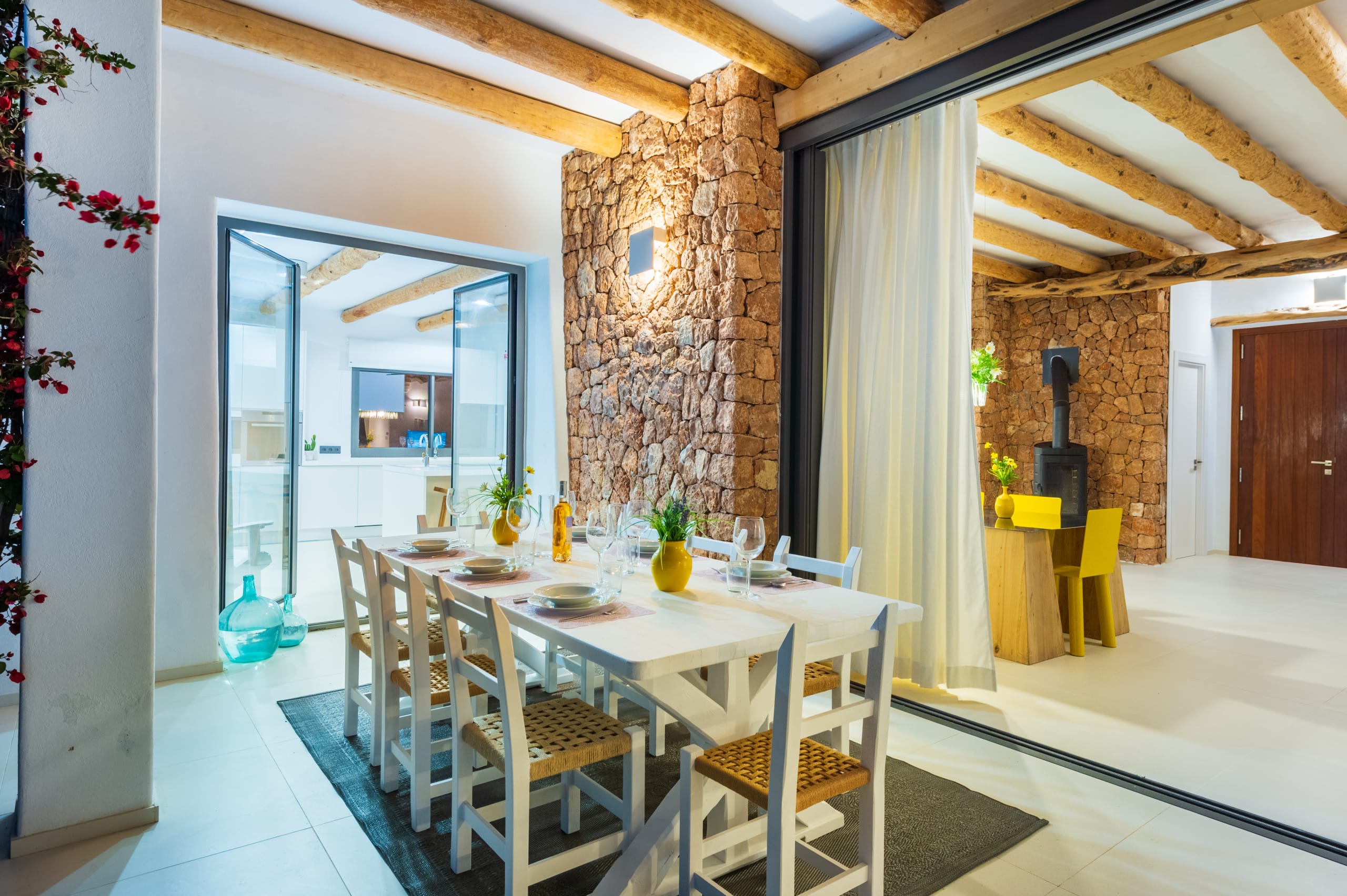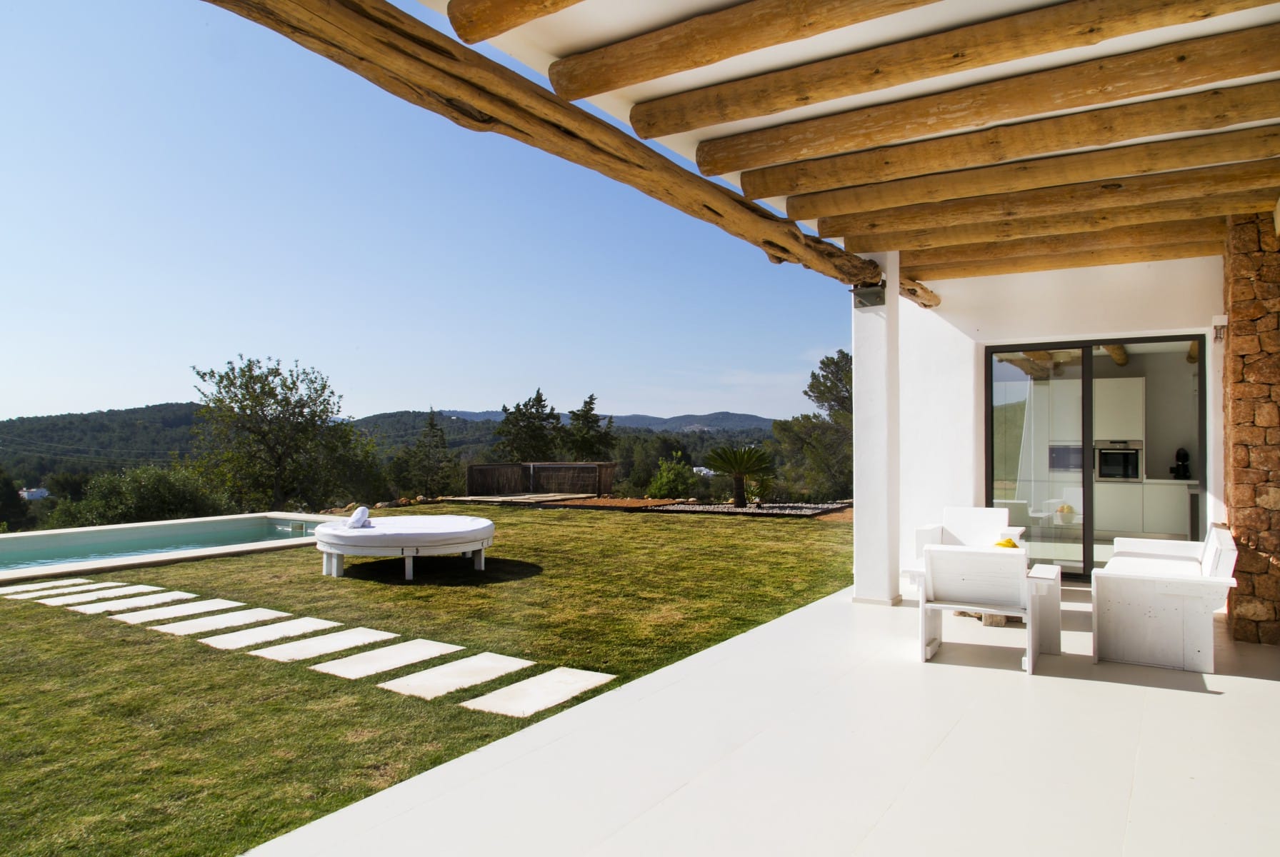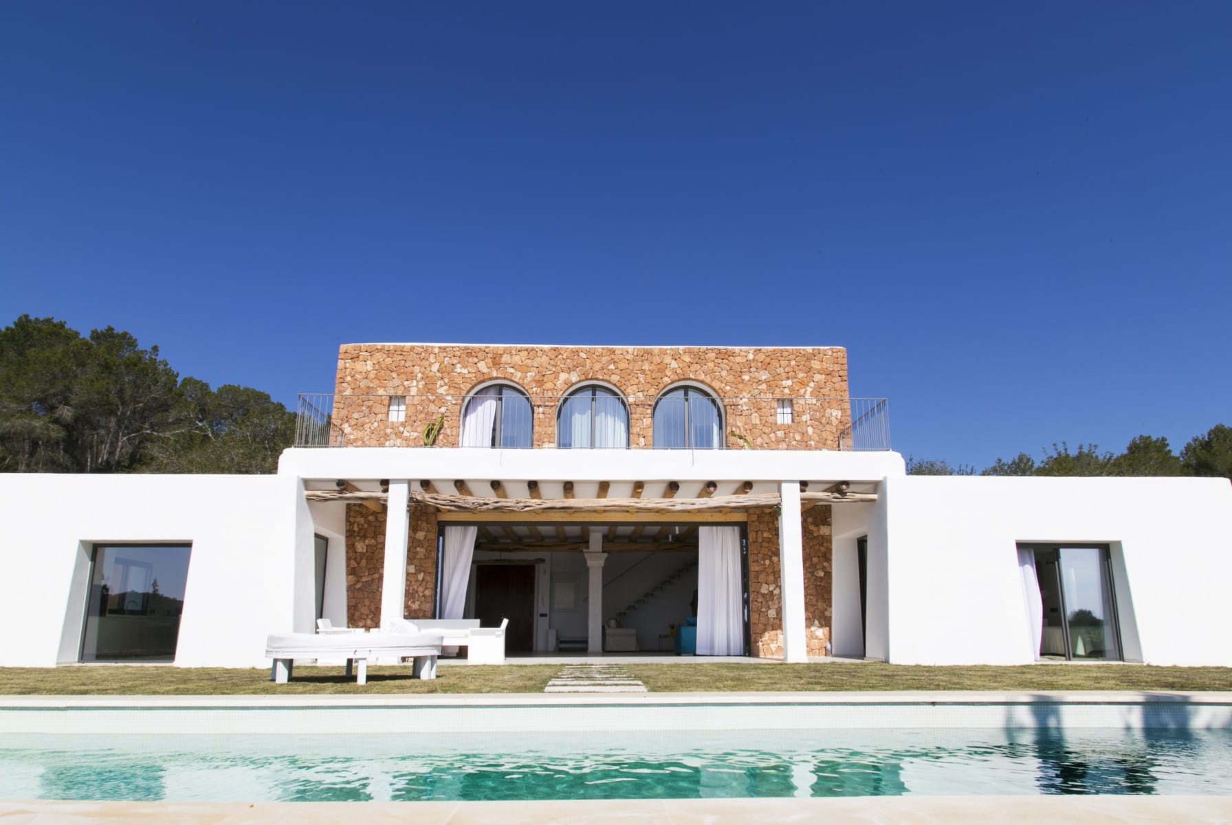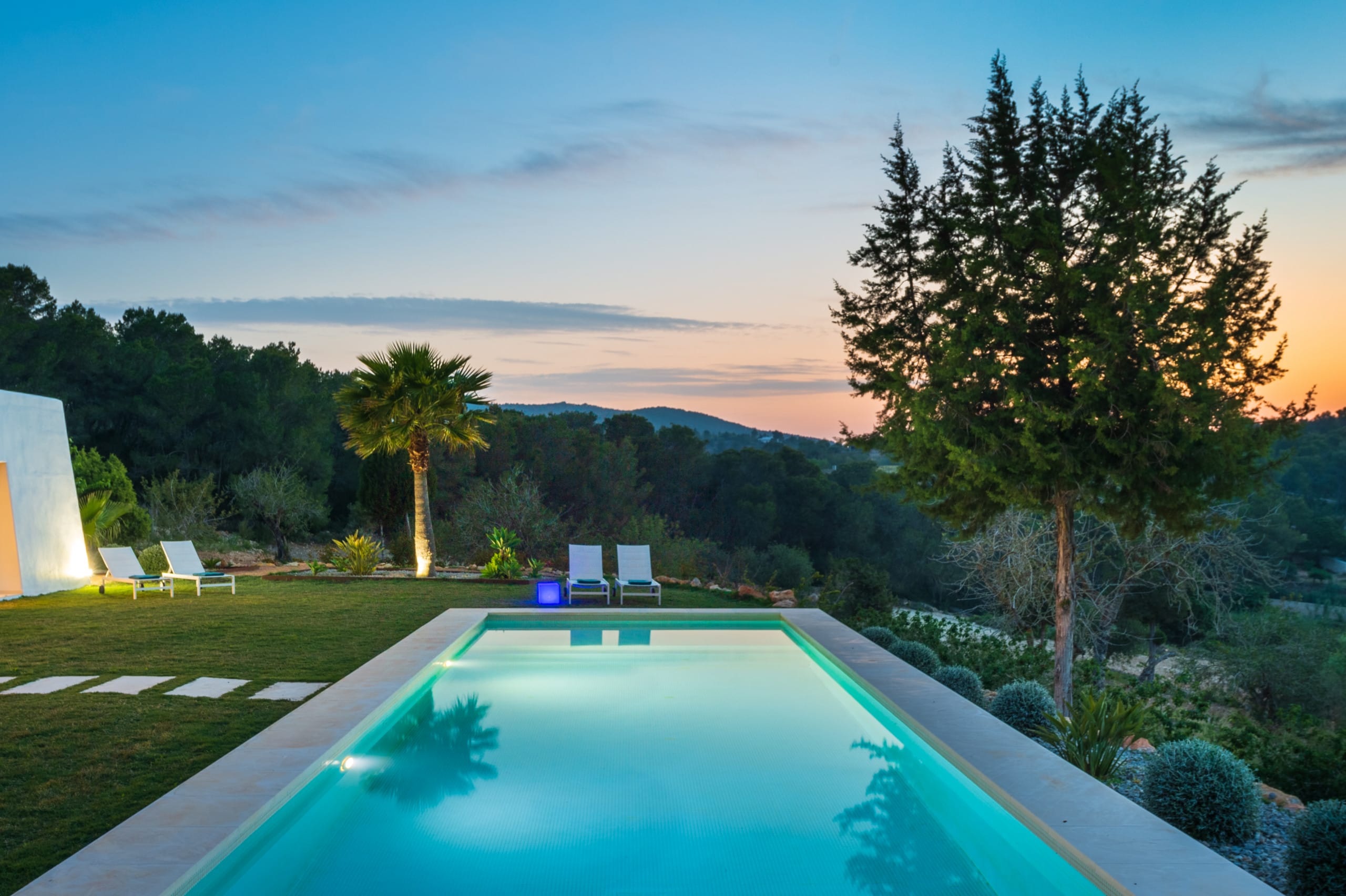 House of traditional architecture, recently built respecting the traditions of the typical Ibiza Finca. Rustic aesthetic outside but completely modern on the inside. Land of 39,000 m2 with country views. Excellent sunset.