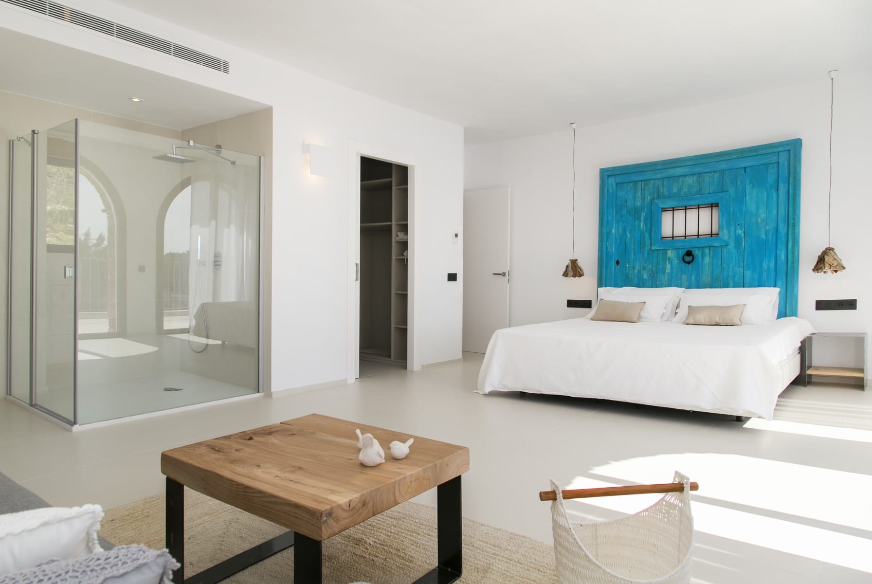 The master suite is a huge room with shower incorporated into the bedroom area.