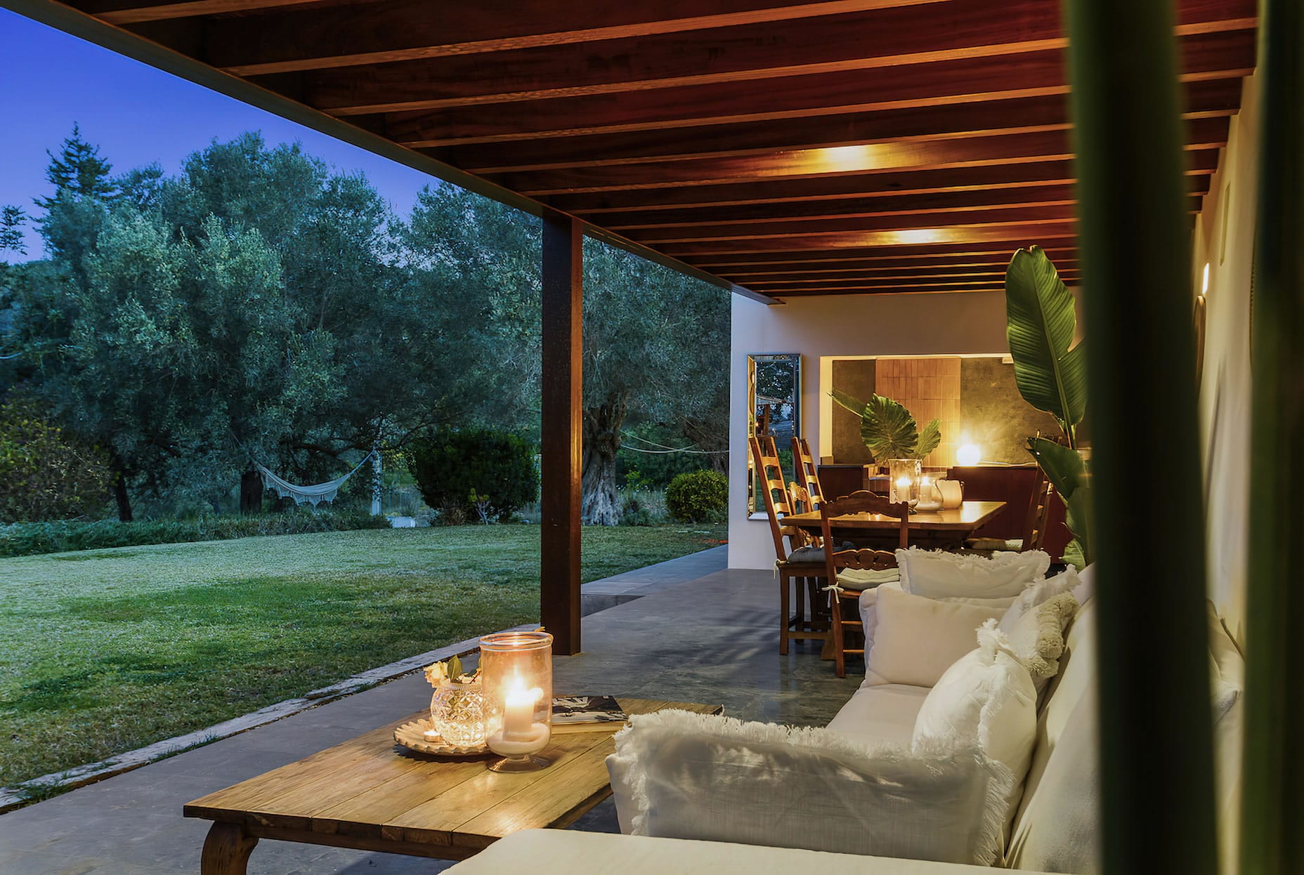 Outdoor dining area with seating for 18 persons.
