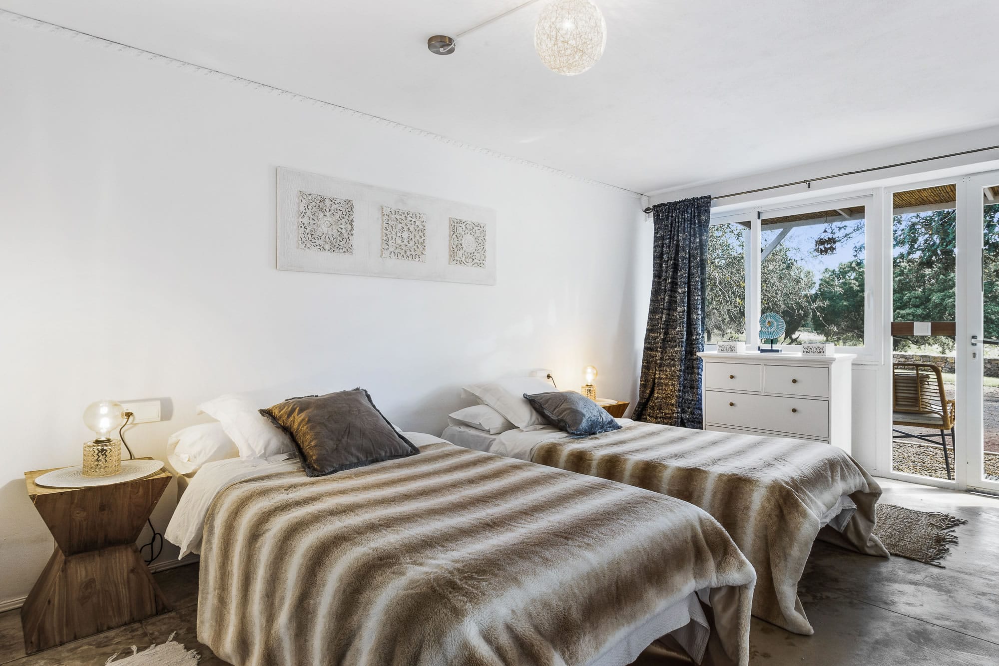 Small annex with two rooms: one with two single beds and a bathroom with a shower; the other with a double bed (160cmx190cm) and a bathroom with a shower.