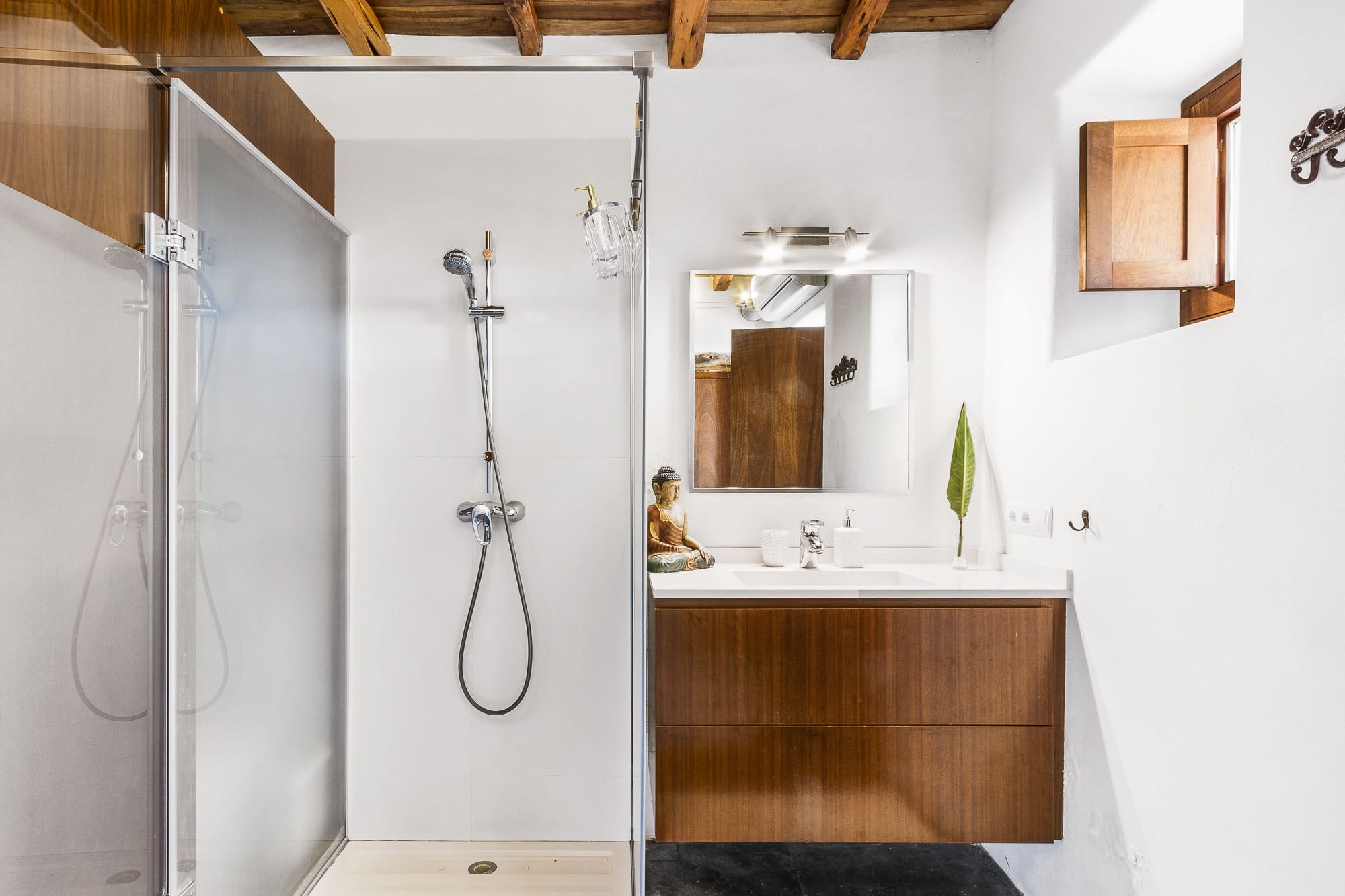 Sauna equipped with an outdoor shower.