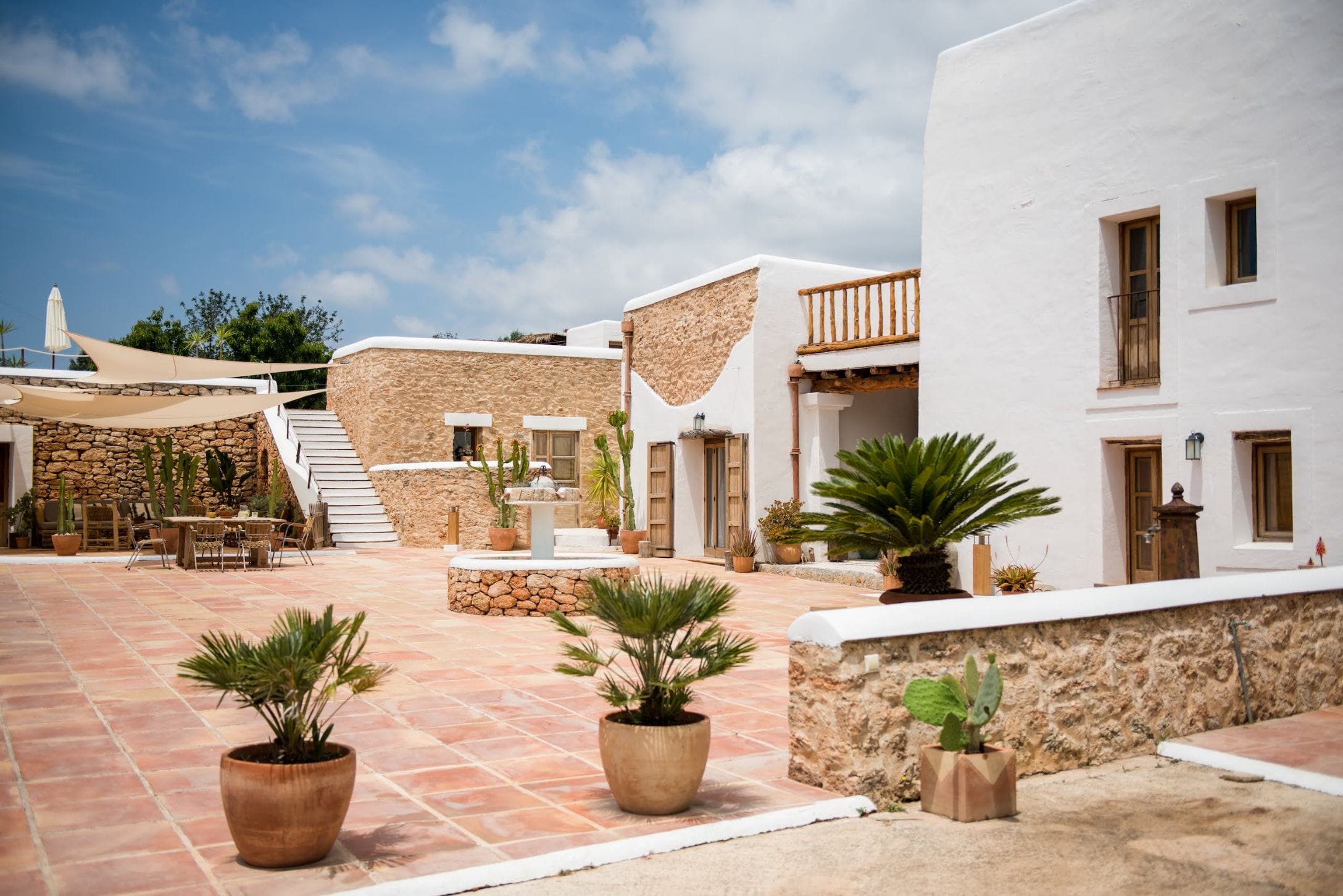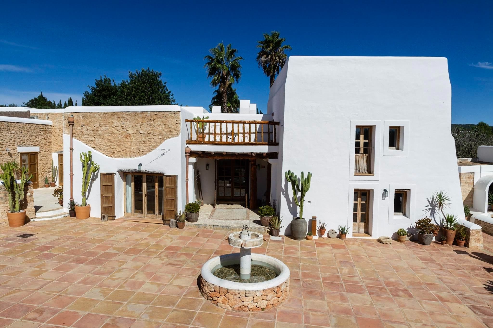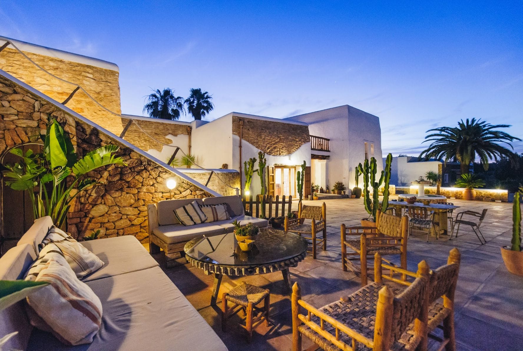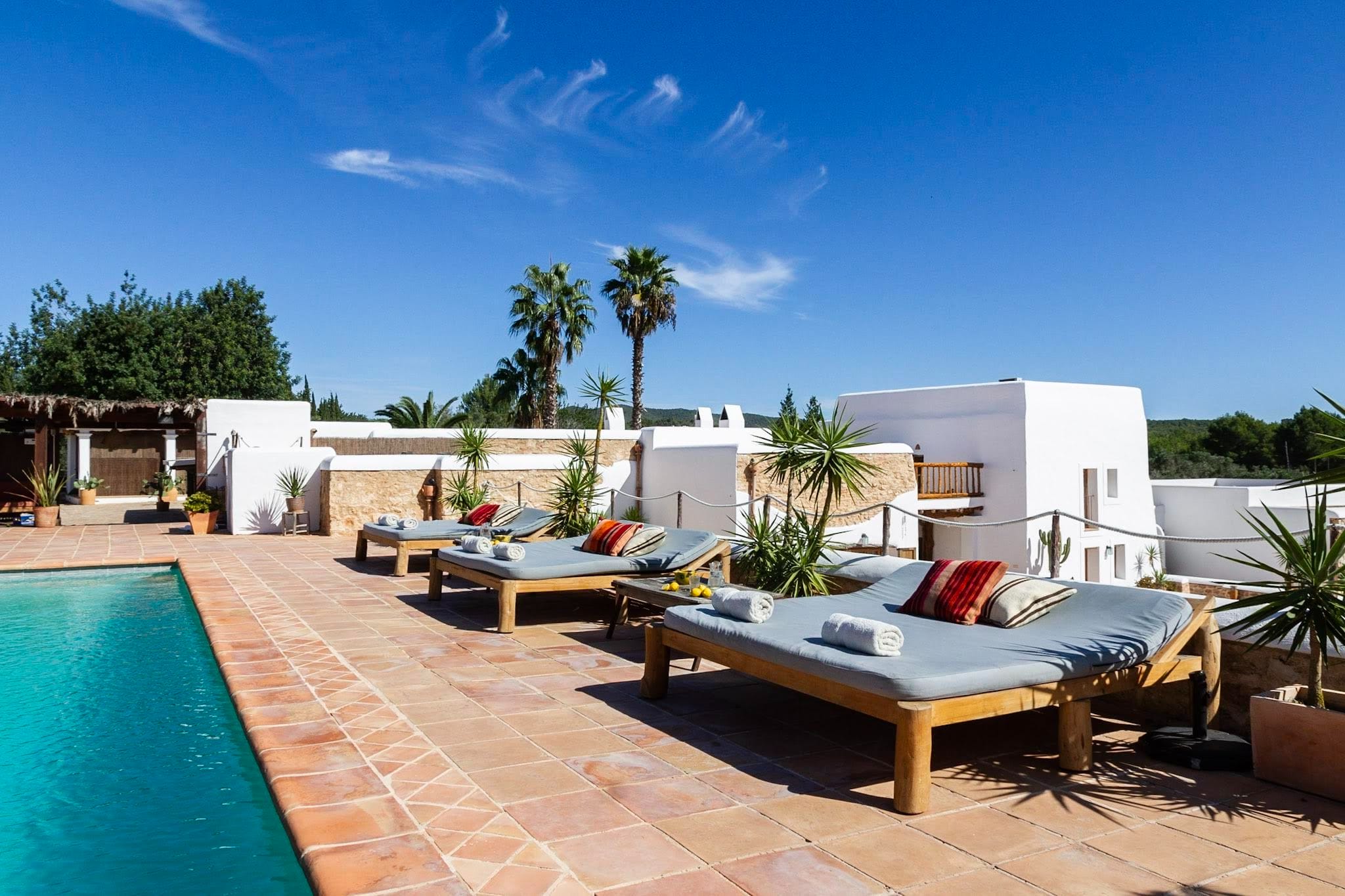 The elegantly restored luxury farmhouse is in the middle of the island, near the village of Santa Gertrudis, which is full of lively bars, cafes, and great restaurants.