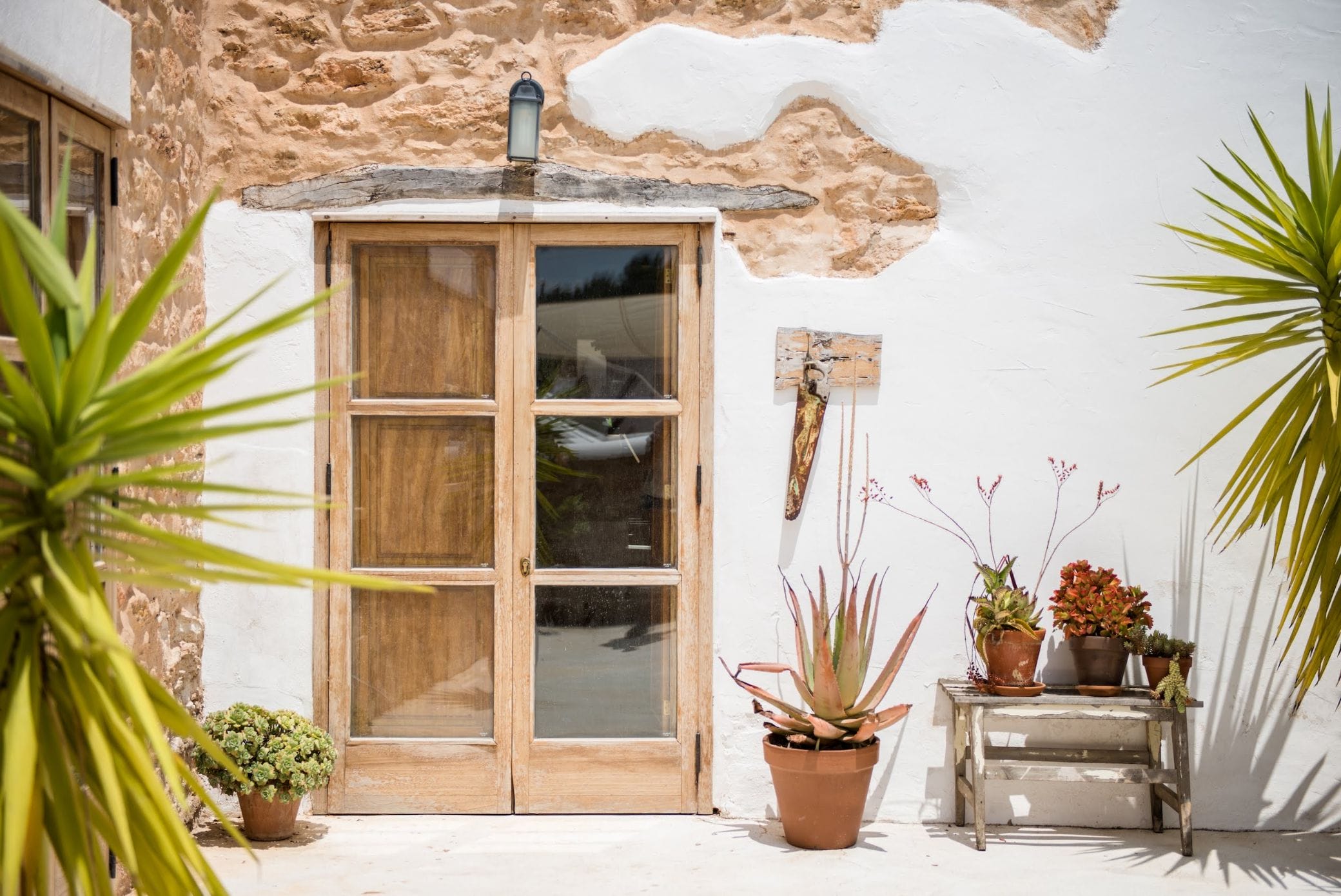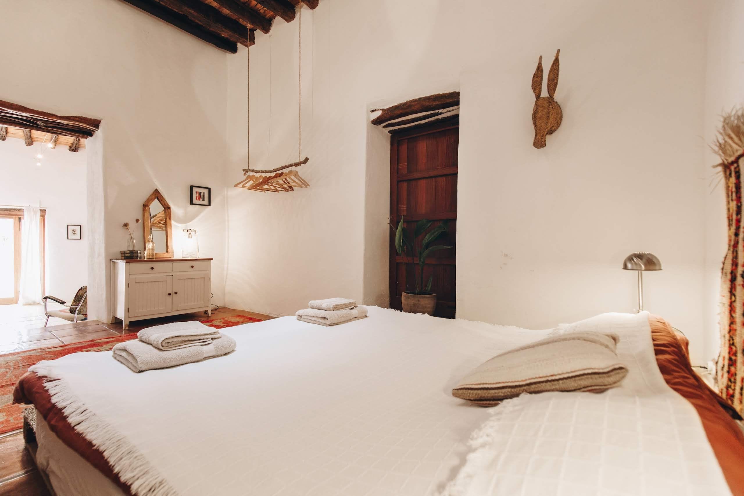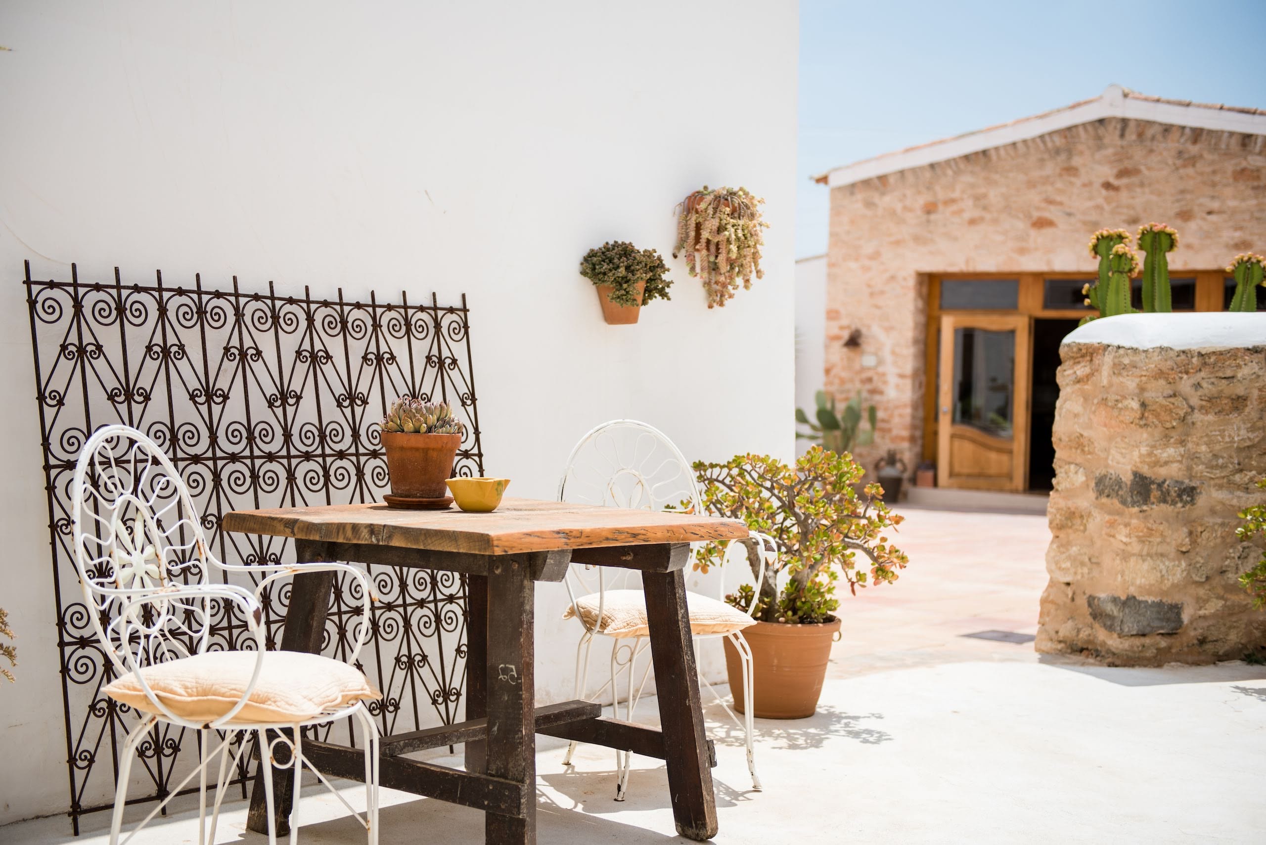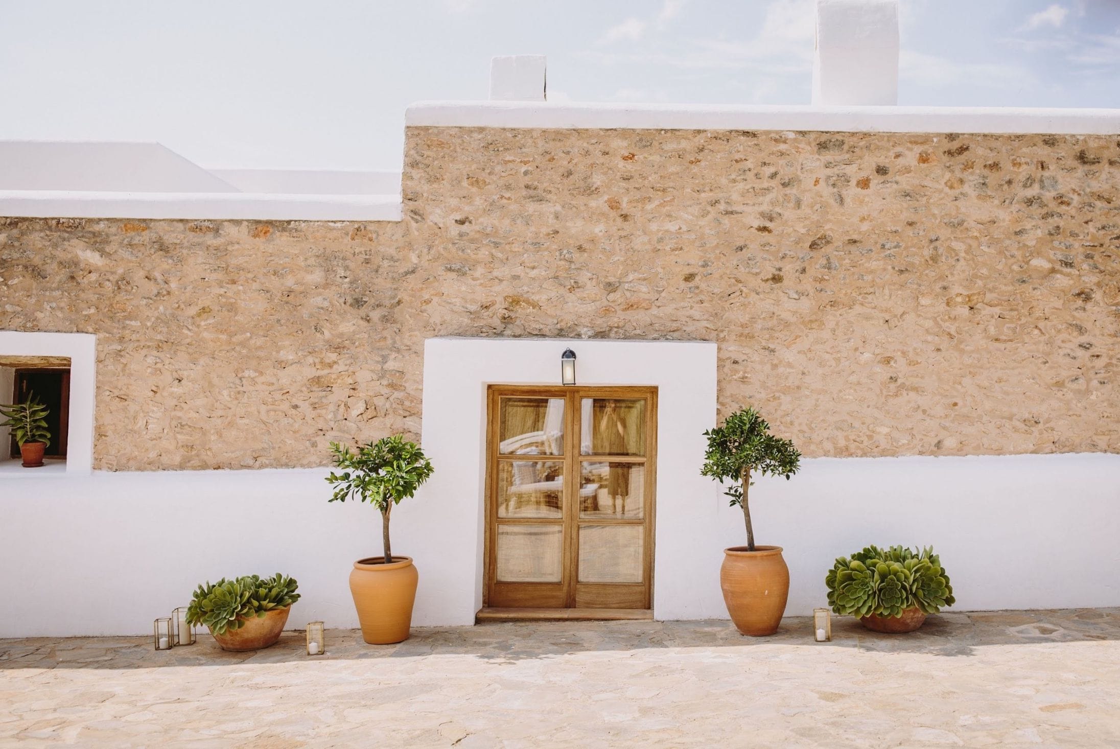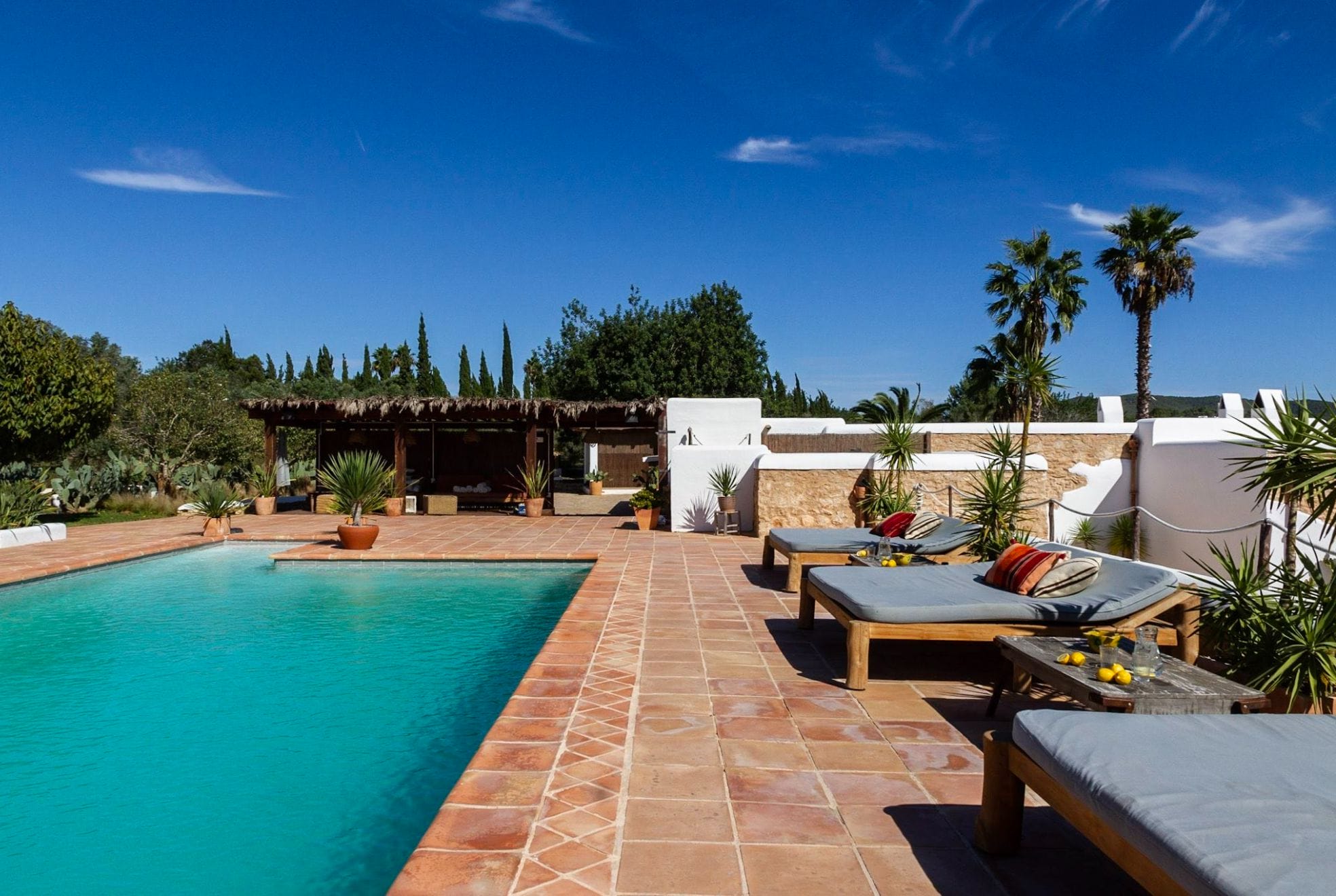 The elegantly restored luxury farmhouse is in the middle of the island, near the village of Santa Gertrudis, which is full of lively bars, cafes, and great restaurants.