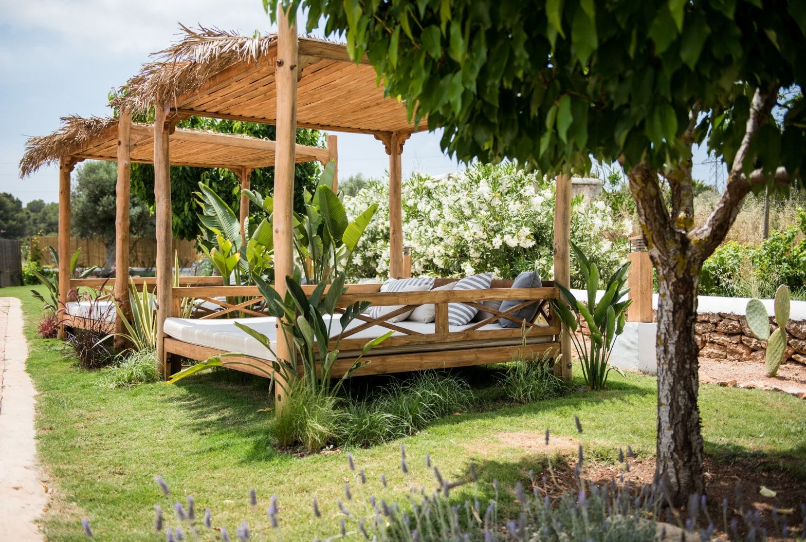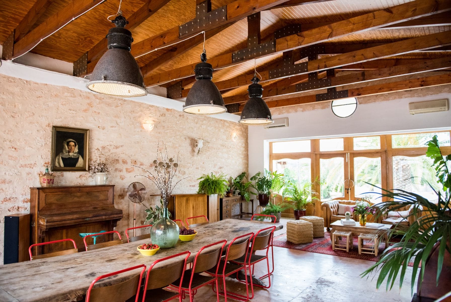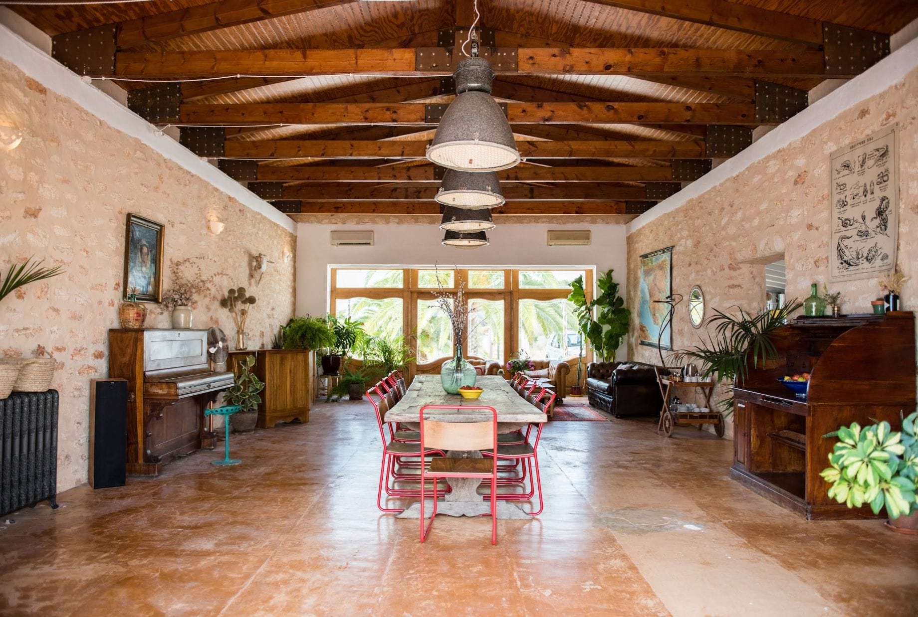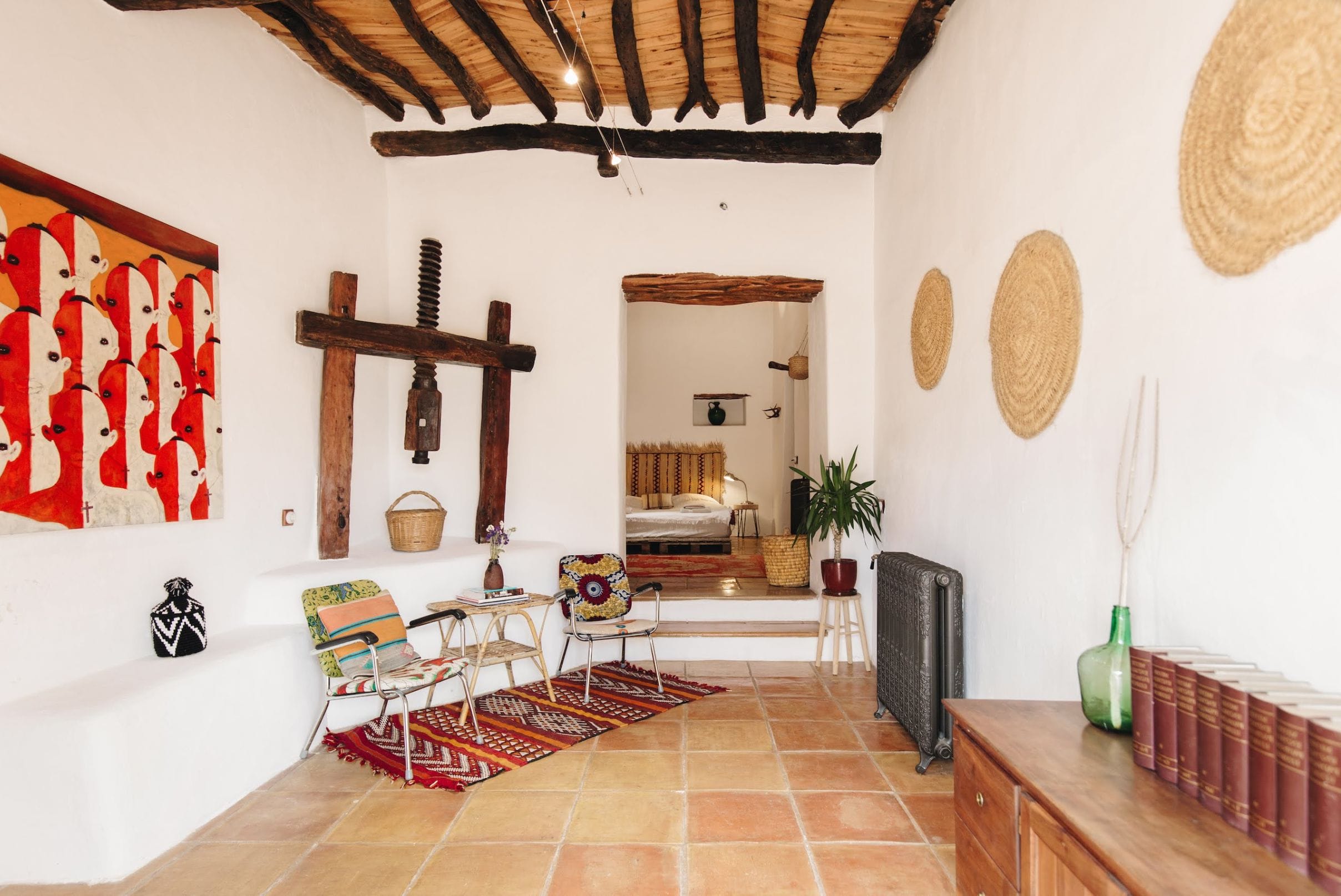 The elegantly restored luxury farmhouse is in the middle of the island, near the village of Santa Gertrudis, which is full of lively bars, cafes, and great restaurants.