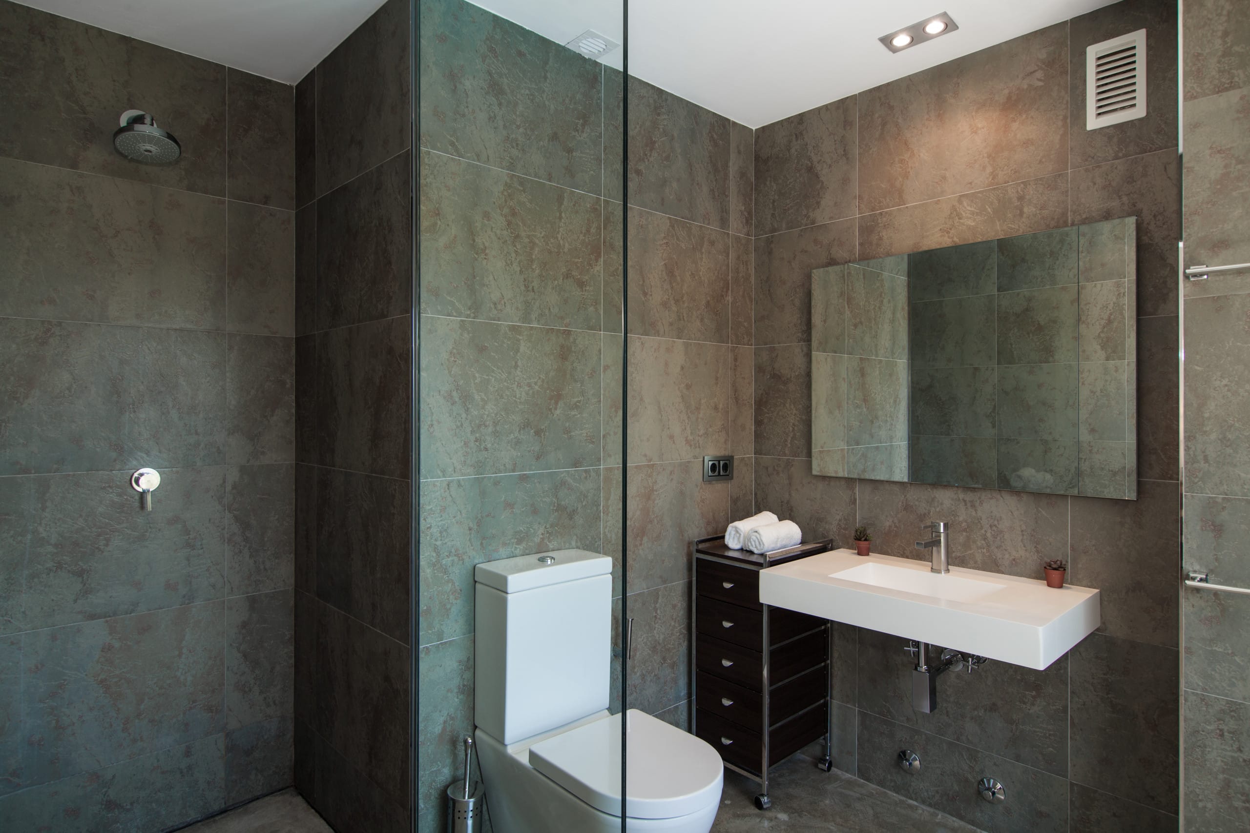 Room 2 (KING) has a private terrace and a slate bathroom. It also comes with a TV.