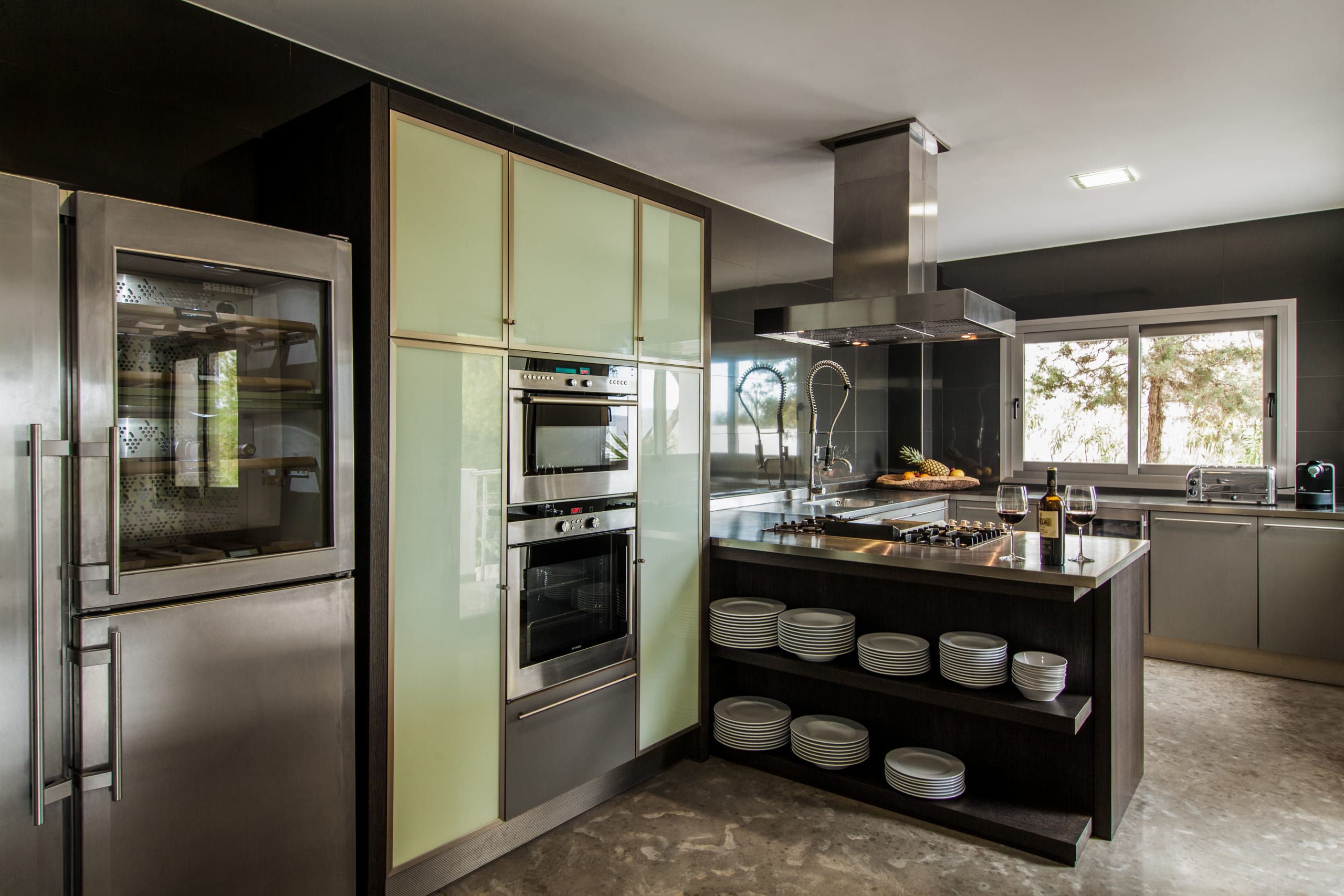 It has a stainless steel kitchen with high-quality appliances that are used in restaurants and other businesses.