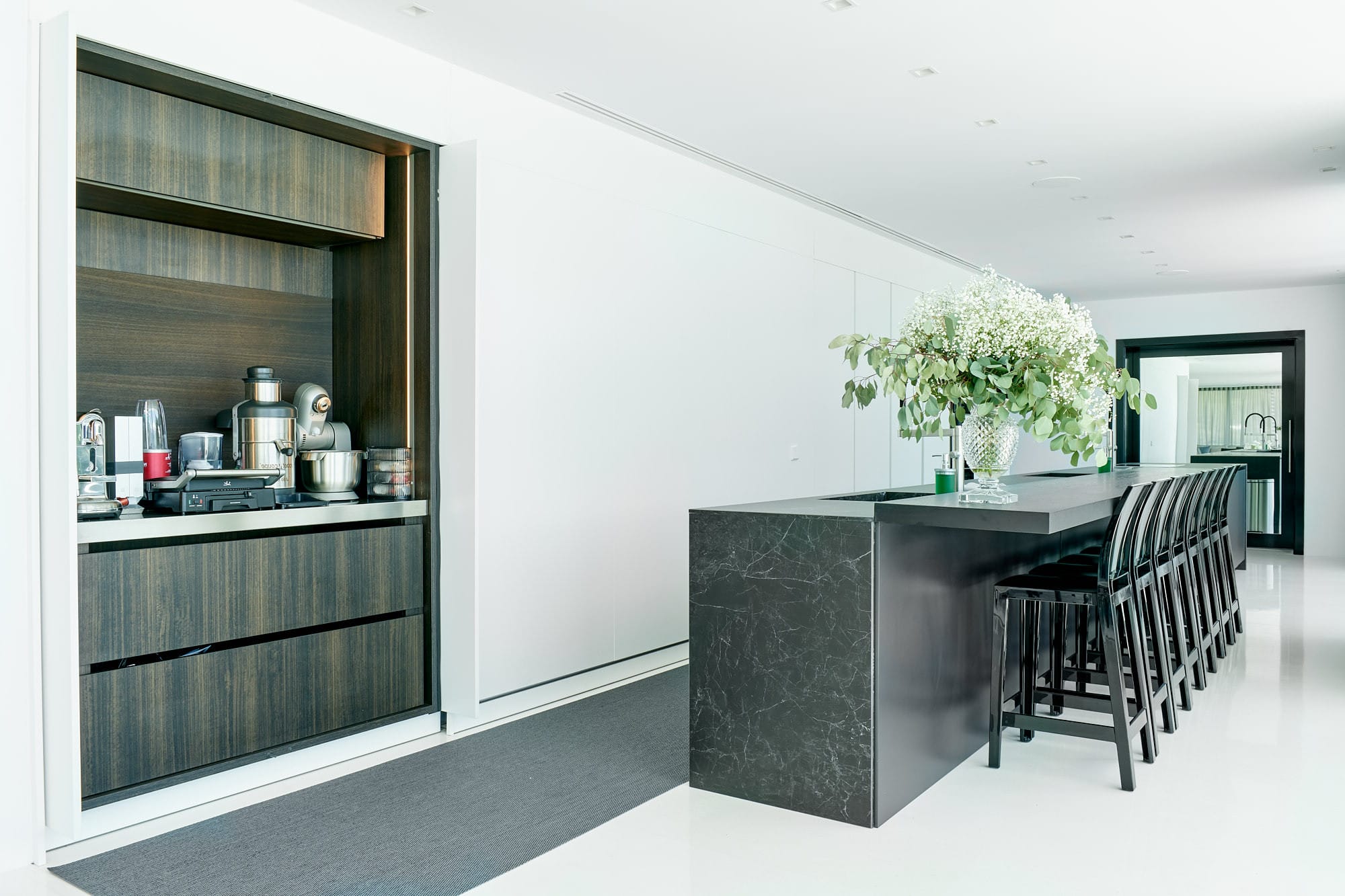 This 850-square-meter property is tucked away among pine trees and aromatic gardens and features seven bedrooms that open onto expansive outside terraces and gardens. On level -1, there is a master suite and three more suites.