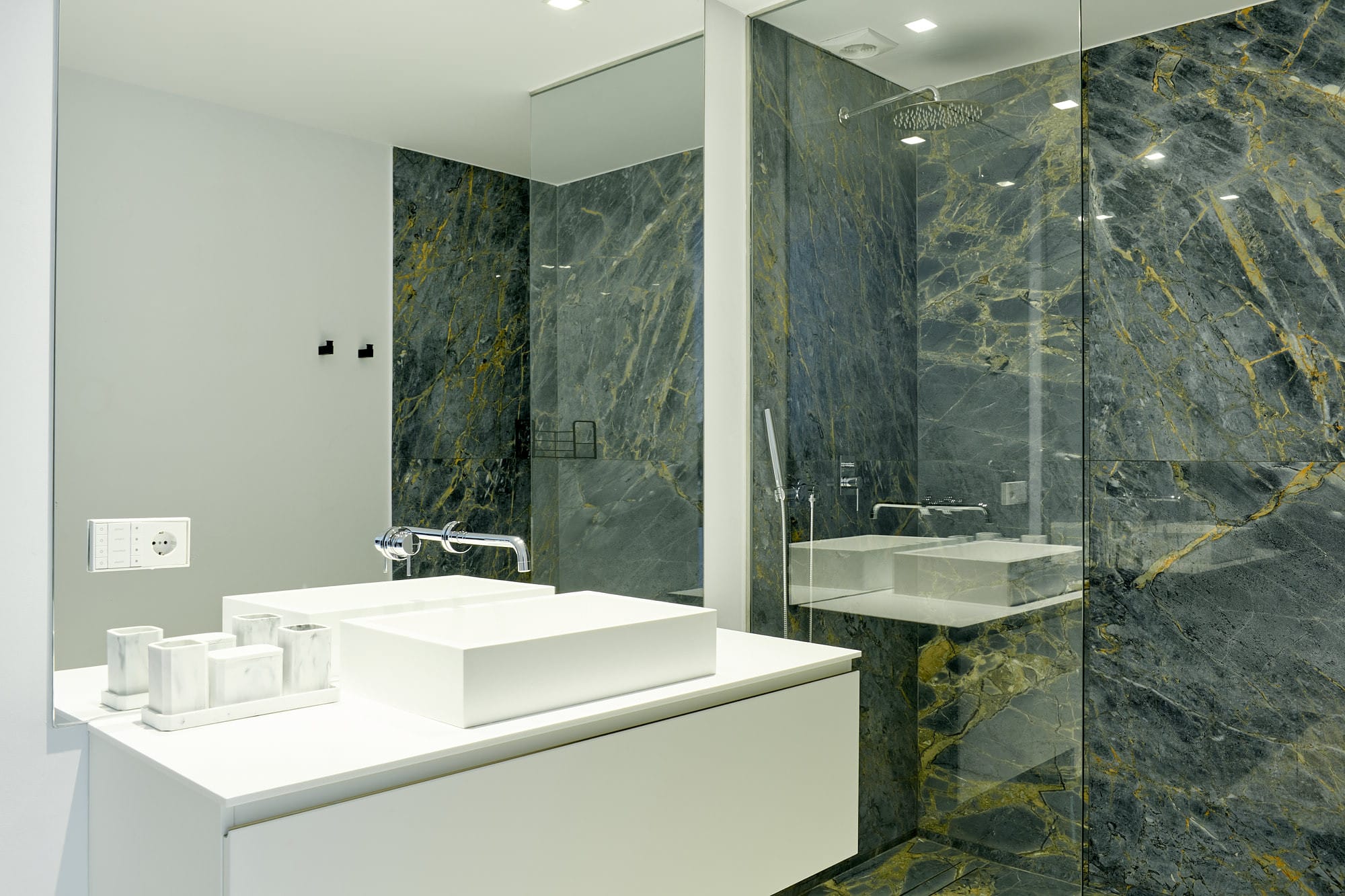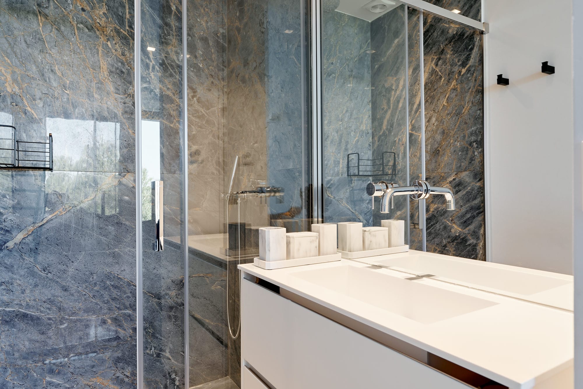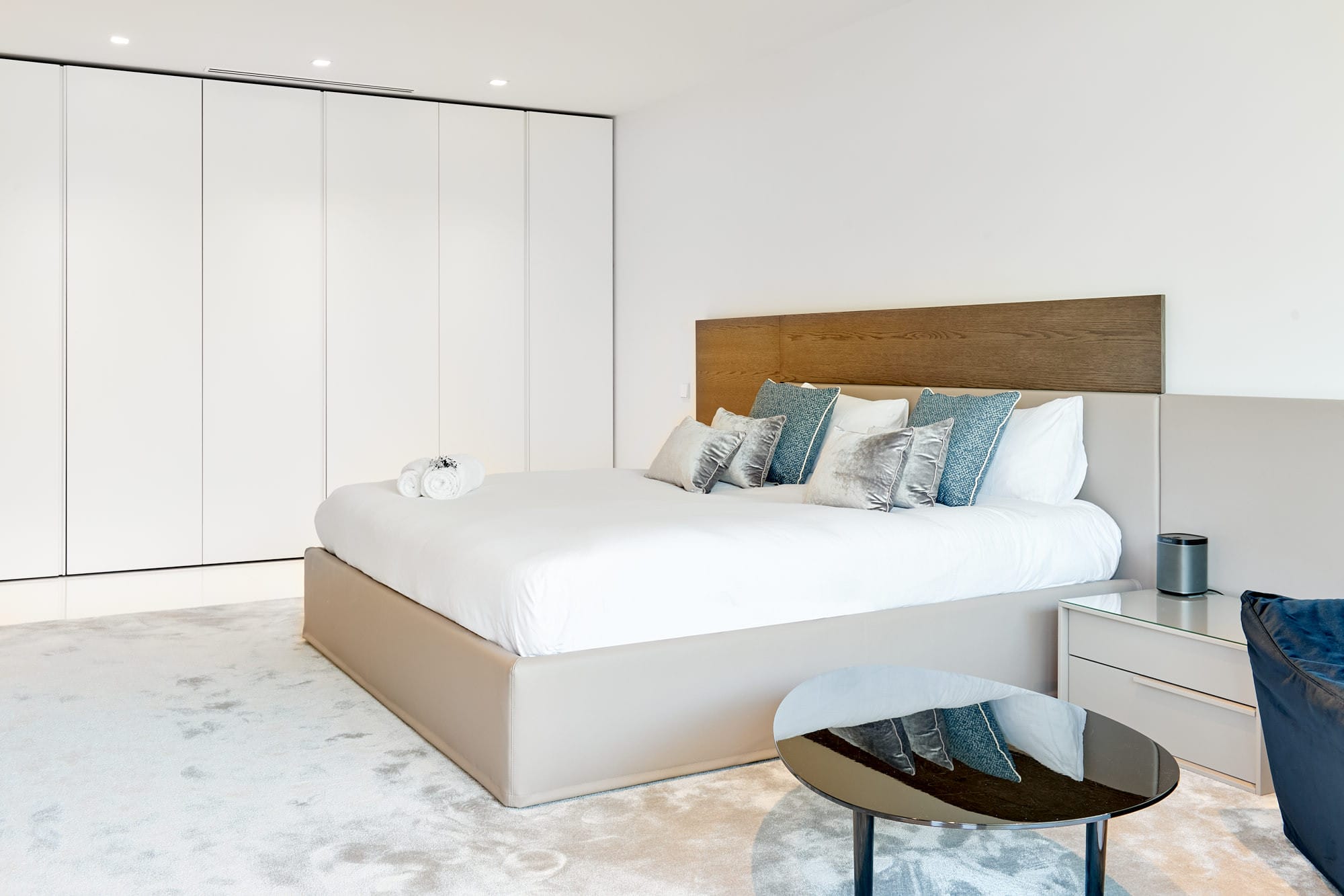 Two bedrooms, each with a 180×2 bed, each with an en-suite shower bathroom.