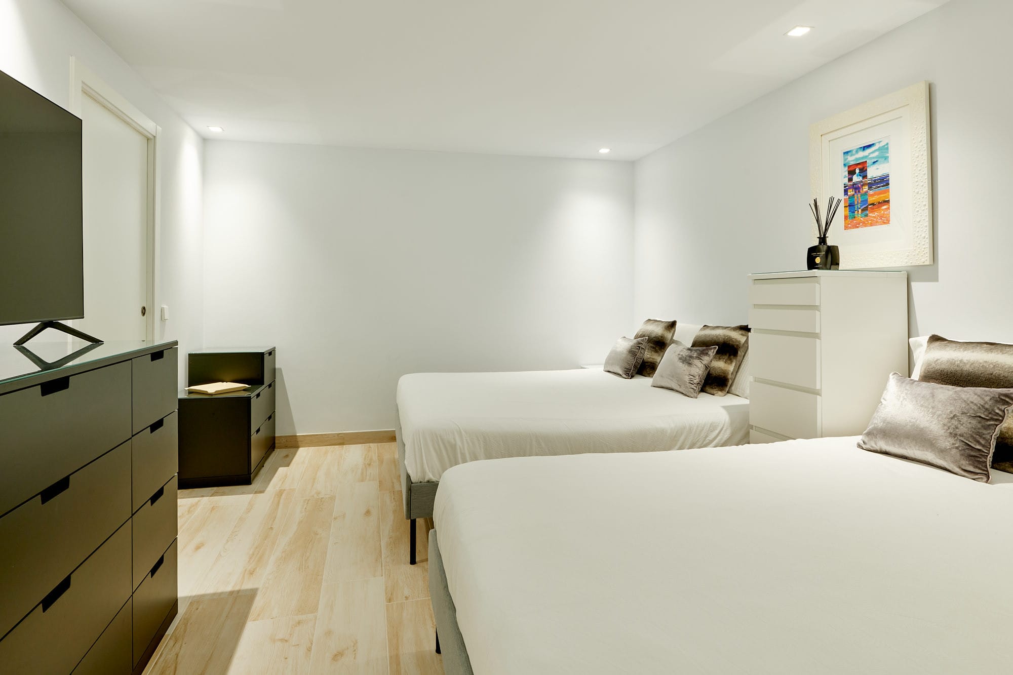1 bedroom for additional service, with two 160×2 beds. En suite bathroom with shower.