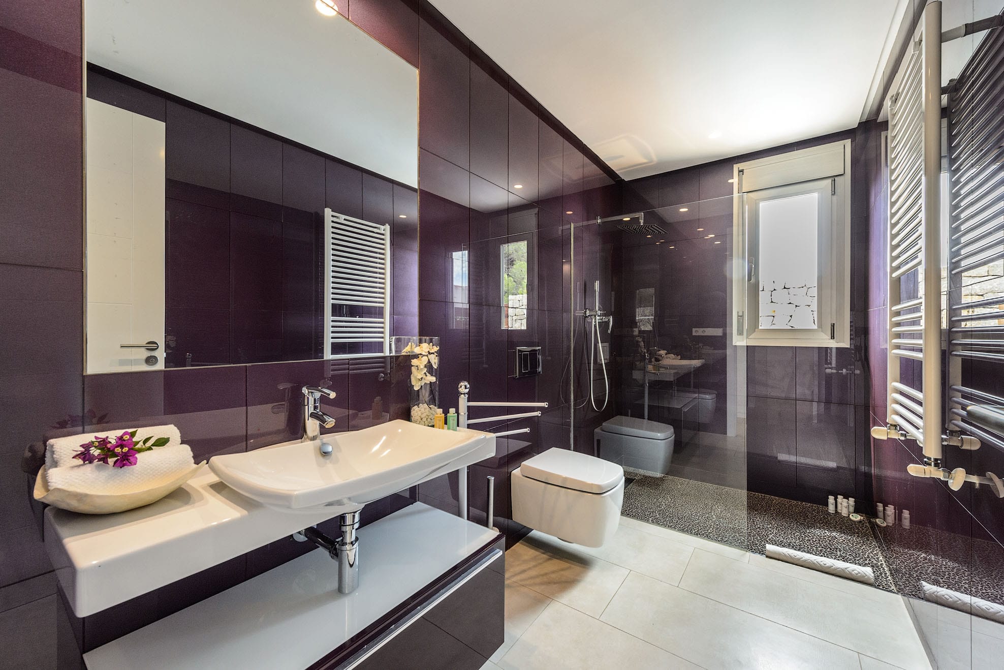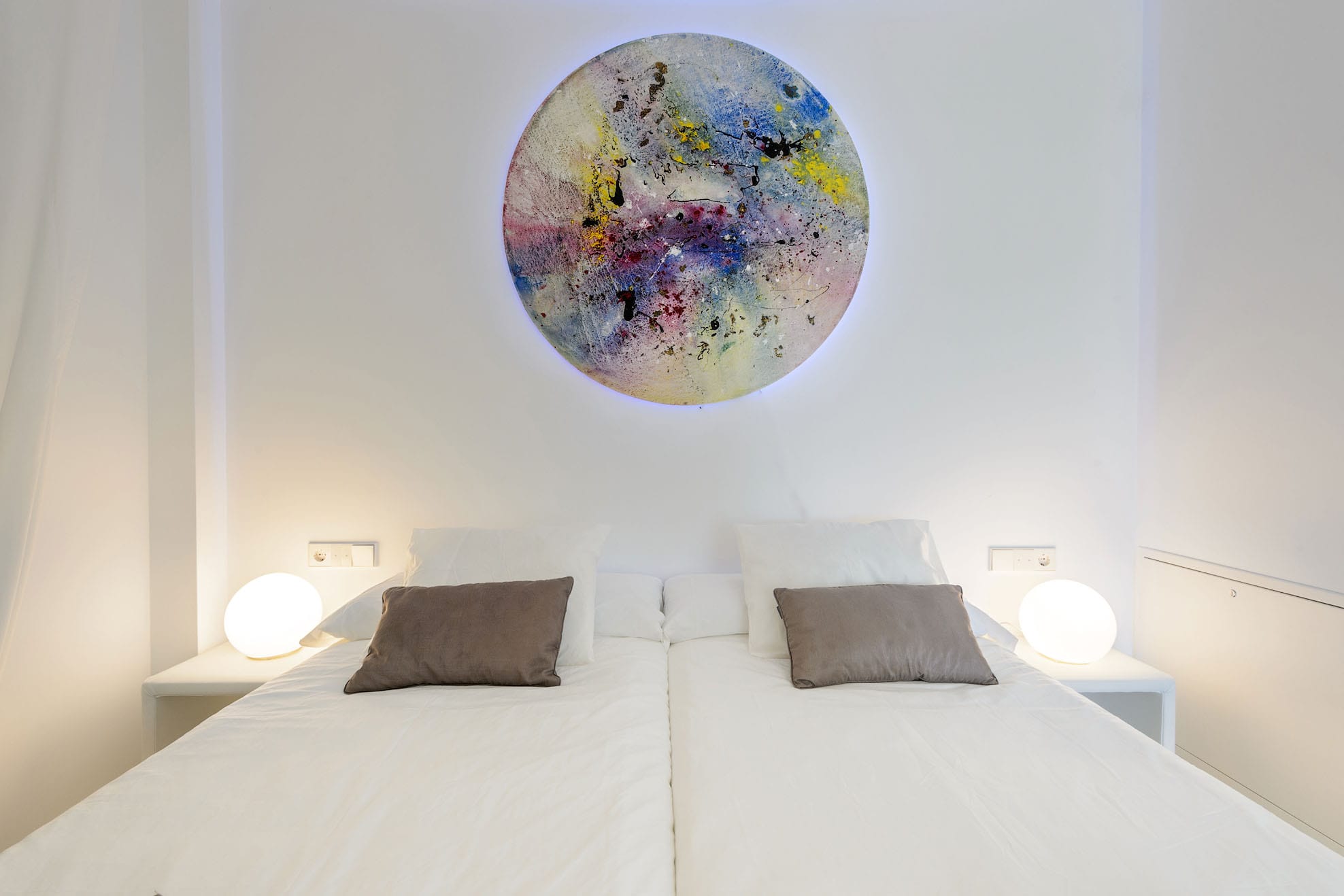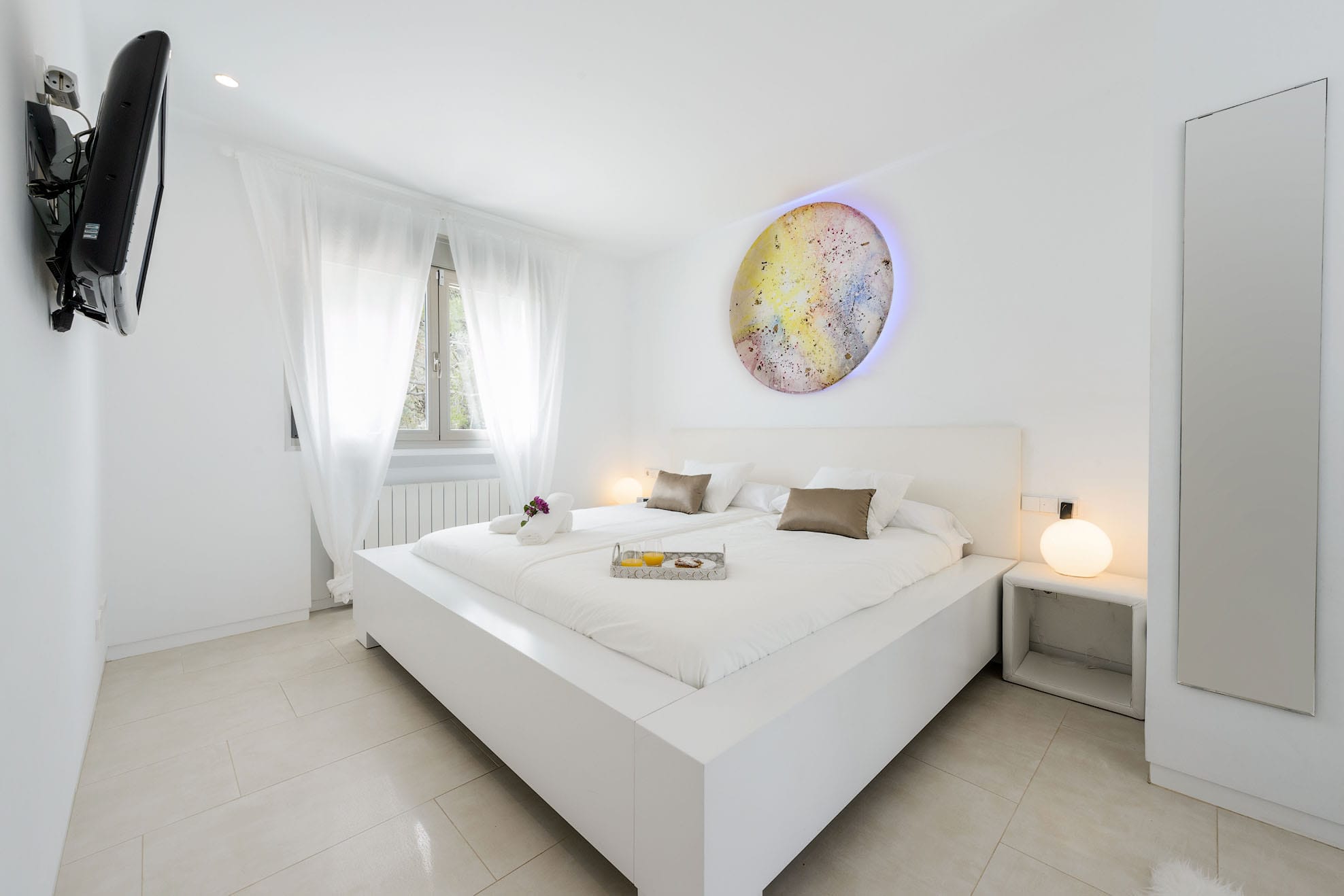 Two single beds that can be turned into a double bed, wardrobes, and a door that leads to the terrace where you can chill out. -Bathroom with double sink and bathtub. A double bed can be made out of two single beds. Wardrobe. A 2x2m bed, en-suite bathroom and TV in the bedroom.