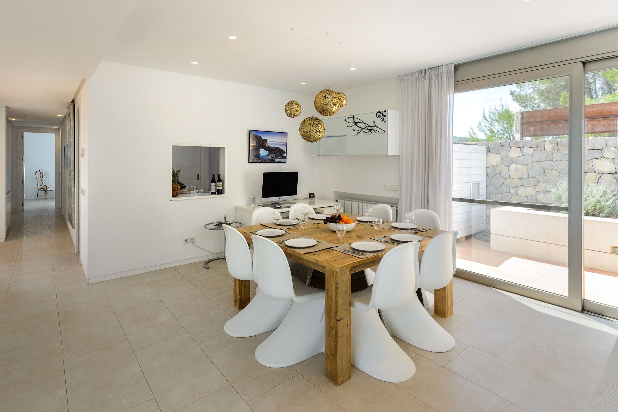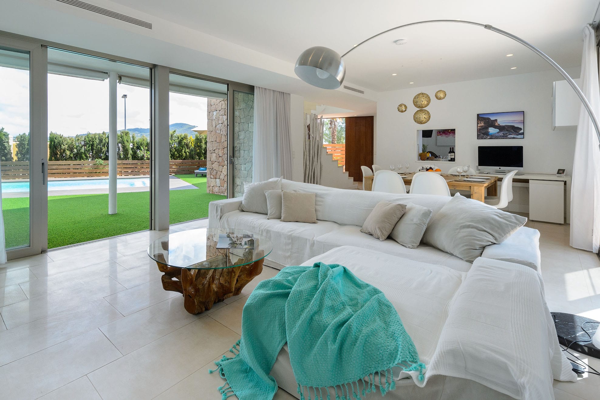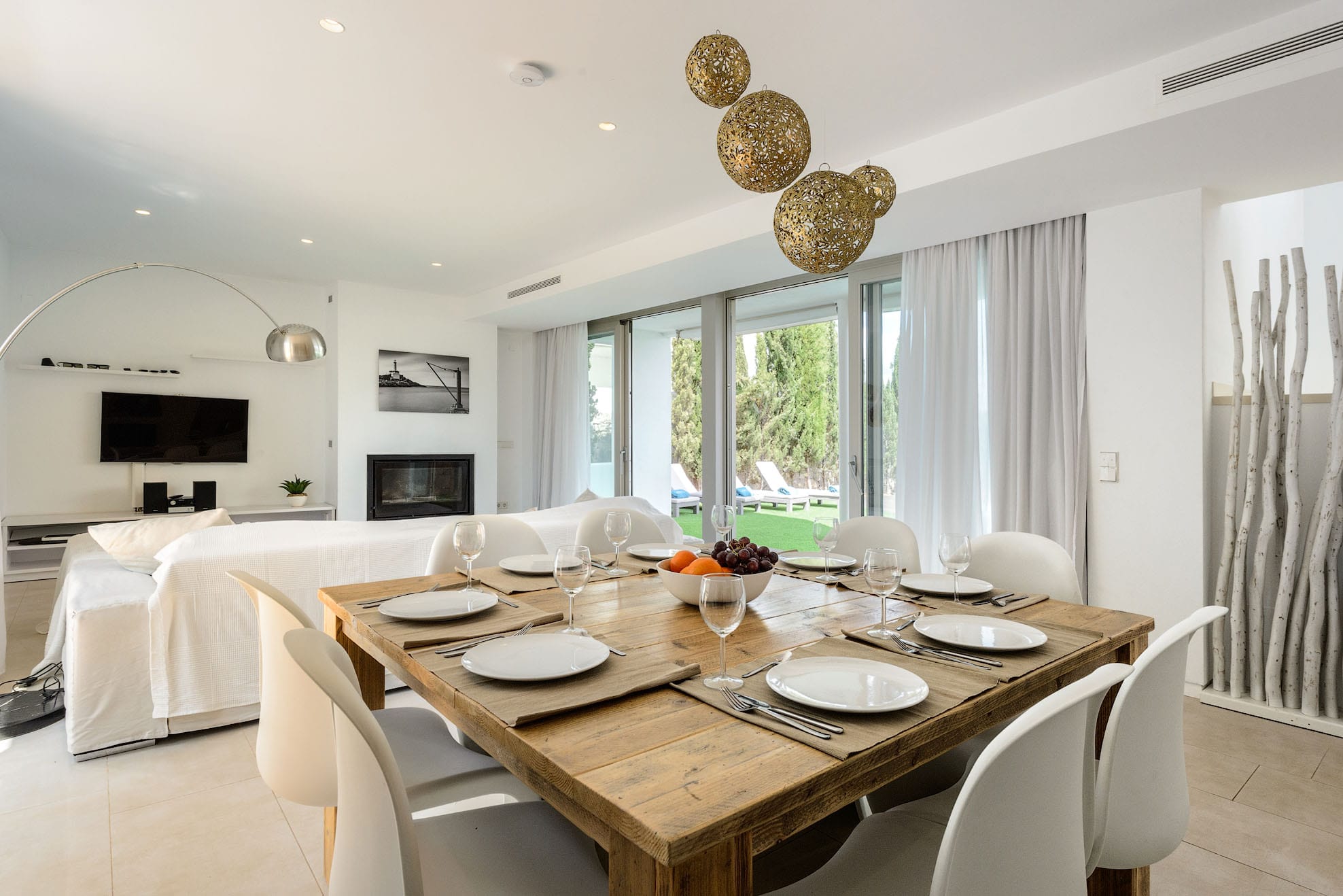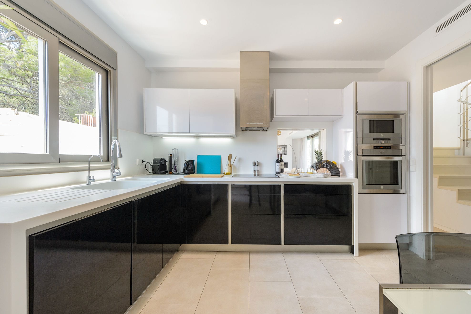 Villa of new construction with 320m2 of space on a plot of 800m2. It has a minimalist interior design and is 3 km from Ibiza and 8 km from the beautiful beaches of Las Salinas and Es Cavallet. It is also close to the most popular discos. Families with kids will love this. A beautiful pine forest is behind the house.