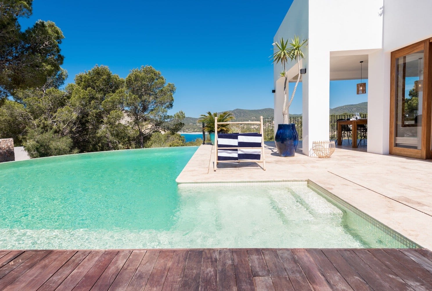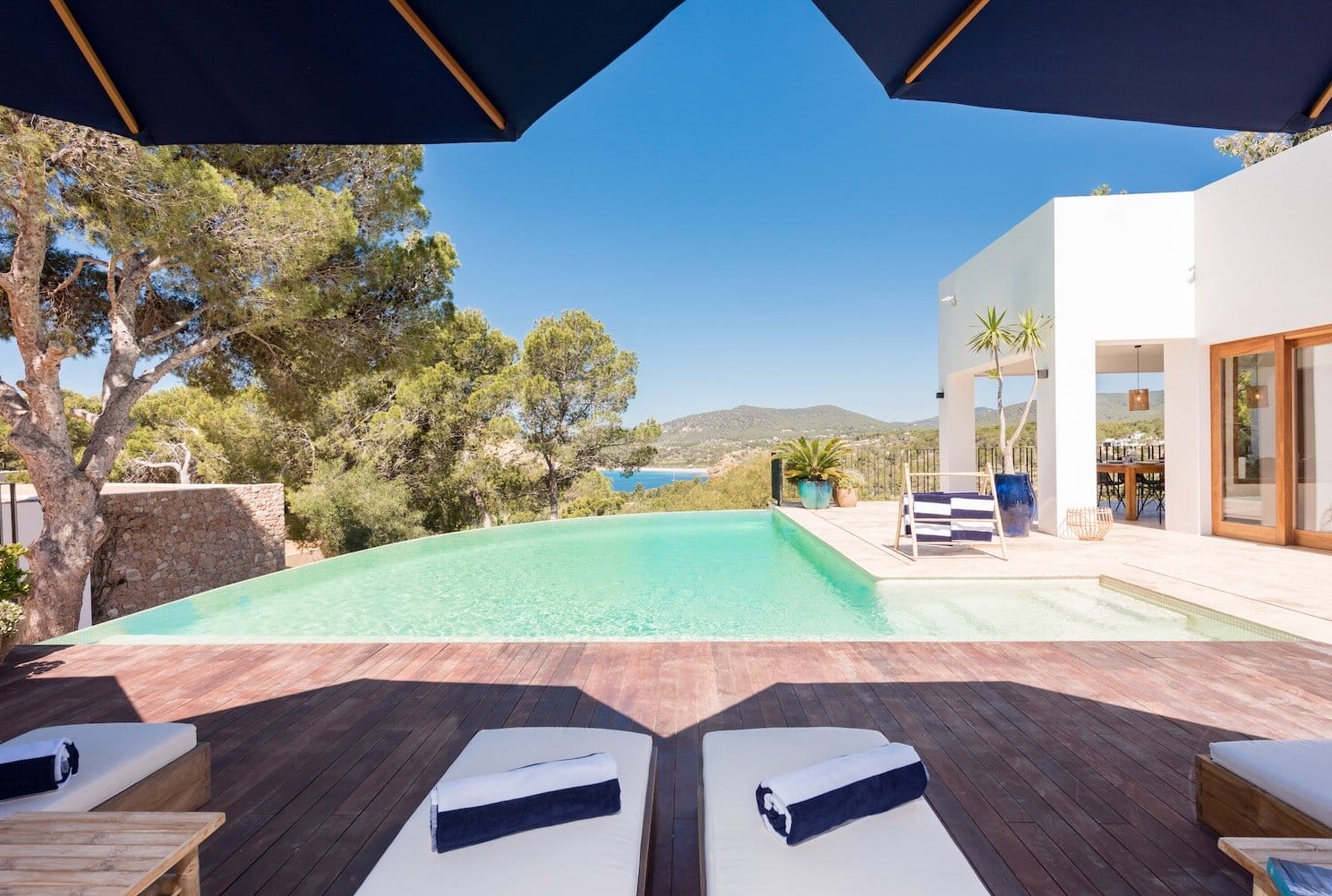 Modern luxury villa with sensational sea views on the peninsular of Porroig – one of the most exclusive areas of Ibiza. Located in the so called Golden Triangle, you are close to the equally charming villages of Es Cubells and San Jose, and just a short distance from the bay of Cala Jondal, home to the world famous Blue Marlin beachclub. And of course, the dazzling lights of Ibiza Town and Marina Botafoch, home to the islands most glamourous nightlife and dining destinations.