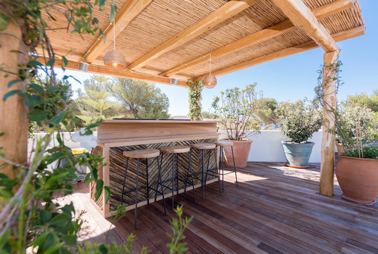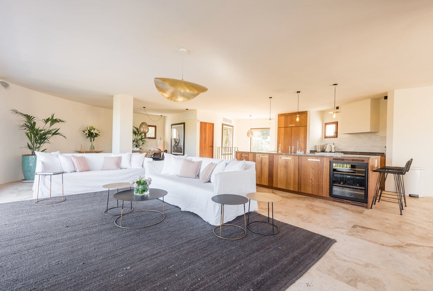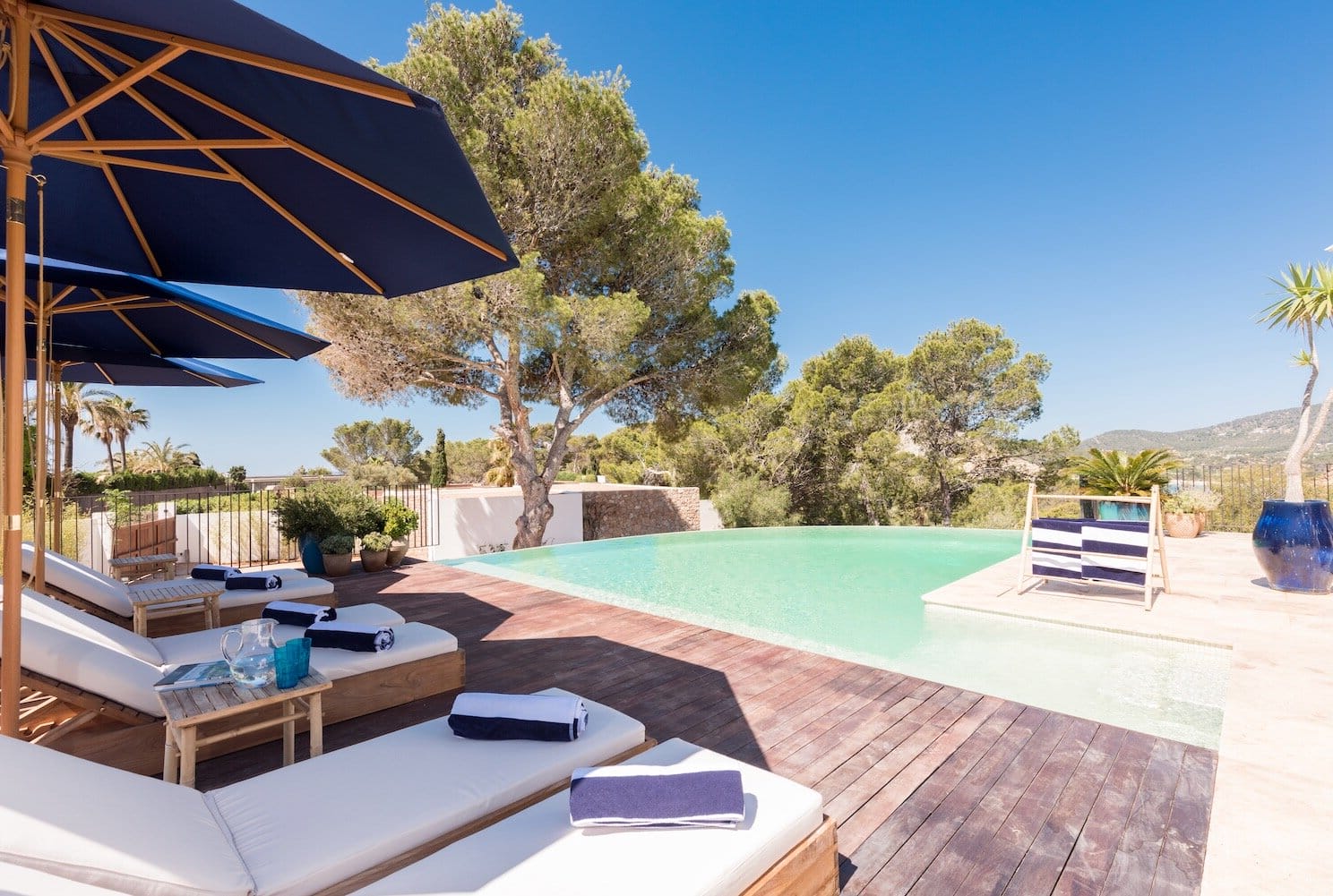Features a fabulous roof terrace where you can spend long lazy evenings under the stars admiring the truly sensational views with eh luxury of your own private bar and chillout area. The heated infinity pool is supremely inviting and the perfect place to relax and reflect, surrounded by sundecks and shaded areas. Entertain friends and family in this elegant home and enjoy the perfect Ibizan experience.