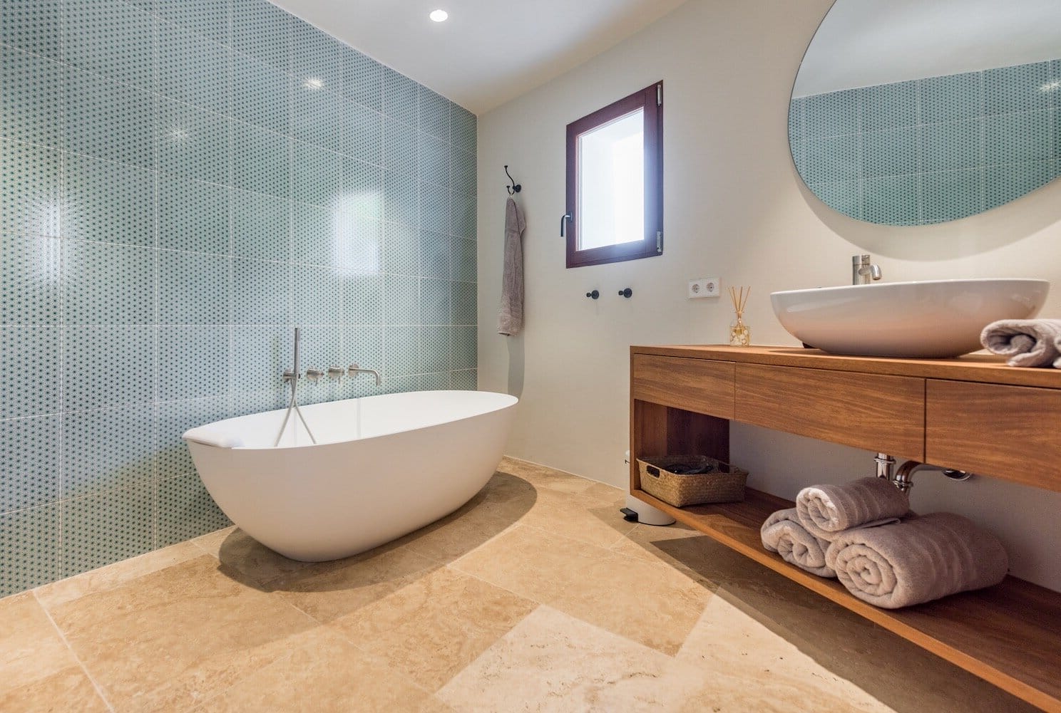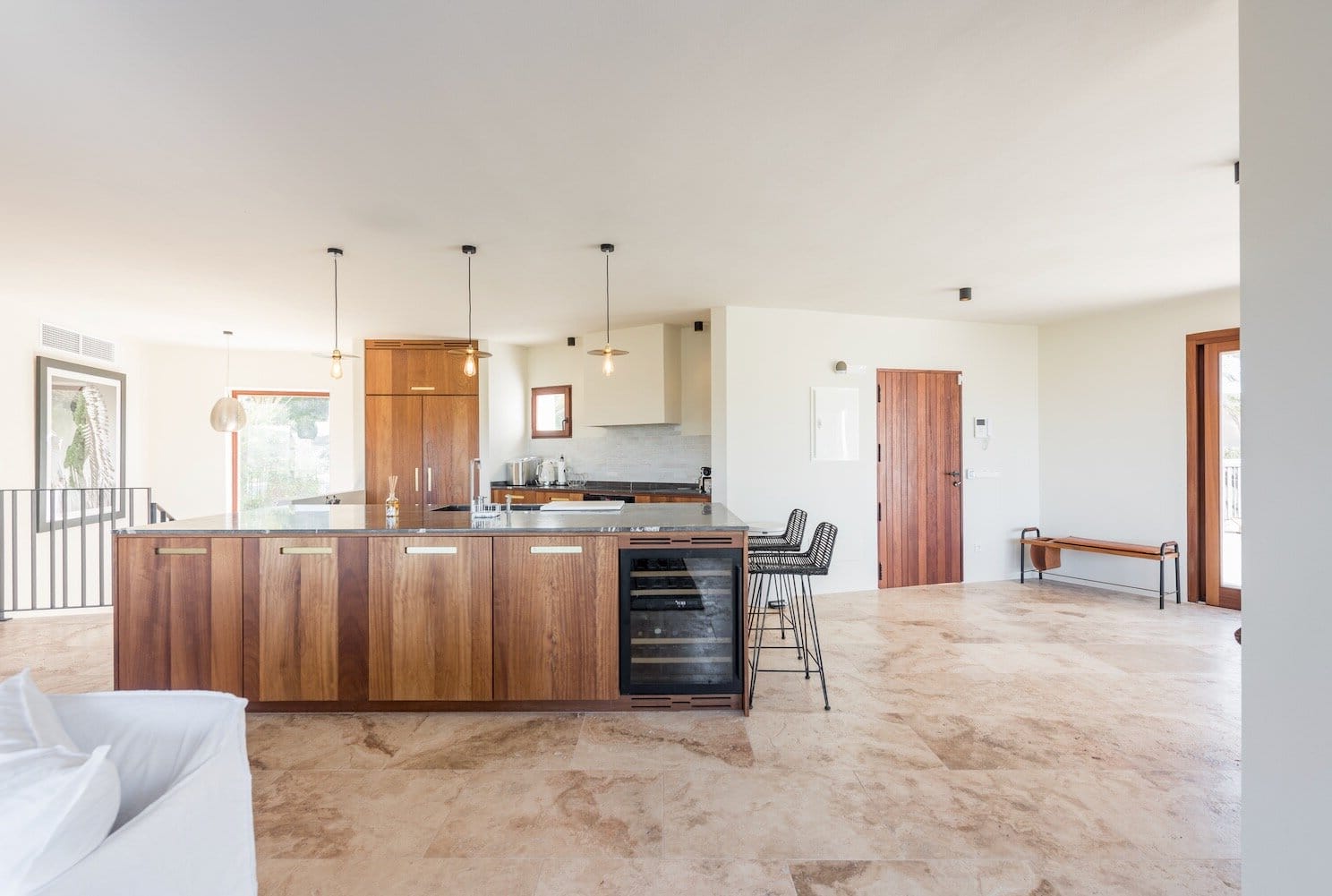 The villa is set over two levels, affording a true sense of space and privacy. The top level has a large living area with a state-of-the-art open kitchen, a large pool area and a guest toilet. From every point on this level you can enjoy the beautiful sea view and the green hills in the background. The villa has just been totally modernised with the highest quality materials – and with exquisite taste.