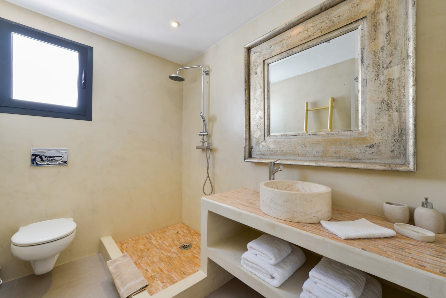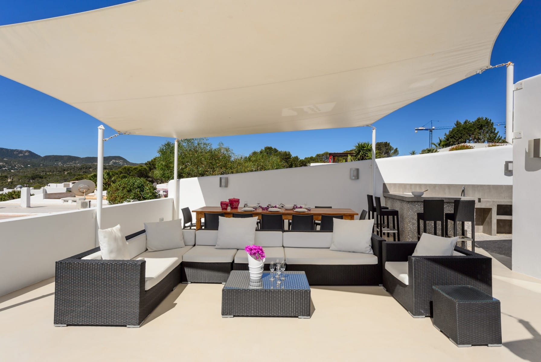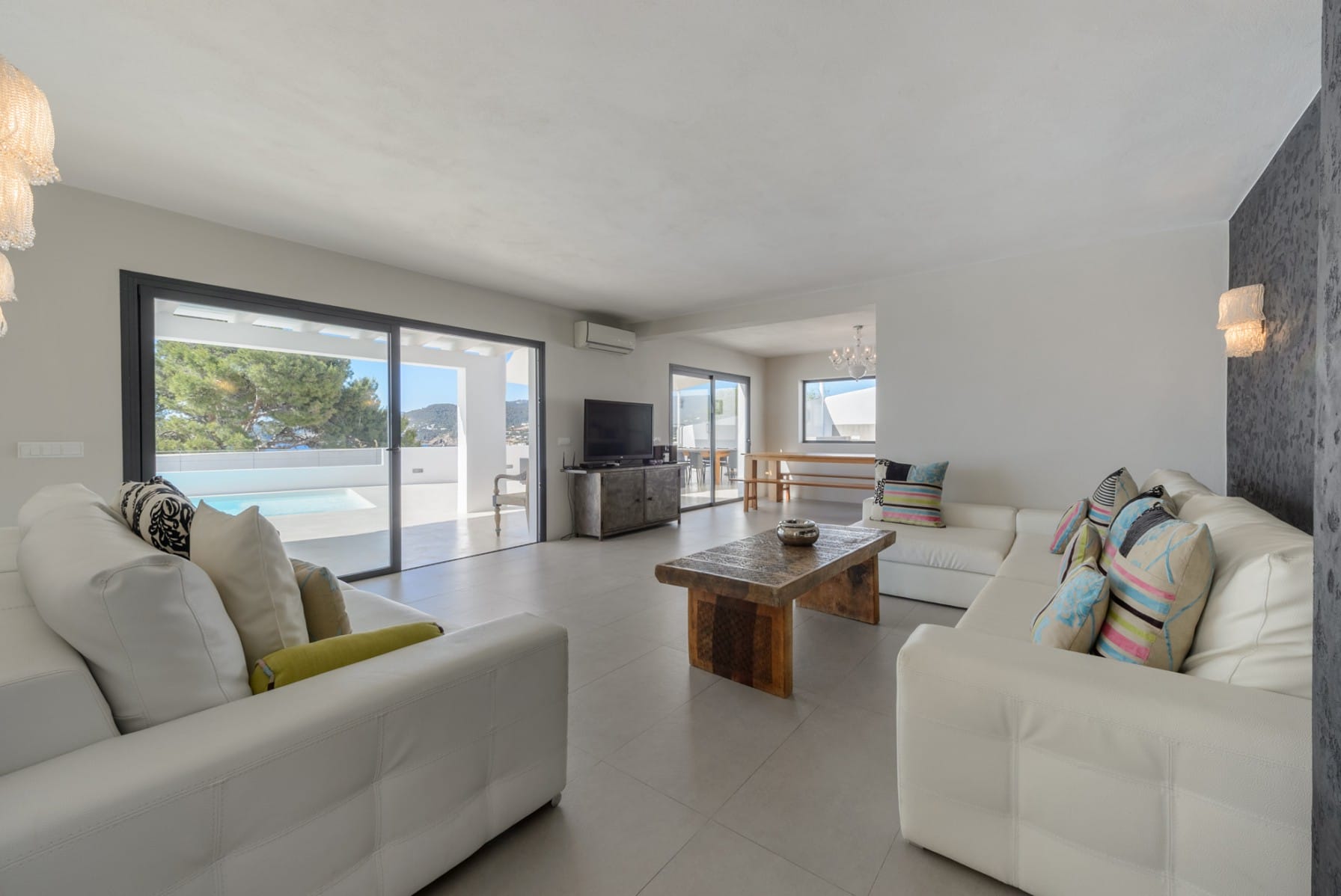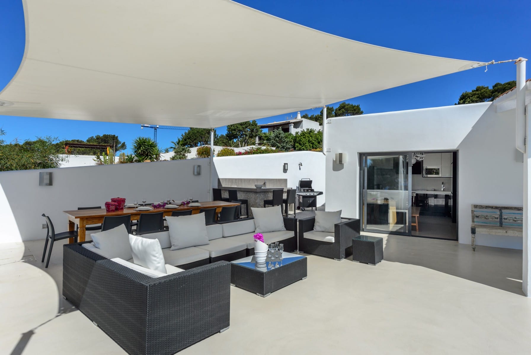 Other beaches are within a 5 and 15 minute drive: Cala Conta and Bassa. Ibiza town is 20 kilometers away. San Jose and San Antonio are approximately 8 kilometers away.