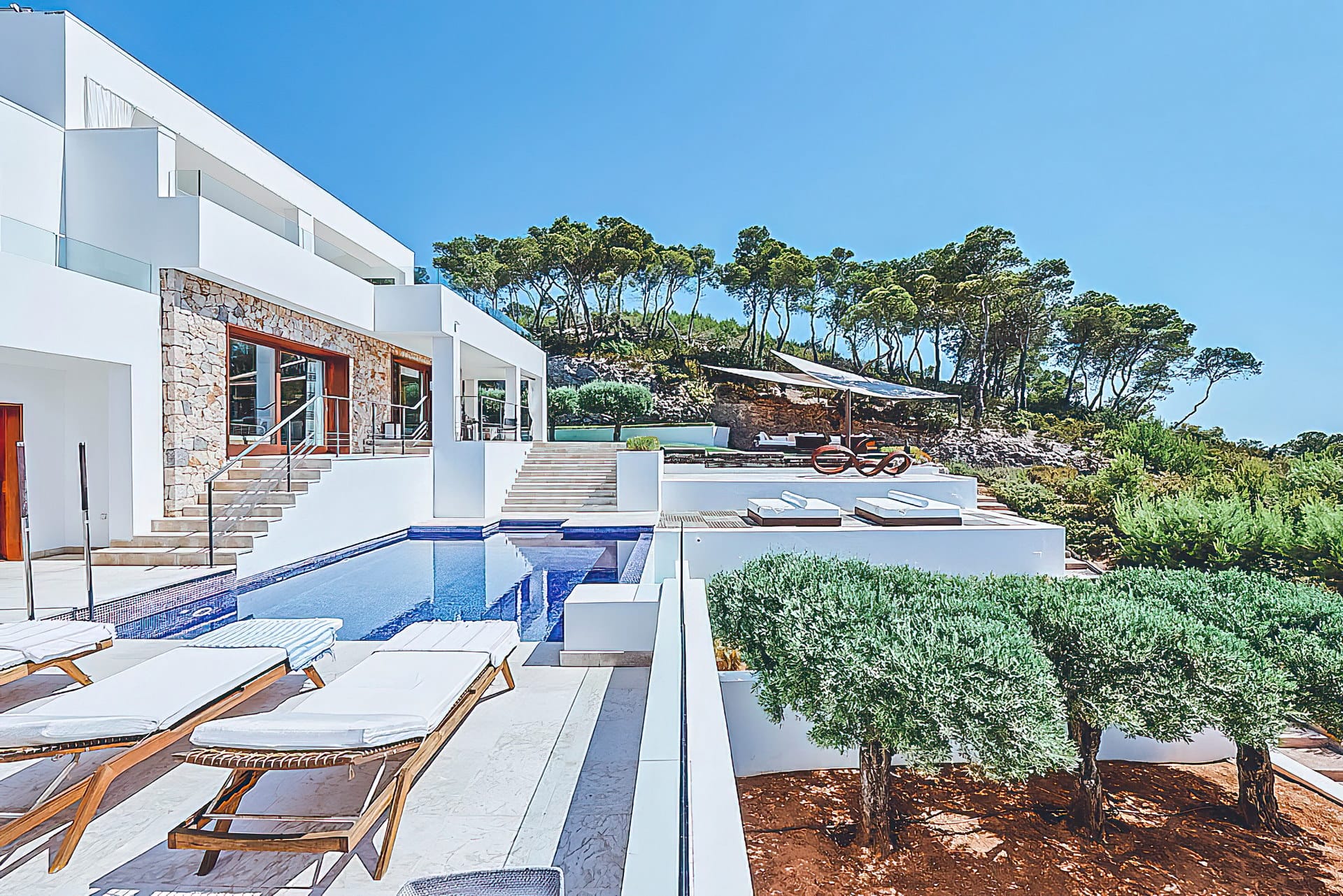 Villa Giugi is a magnificent and elegant 5-bedroom villa, perched high above the sea with breathtaking views overlooking the bay of Sol den Serra, one of the most recognized beauty sites on the island, with blue waters that sparkle and shine. This villa is in close proximity to the local facilities of the lively town of Cala Llonga and is only a short distance from the charming and magnificent beach club ‘Amante’.