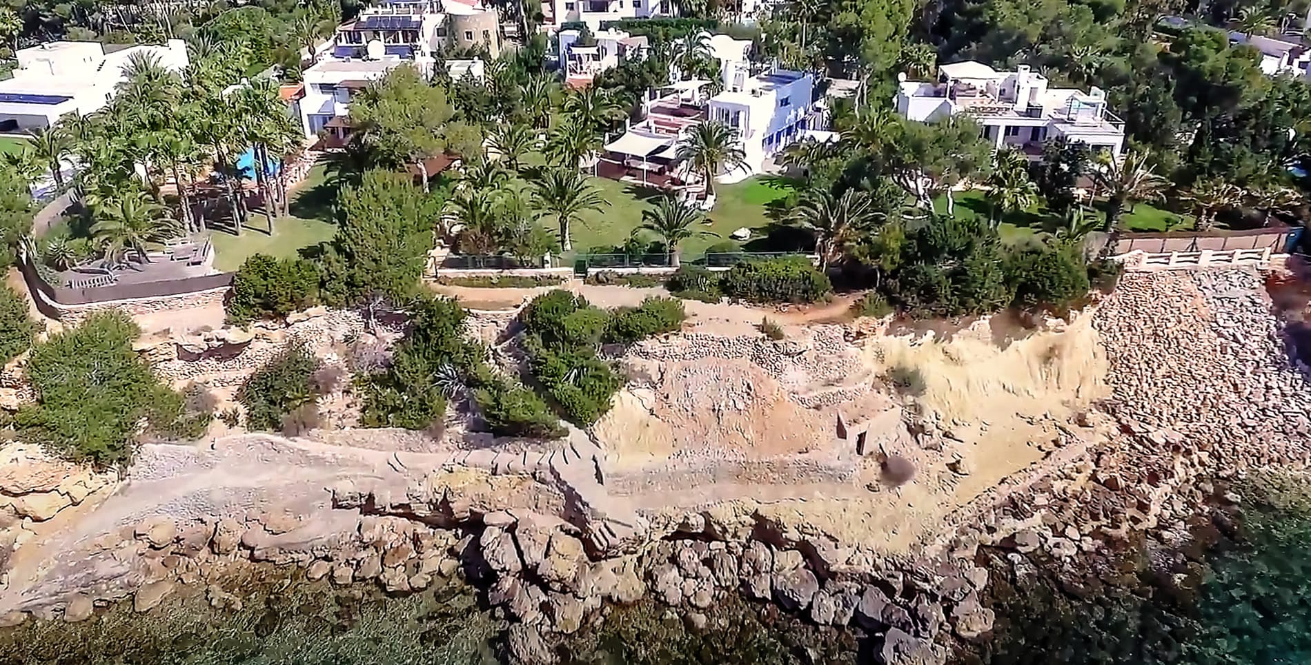 Completely private and on the seafront on the outskirts of Santa Eulalia, only a 15-minute walk from the town center and with direct access to the sea front.
