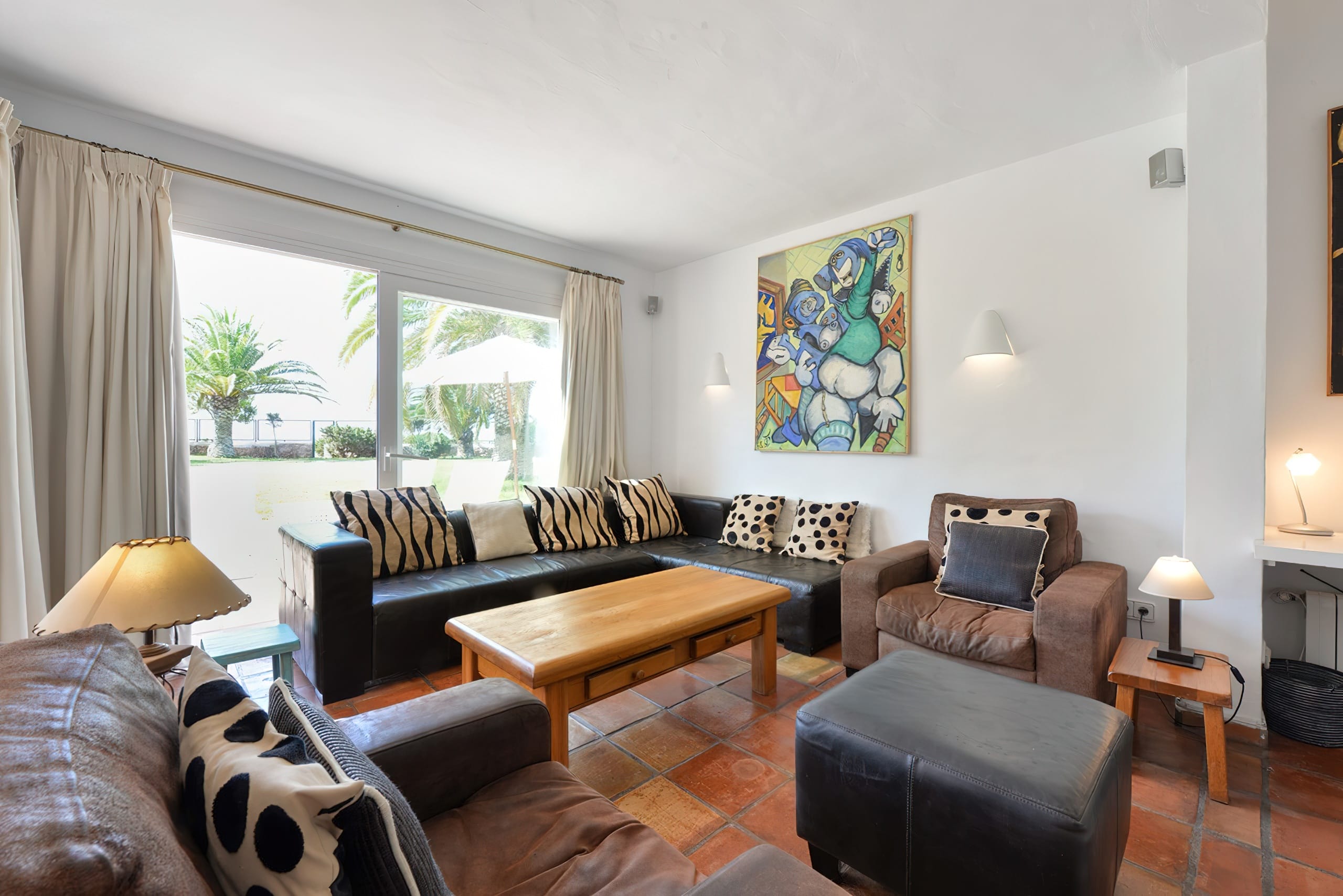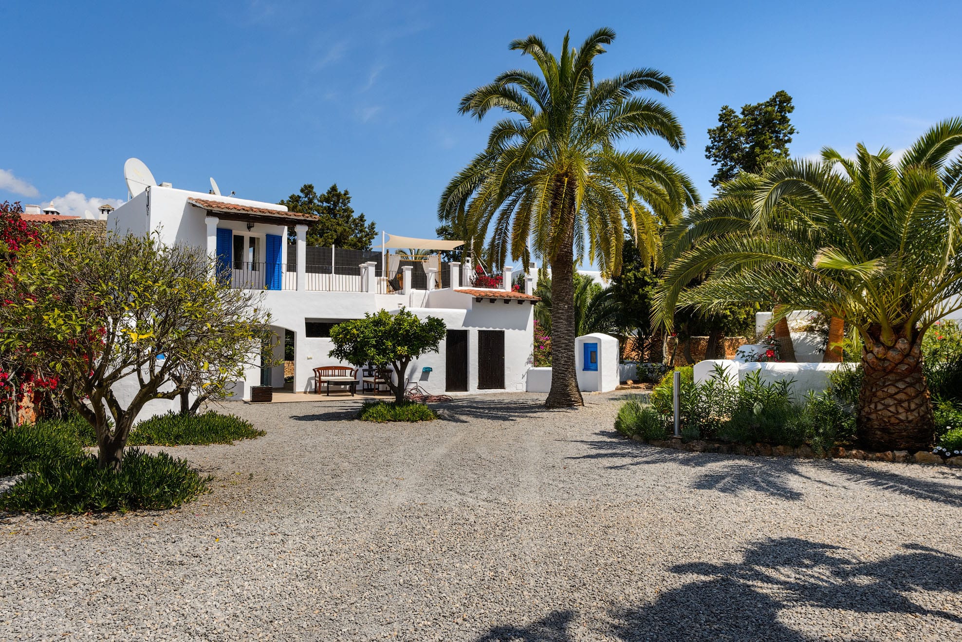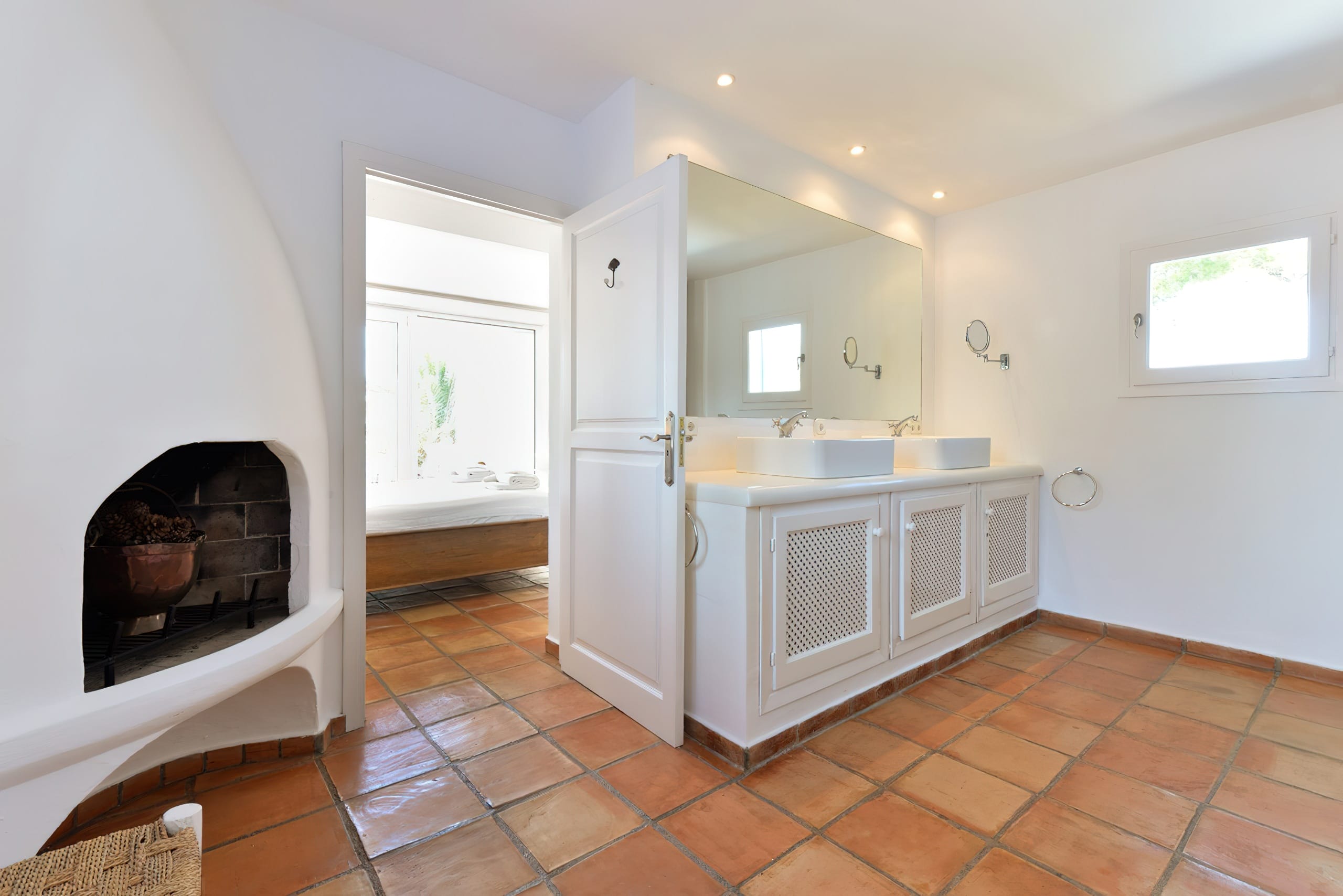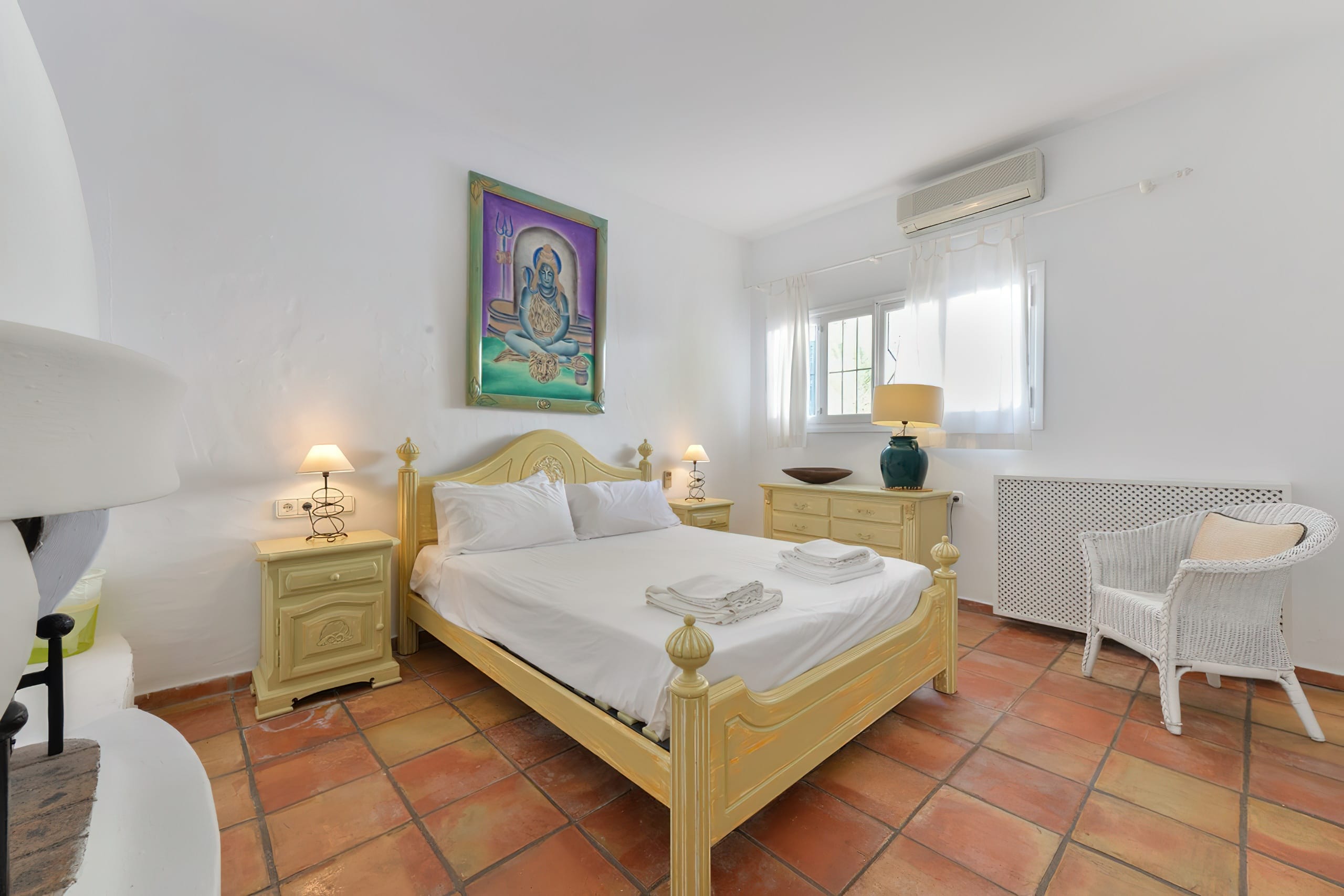 The traditional Ibizencan architecture is complemented by Moroccan characteristics, creating a wonderfully attractive house. All bedrooms and living spaces are equipped with central air conditioning. There are three televisions and complimentary wireless internet access. This magnificent property sleeps up to 16 people.