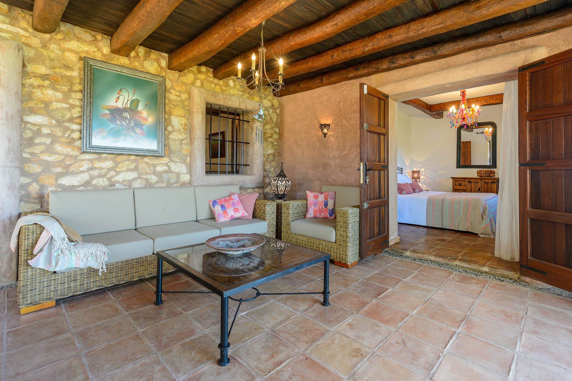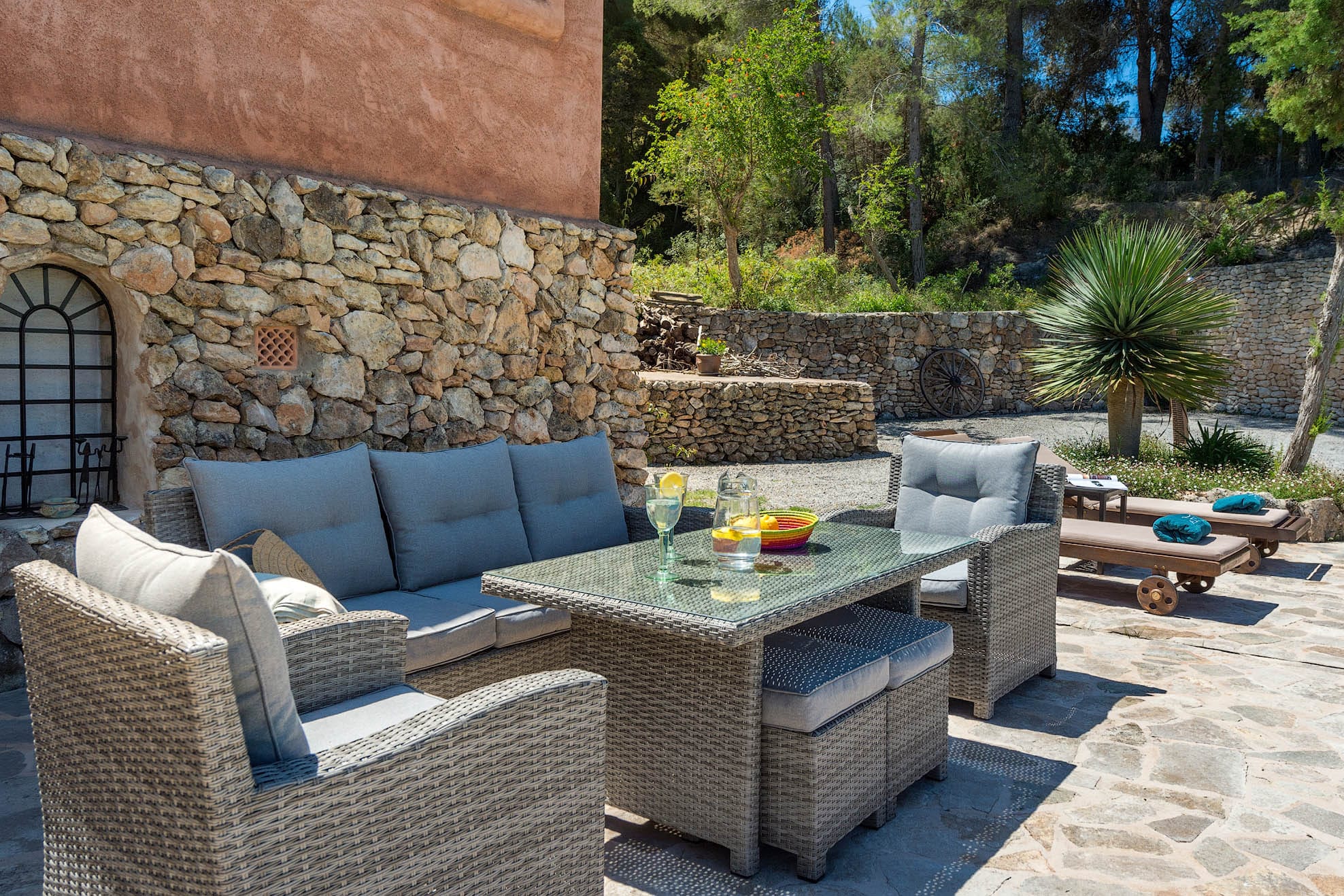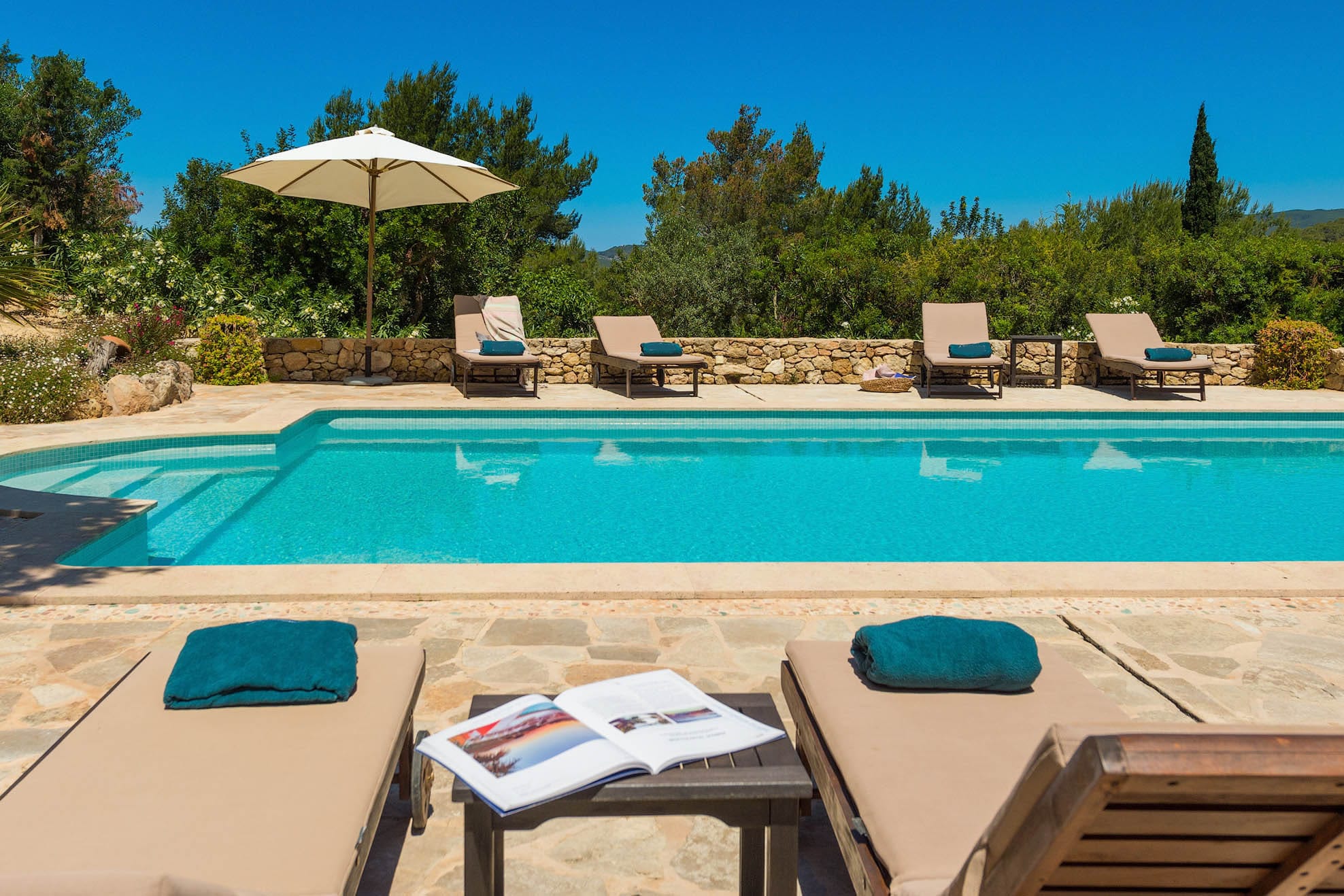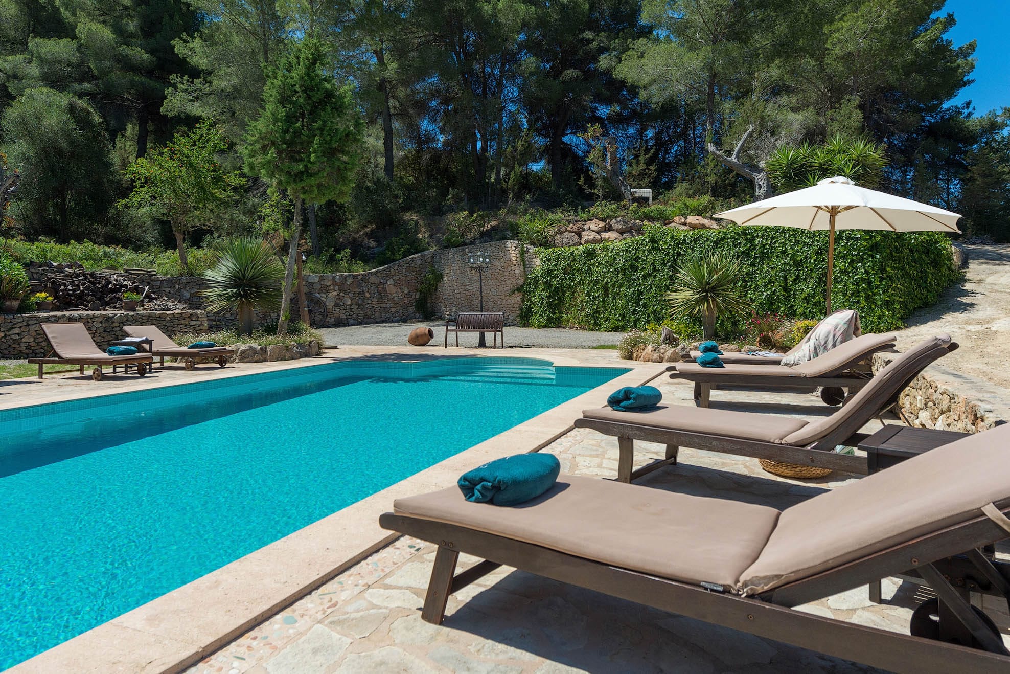 Located on a hill, with plenty of sunlight and surrounded by trees, this pretty traditional Ibiza style house with a lovely garden and pool area.