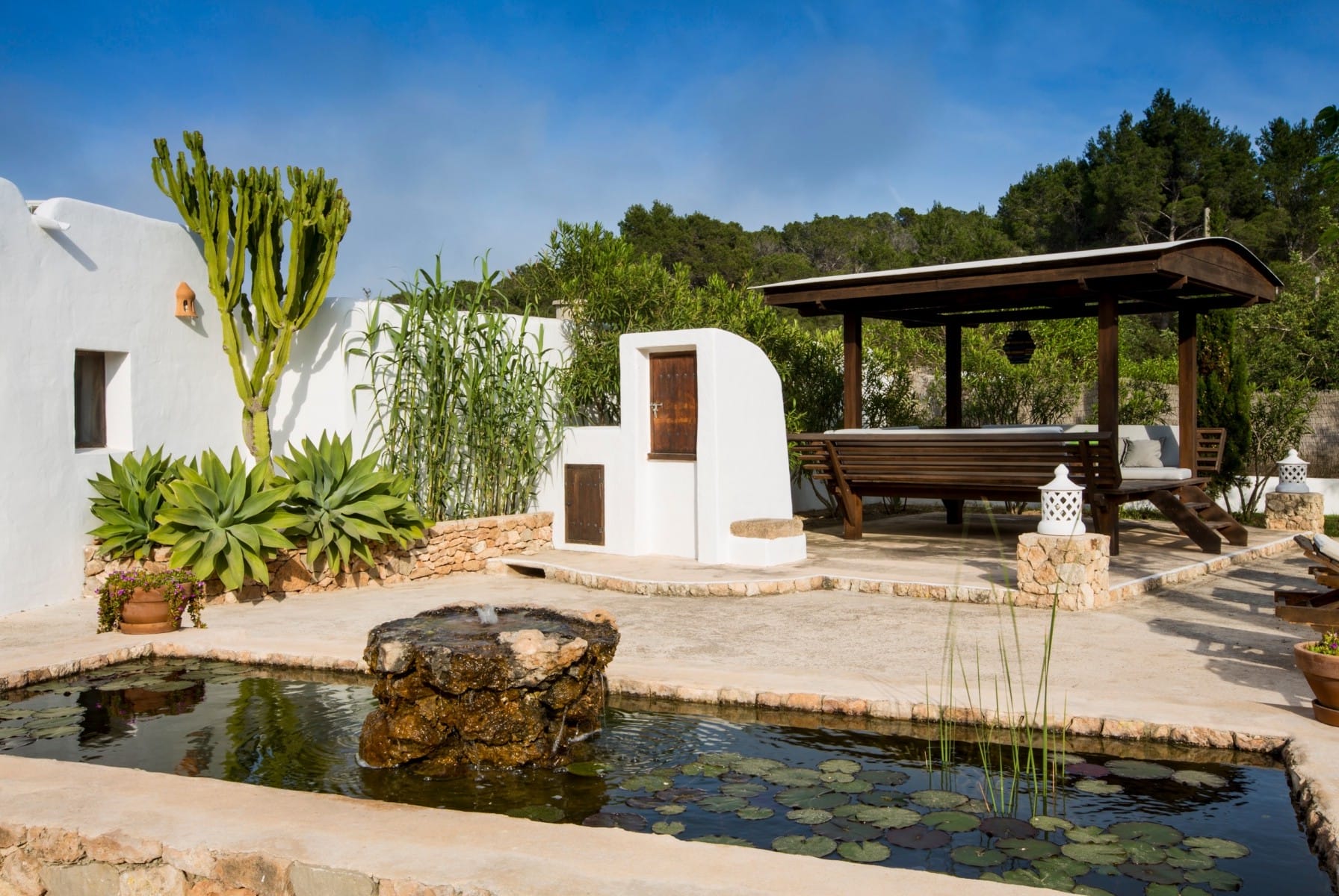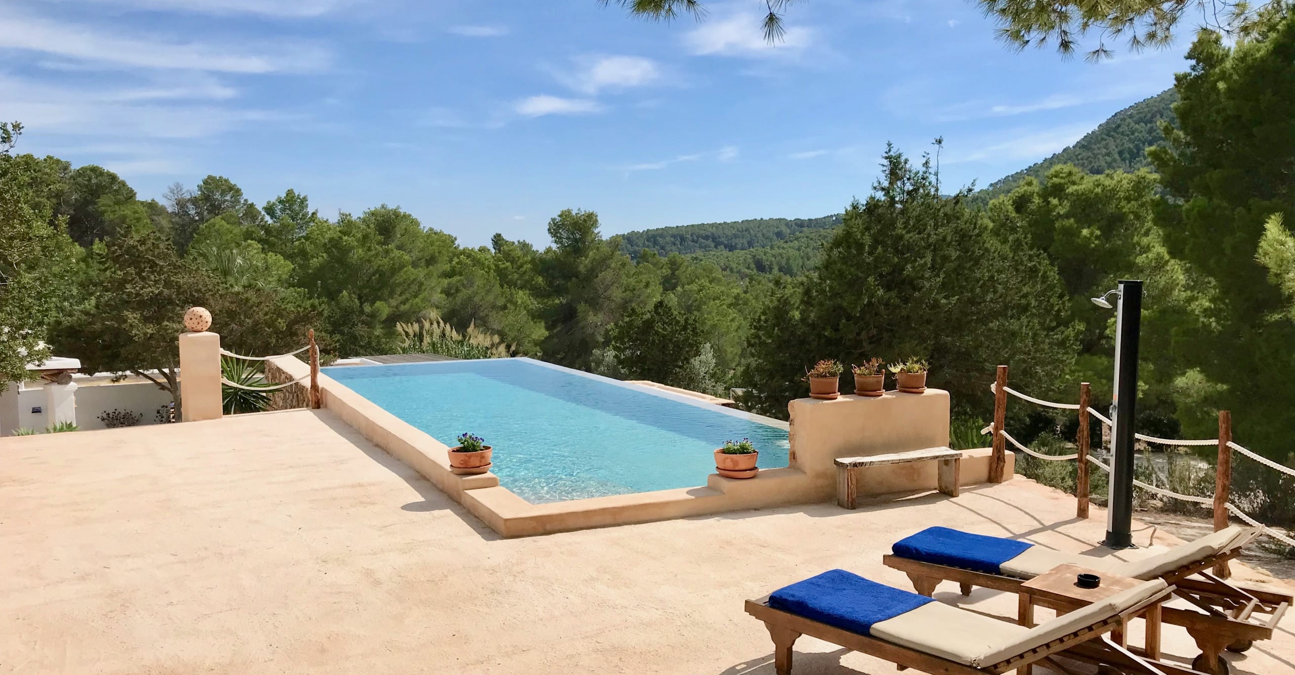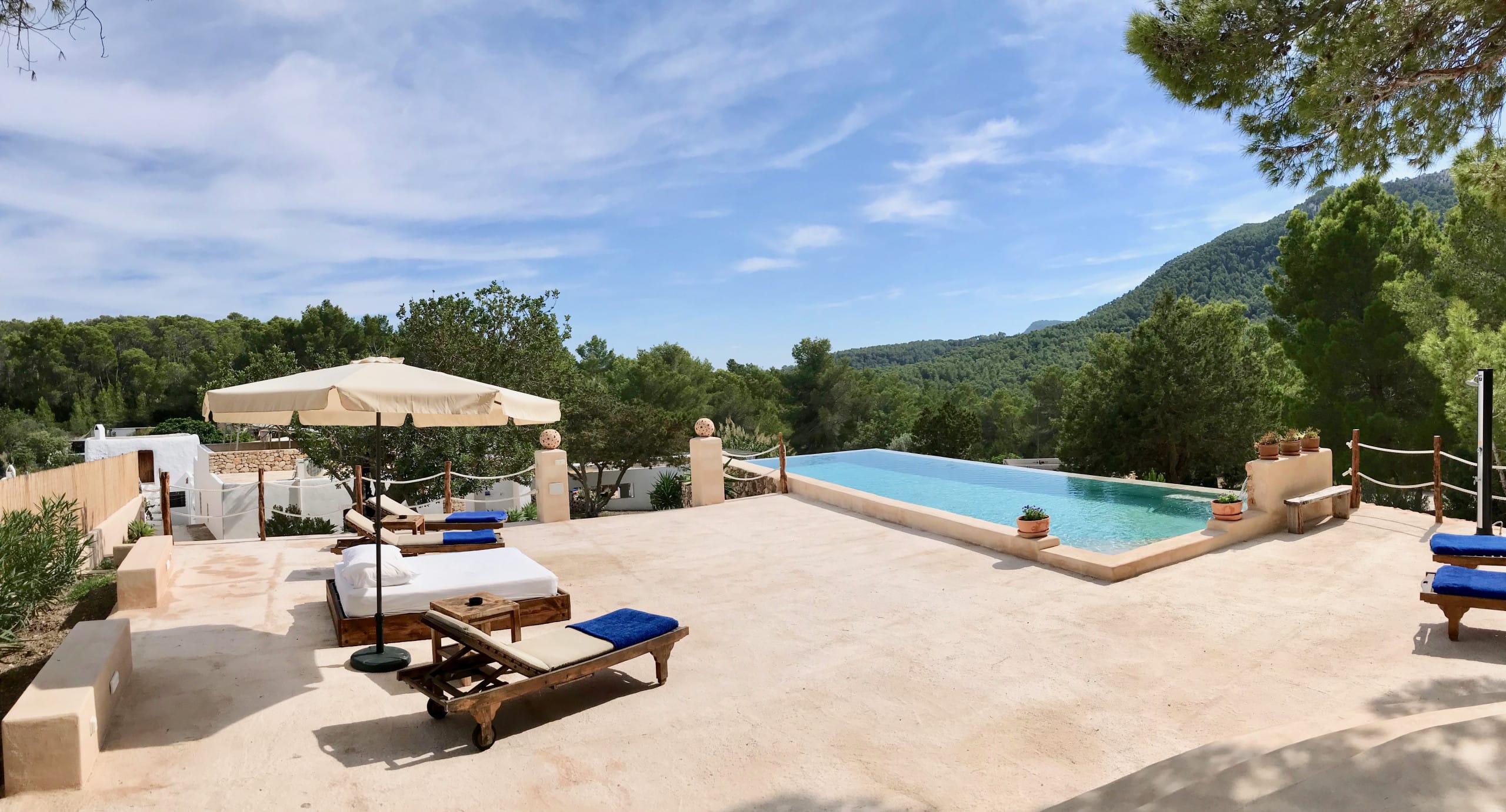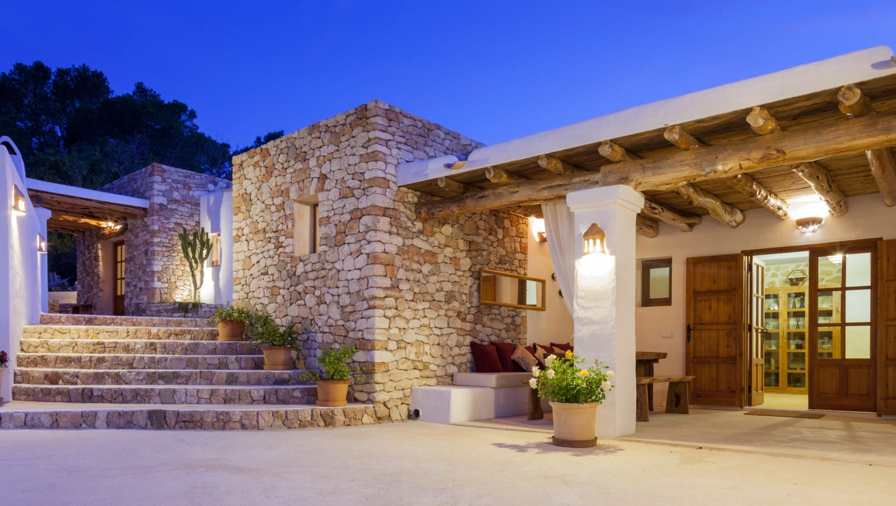 It has been fully renovated in a traditional, rustic-style and it is surrounded by a wonderful garden, it also boasts a beautiful private swimming pool and porches for outdoor dining and chill out terraces. The position of the house and the close proximity to the village and beaches make this property the ideal place for an unforgettable Ibiza villa holiday. The lovely country-style kitchen has everything a family might need. There are exposed beams throughout the villa and the property is decorated in rustic style, without sacrificing the comfort of its guests.
