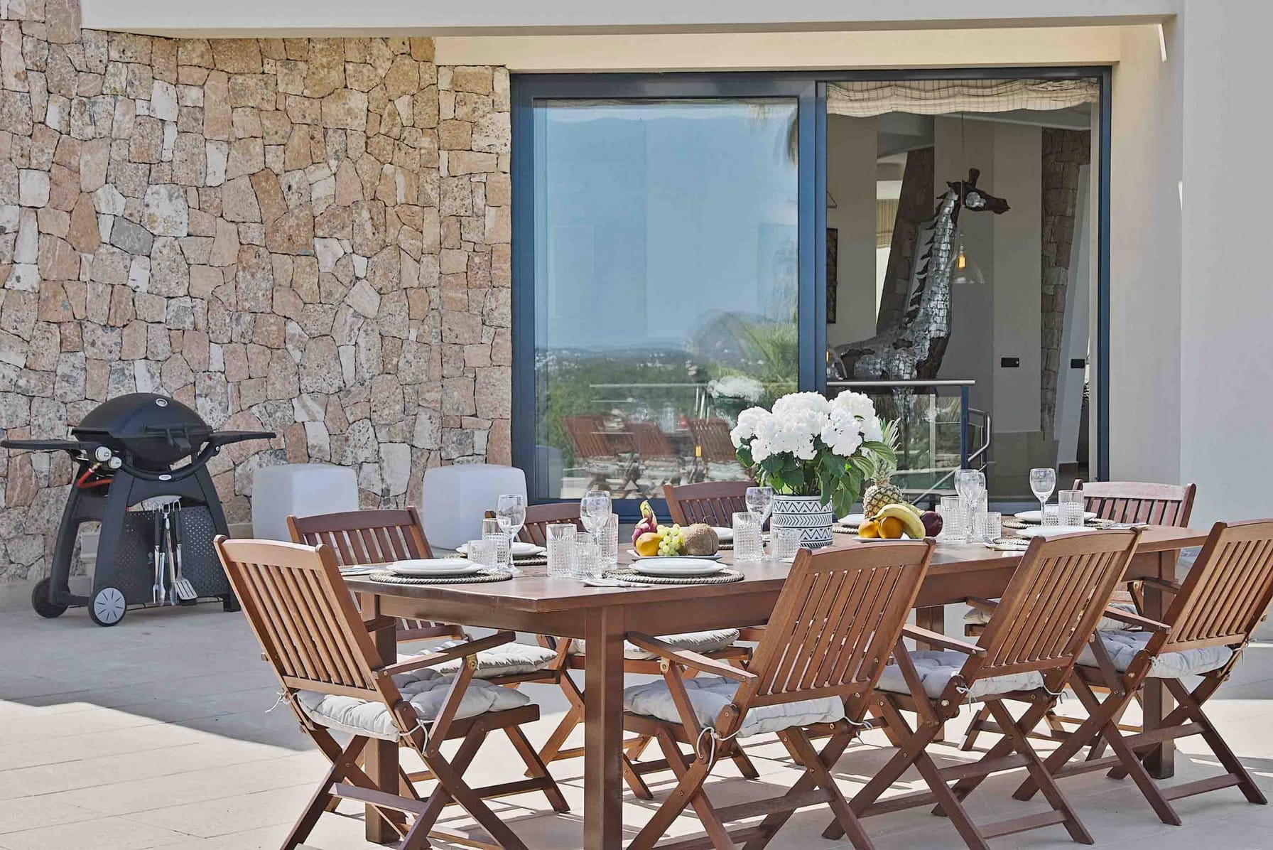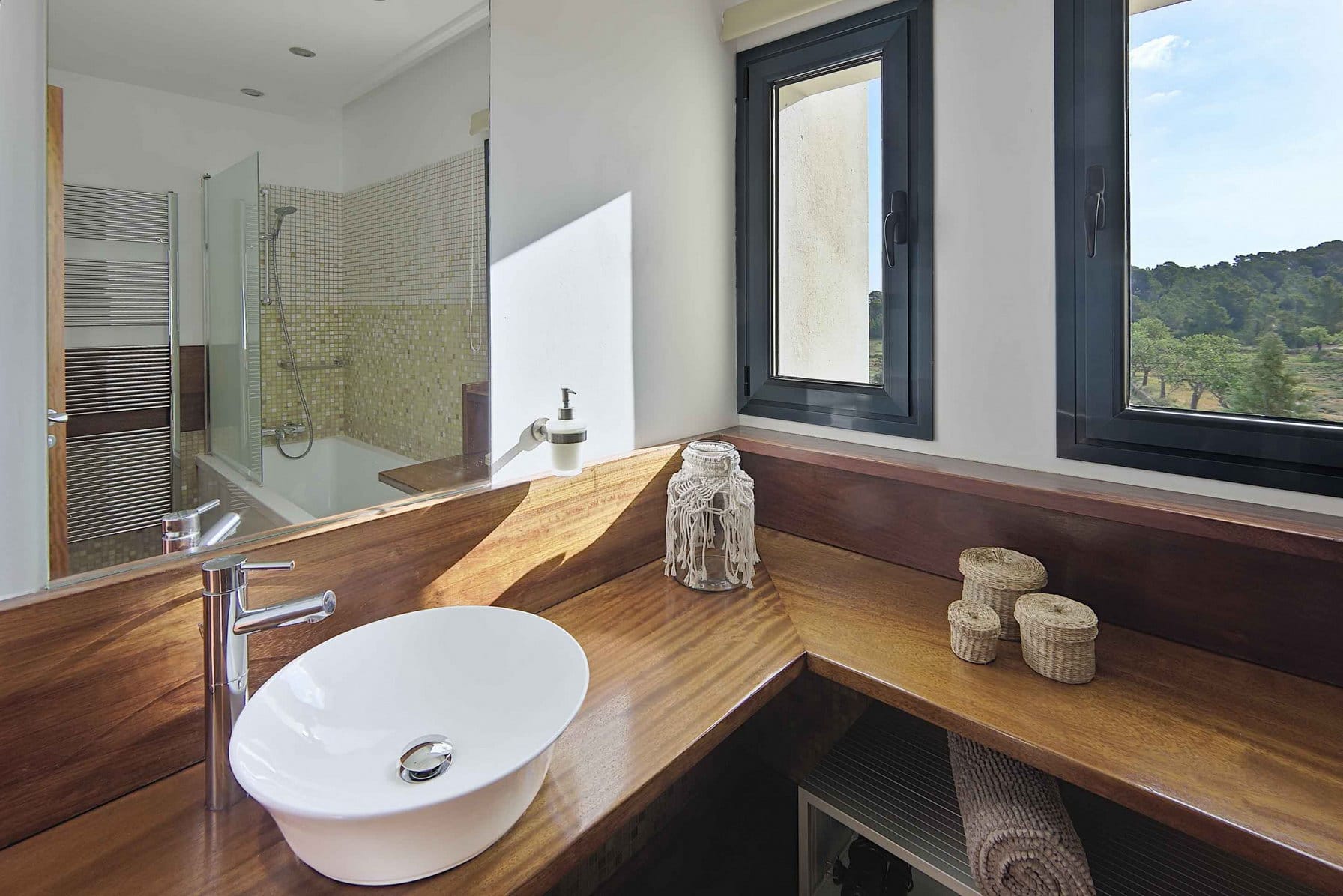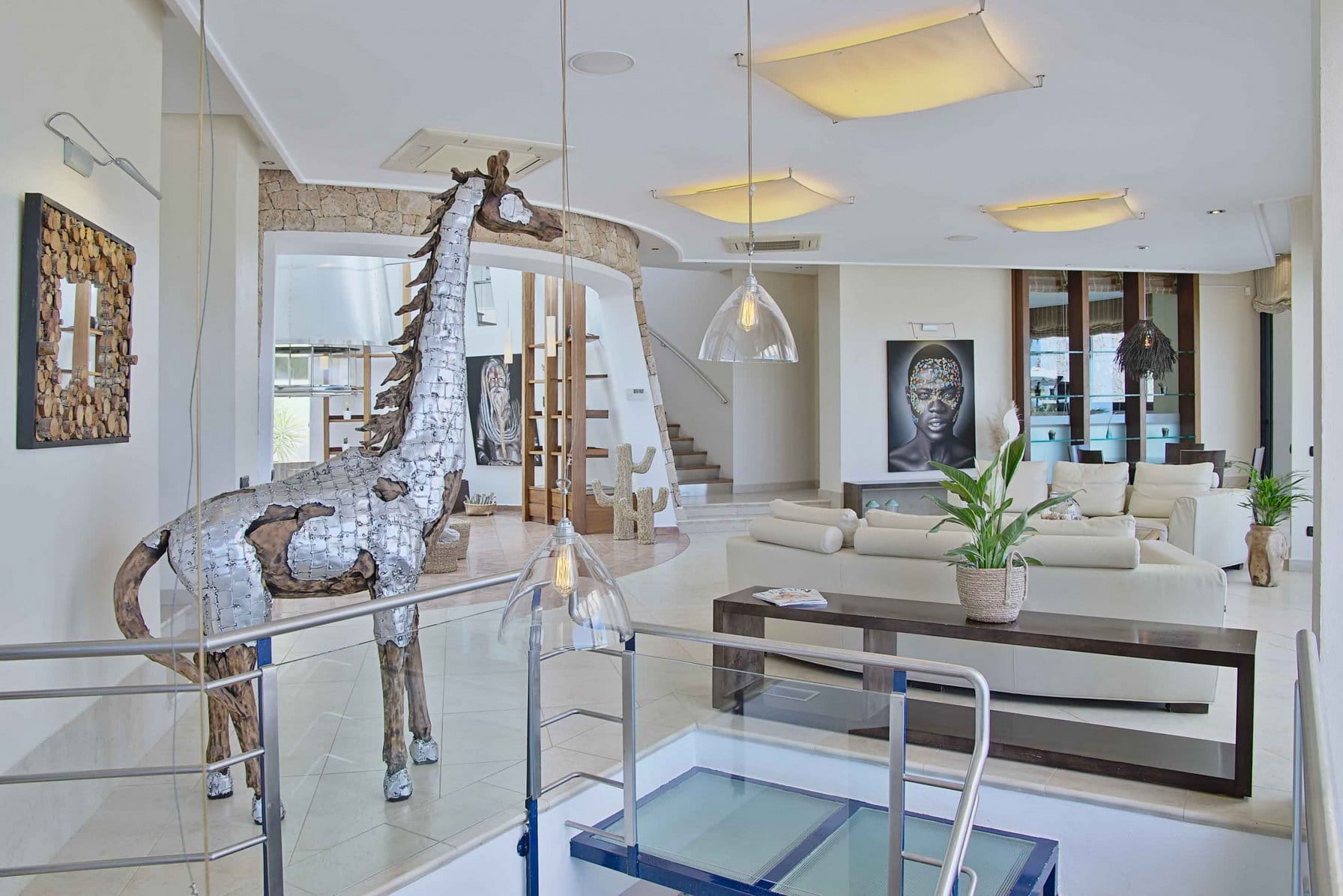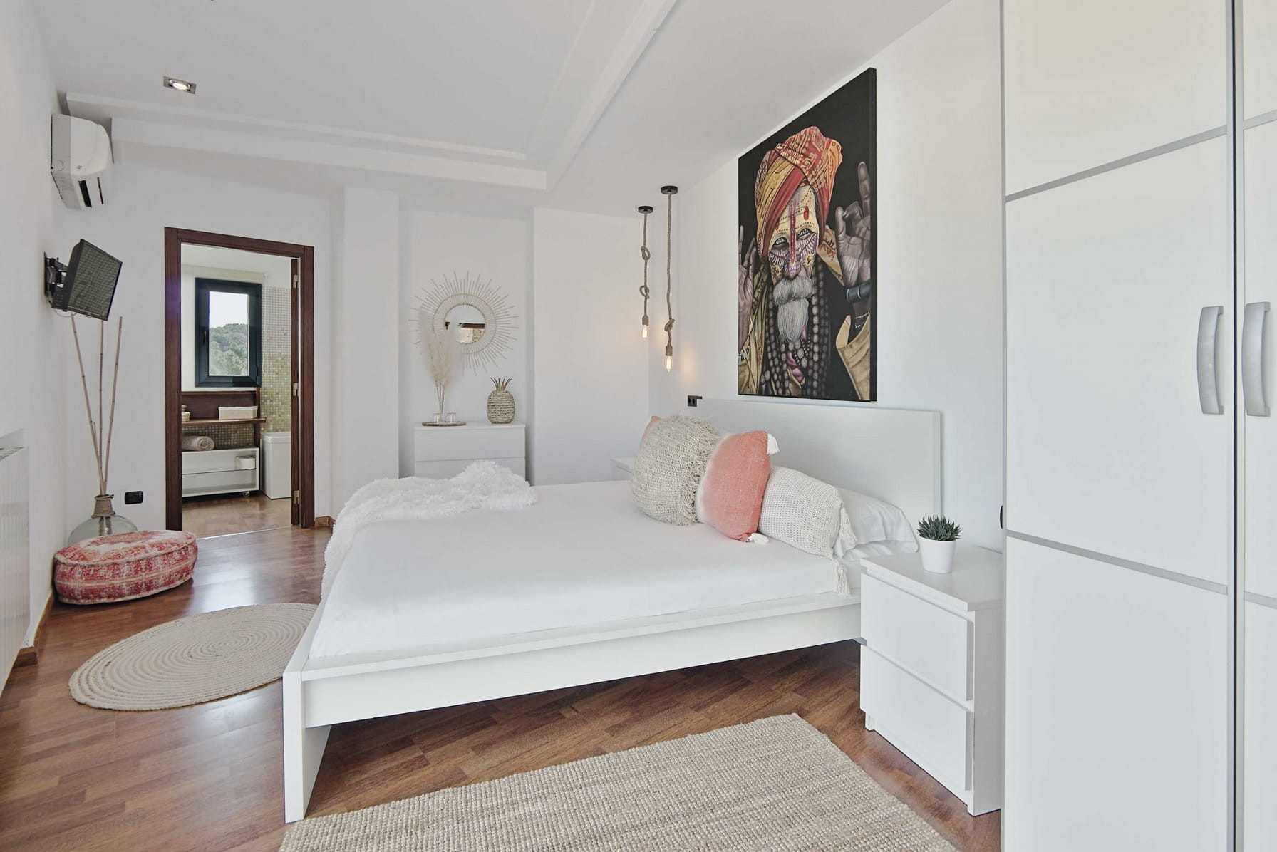 Inside, it offers 4 large bedrooms and ensuite bathrooms. The large windows and glass doors make this luxury Ibiza villa very bright.