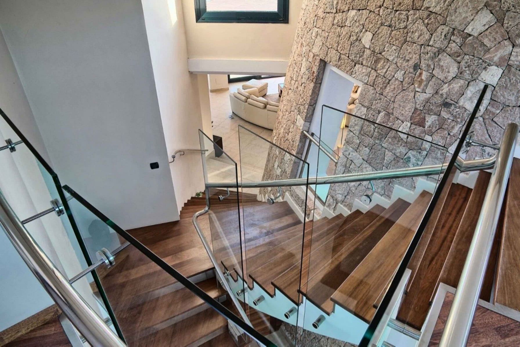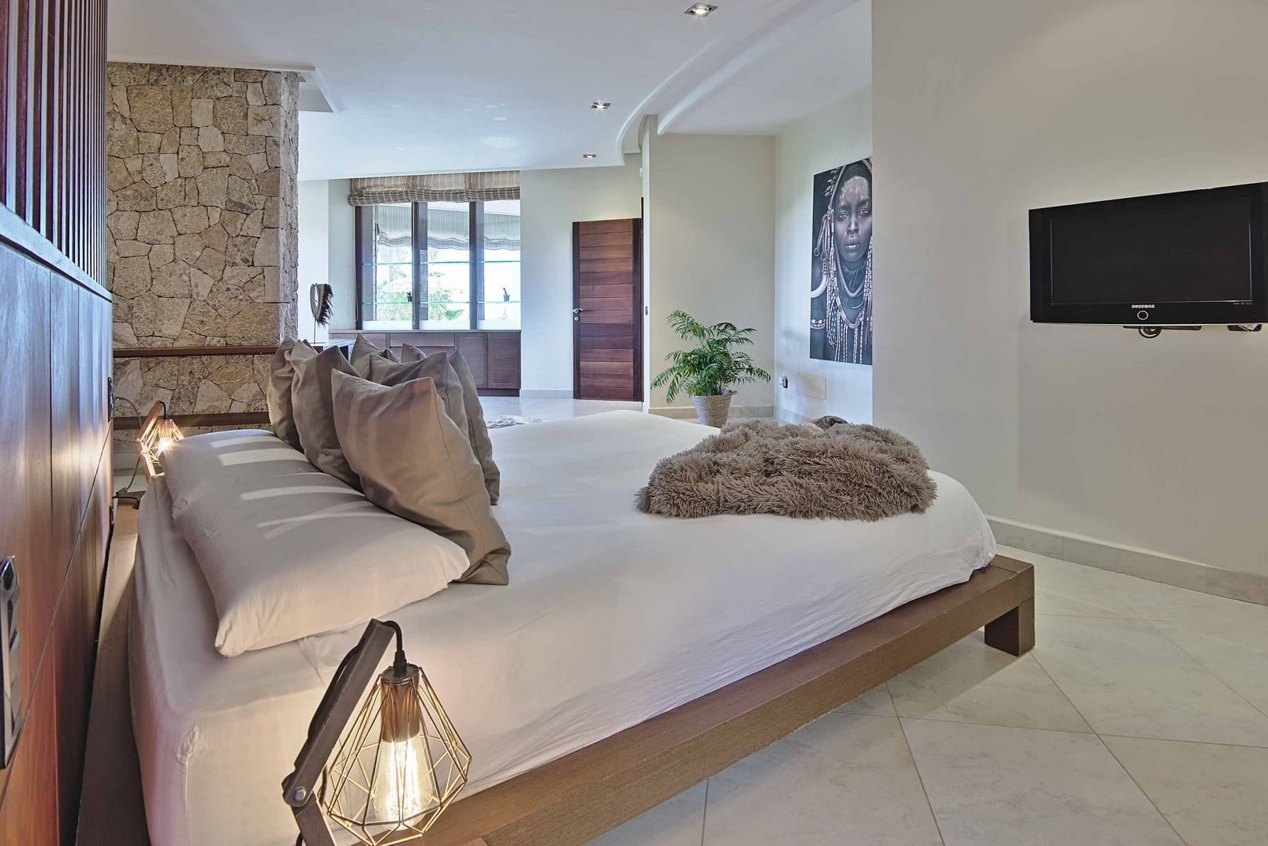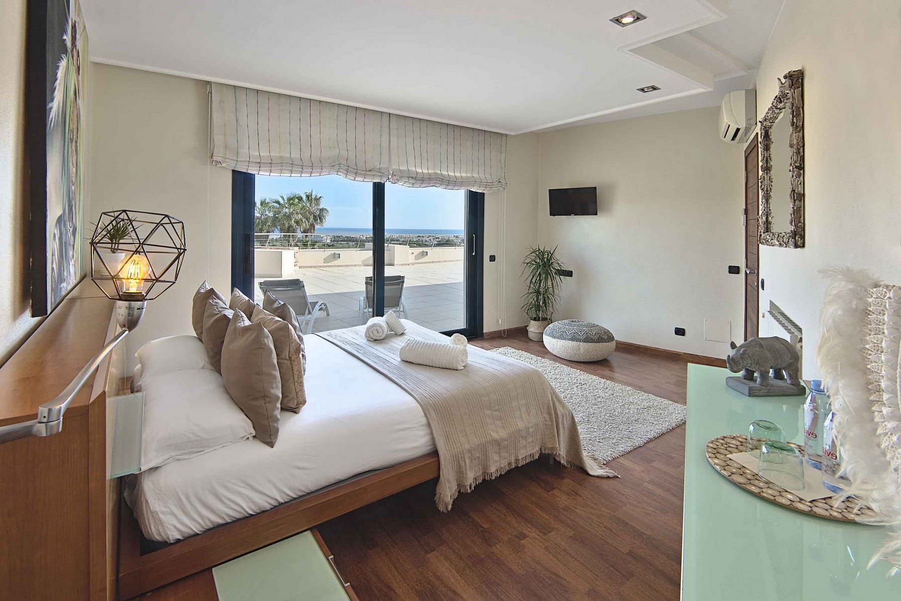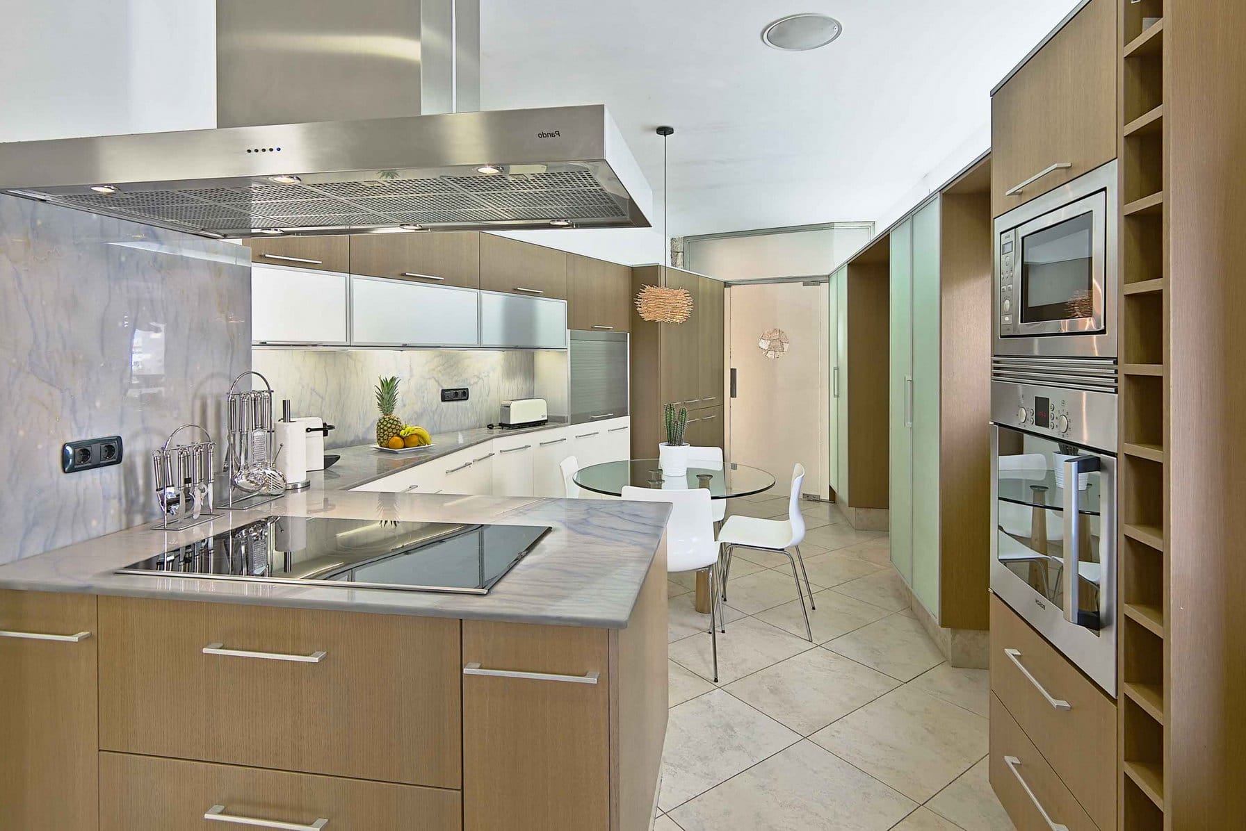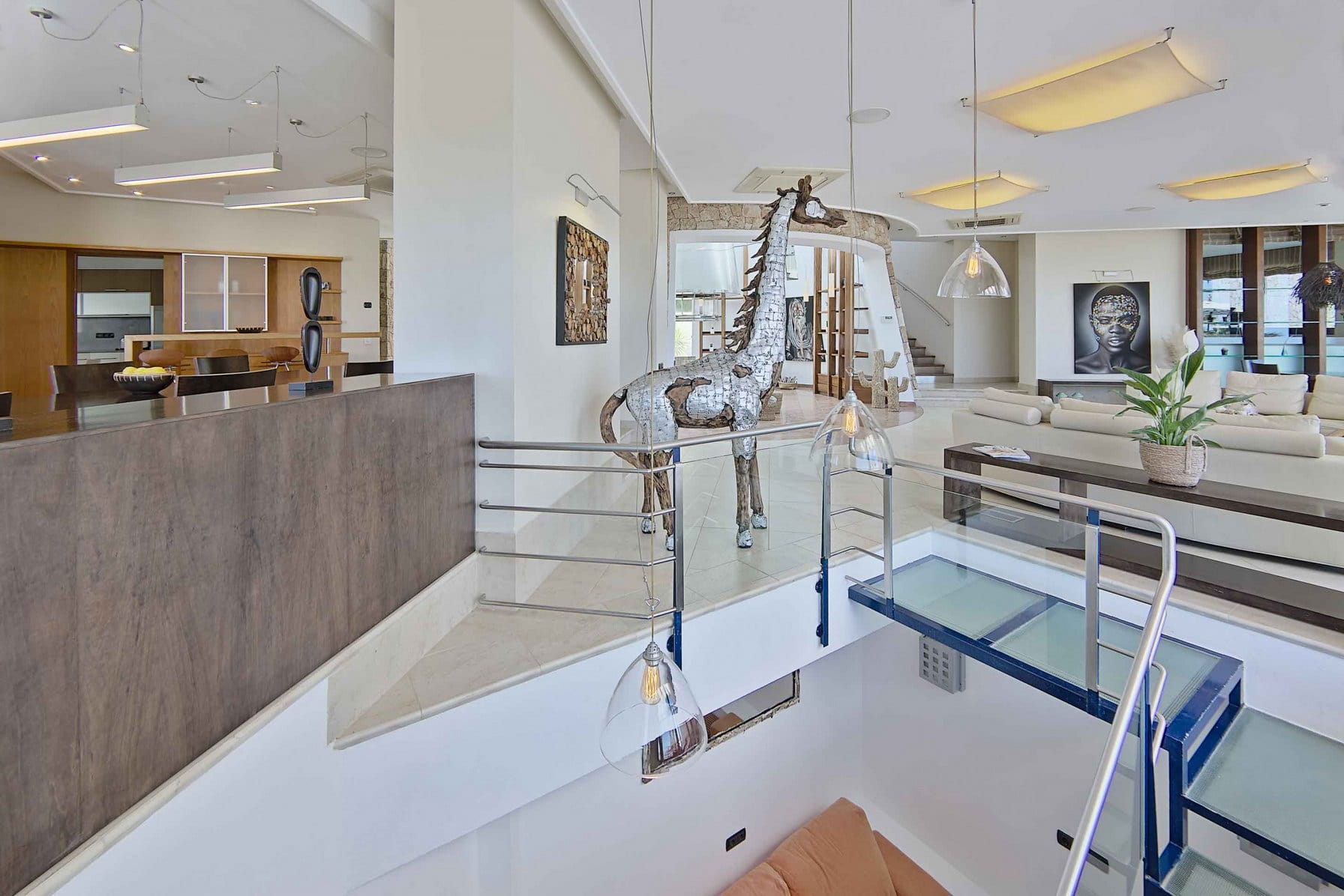 Inside, it offers 4 large bedrooms and ensuite bathrooms. The large windows and glass doors make this luxury Ibiza villa very bright.