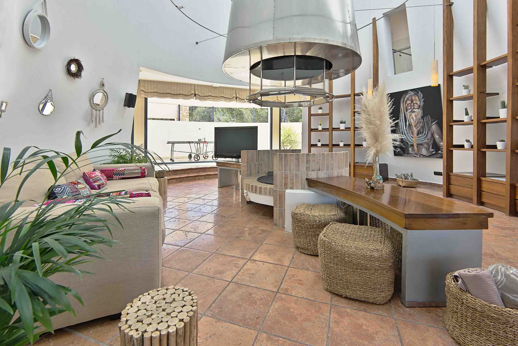Impressive villa with breath taking views to the ocean and the mountains. It has been decorated with much style, where the Living room stands out for its central chimney that invites to stay and enjoy a good glass of wine, book or music. It has beautiful outdoor places where you can enjoy the swimmingpool and the gorgeous landscape with a magnificent sunset.