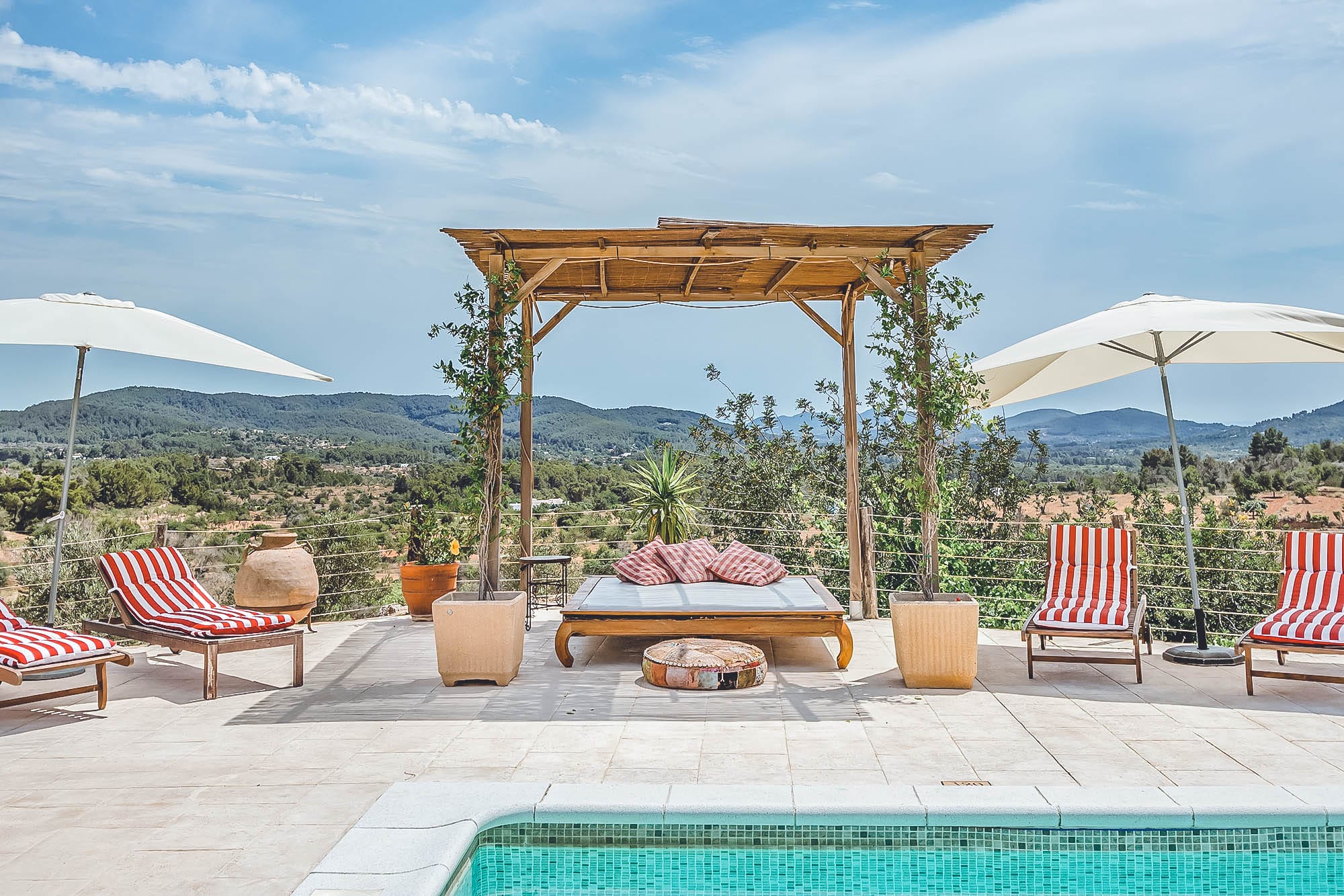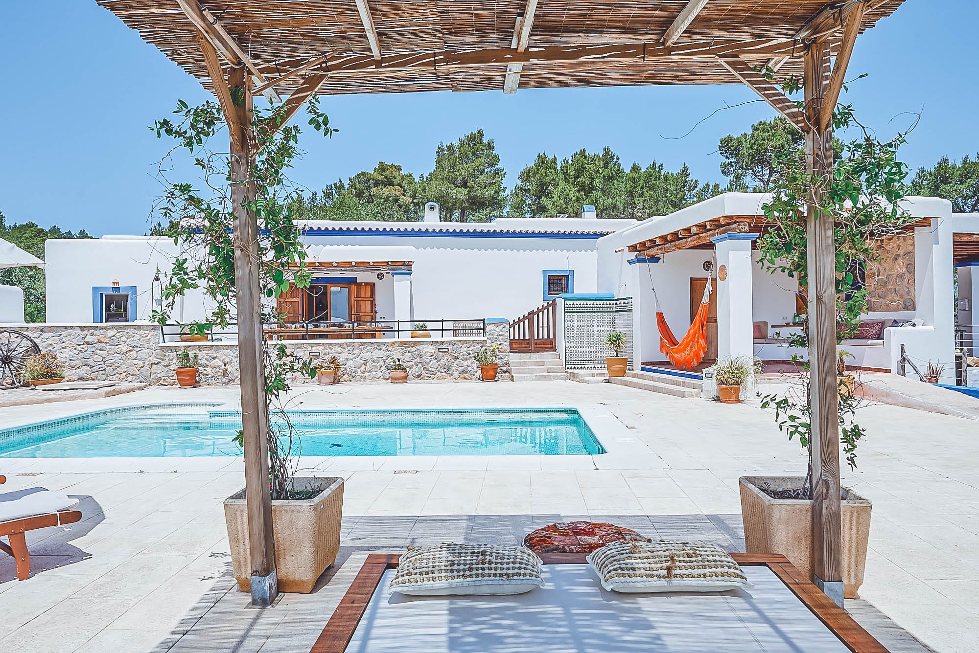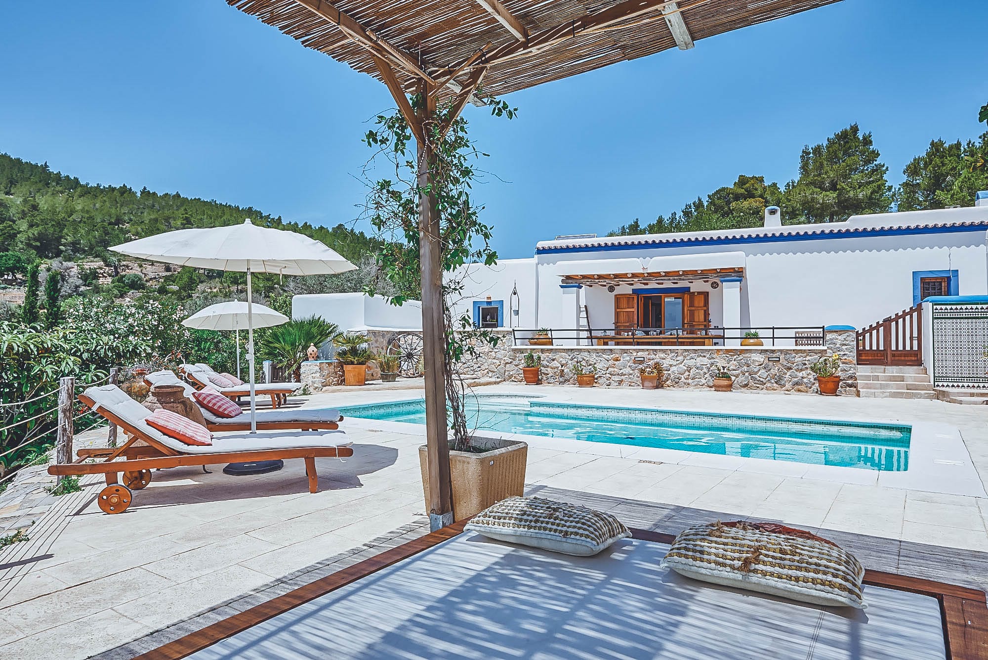 Outside, the exteriors offer a wealth of areas to vacate in style. The salt water pool, two al fresco dining areas with an outdoor kitchen and BBQ, the porch and the chill out areas are all mini havens to relax while the kids play in their own personal tree house and garden with swings. An organic vegetable garden is free for guests to immerse themselves into the Mediterranean lifestyle and pick their own fresh vegetables and herbs when in season, making this a truly unique and authentic property.